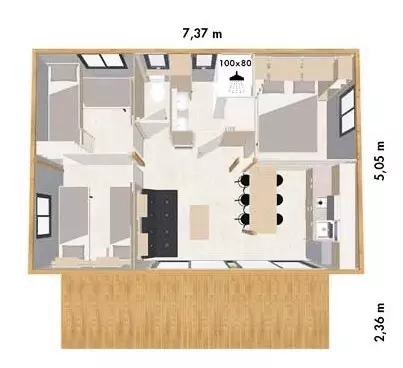 Mobil Home Premium 3 pièces 4 personnes Climatisé avec :