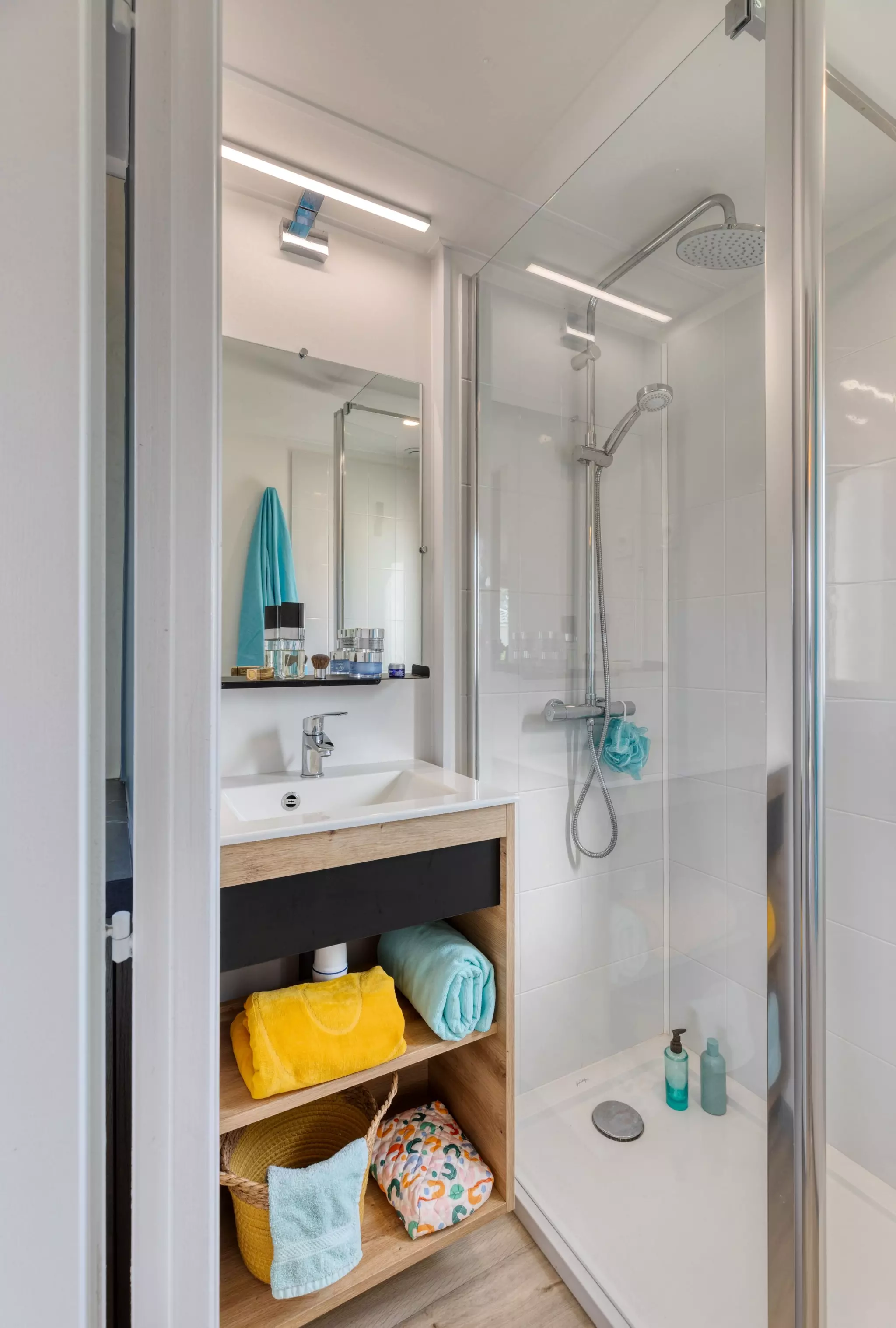 Mobil home CONFORT récent 2 chambres (2023-2024), surface 30m², comprenant :