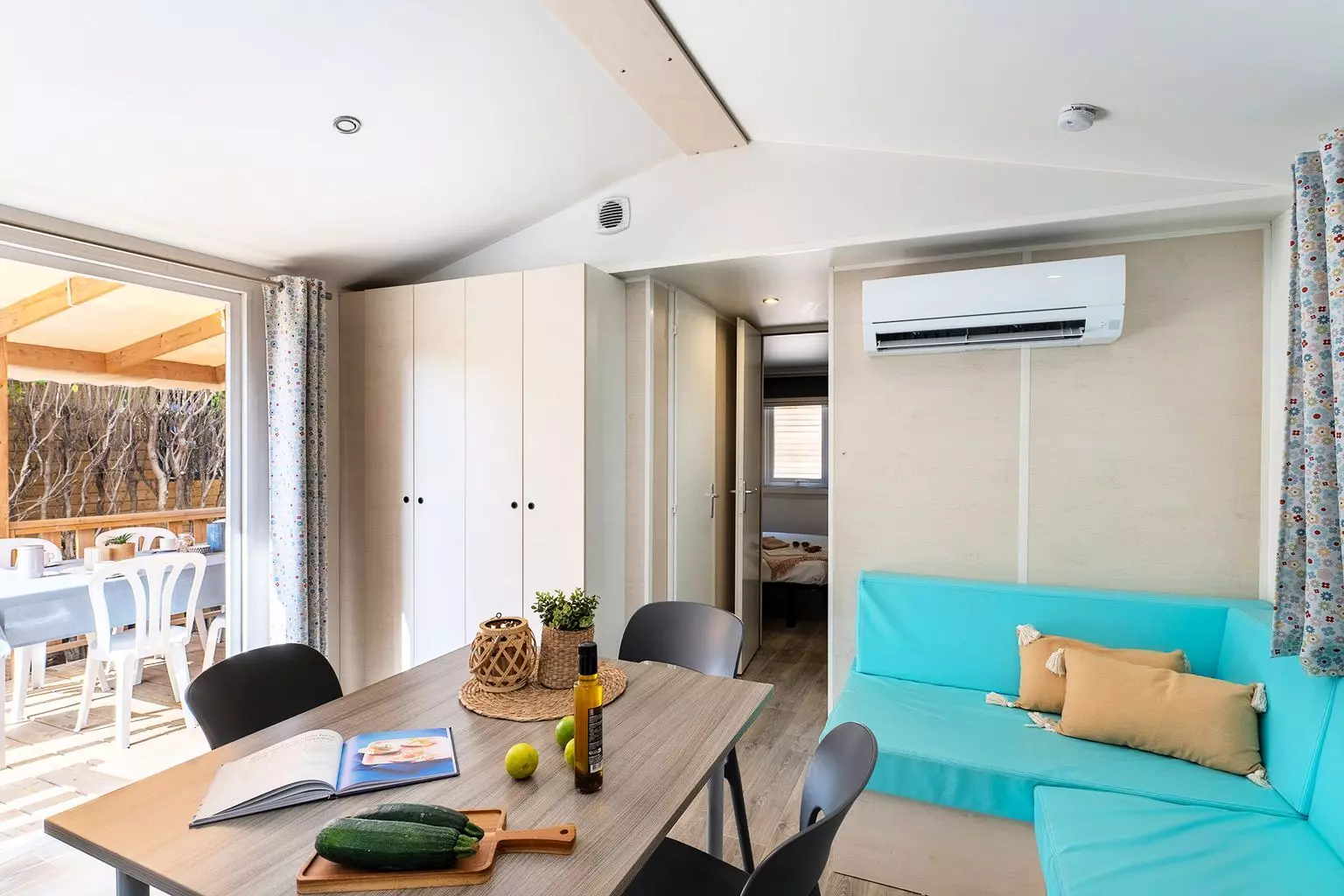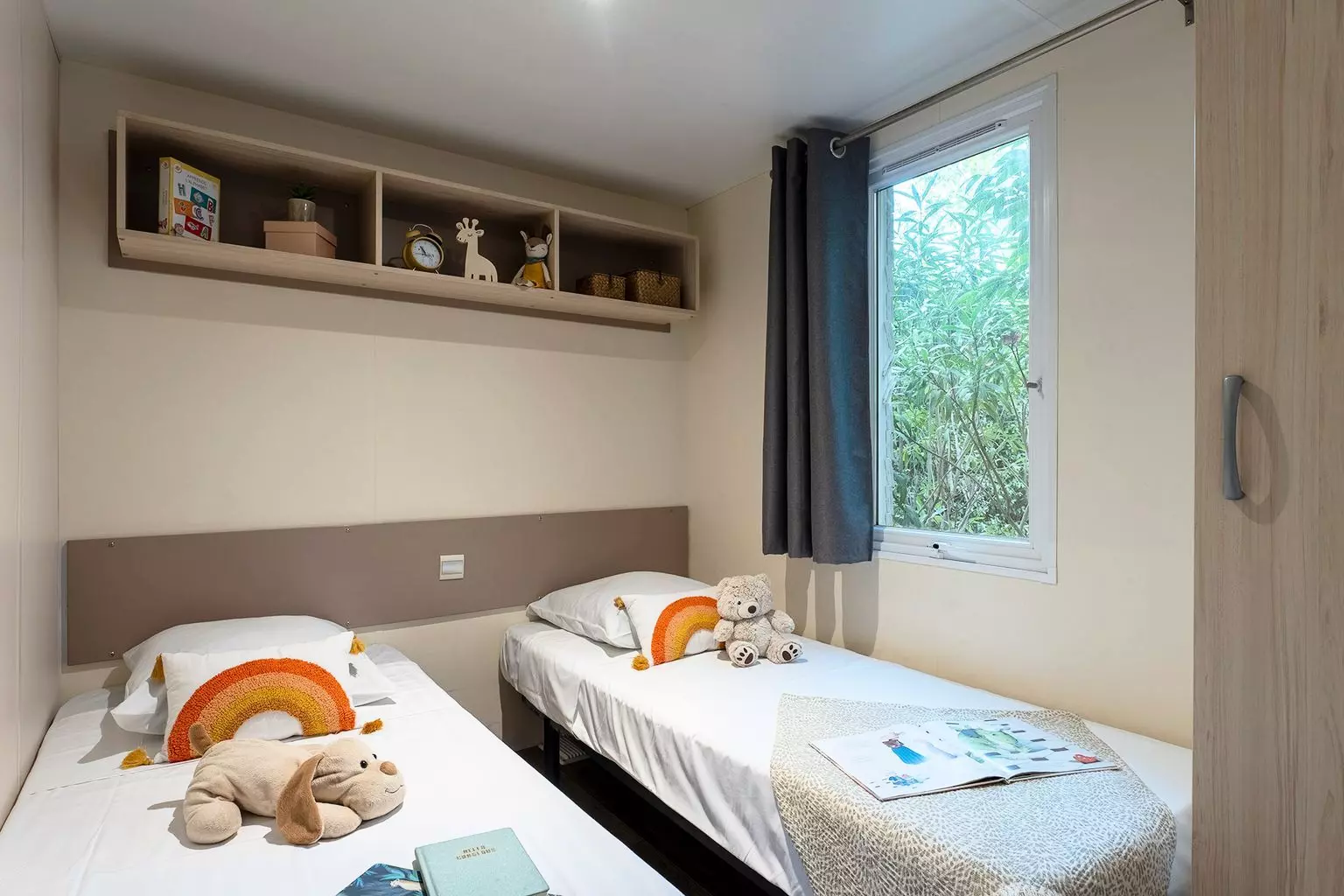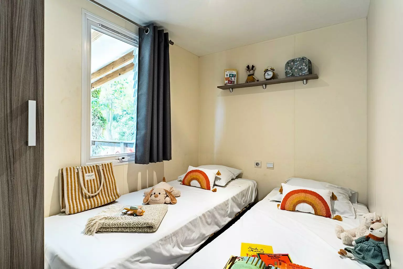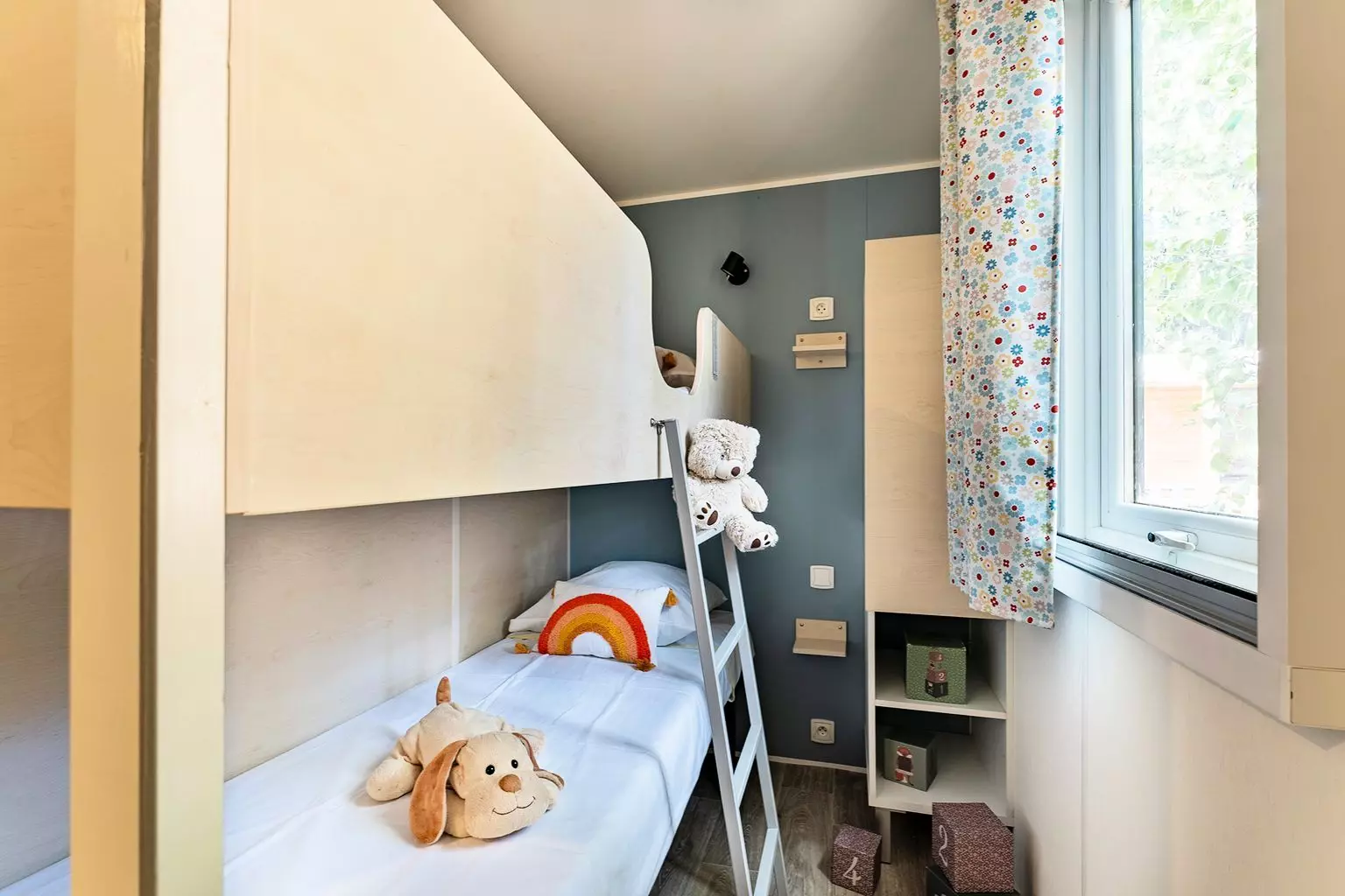 A noter : Les tailles de lits mentionnées sont non contractuelles. Il est possible d'avoir de légères différences de tailles selon les modèles de locatifs. La disposition des lits et la décoration peuvent également varier.