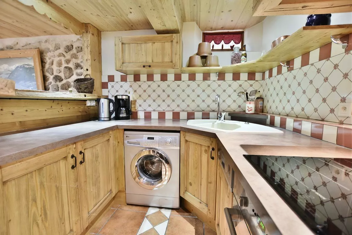 La cuisine ouverte sur la salle à manger est équipée d'un four, de 3 plaques à induction, d'un lave-vaisselle, d'un lave linge séchant, d'un micro onde, d'une machine à café filtre et Nespresso, d'un grille pain, d'une bouilloire, d'un grand frigo et congélateur, d'un appareil à raclette et à fondue et enfin d'un barbecue électrique en été.