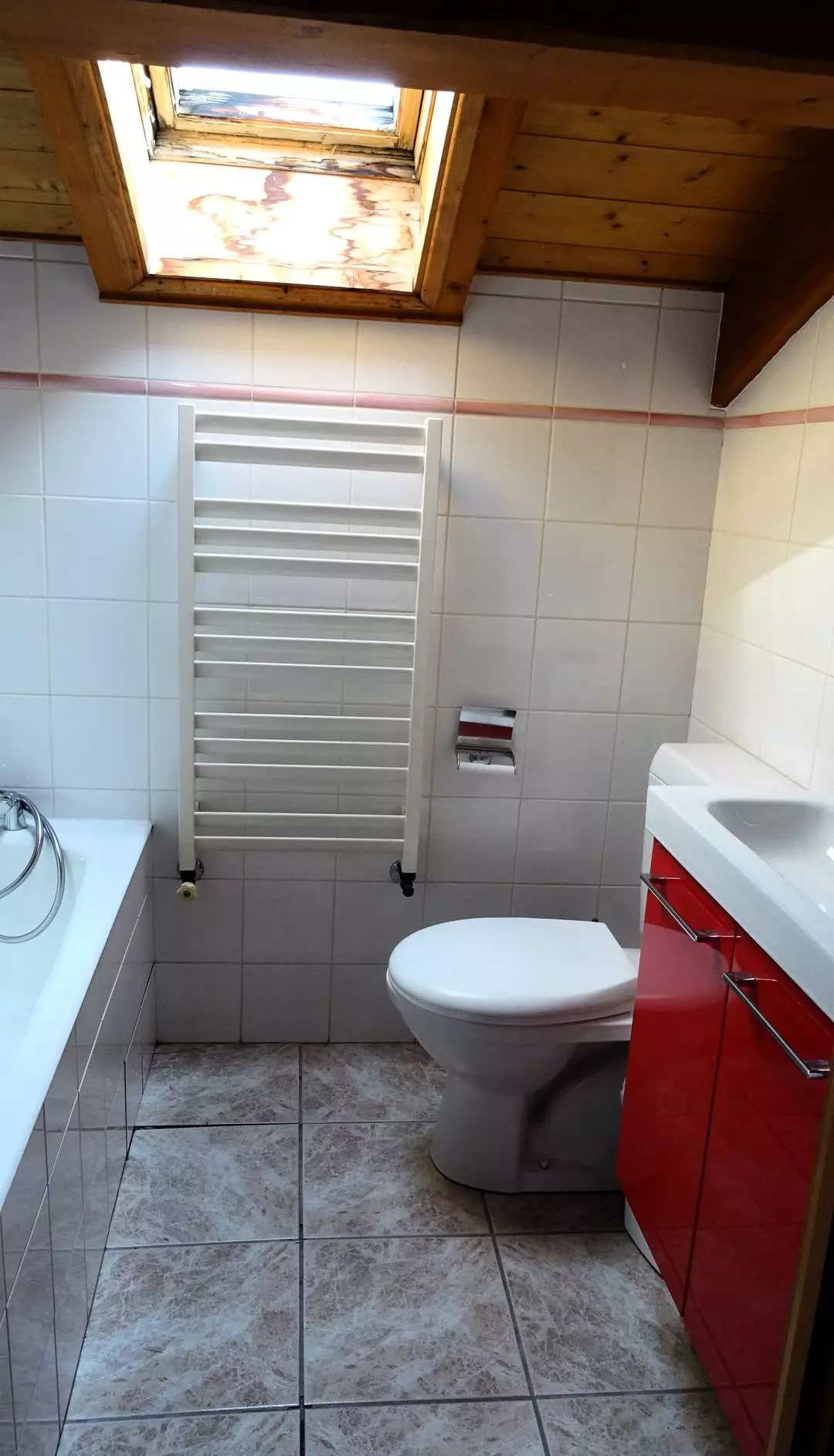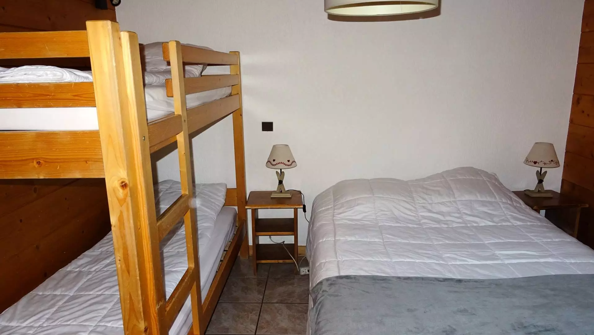 Description : - Hall d'entrée avec placards - Salon séjour canapé, accès à une terrasse équipée, vue sur le Mont-Chéry - Cuisine équipée, séparée communicante sur la salle à manger équipée (four, 4 plaques gaz, lave-vaisselle, grand frigidaire avec partie congélateur, micro-ondes, placards hauts et bas avec batterie de cuisine) - 1 chambre 1 lit double (140cm) + 2 lits superposés (2 x 80cm) avec sa salle de douche + WC attenante - WC indépendant - Du séjour accès à l'étage (hauteur inférieur à 1M80 avec poutres apparentes : - 2 Chambres équipées d' 1 lit 2 personnes (140cm) + rangement - 1 salle de bain (lavabo, wc, baignoire) - 1 chambre 2 lits simples (2 x 80cm) - 1 salle de douche (lavabo, douche, wc). Pas de casier à ski. Chauffage centrale. Animaux non acceptés - non fumeurs. Interdiction d'utiliser la cheminée hors d'usage.