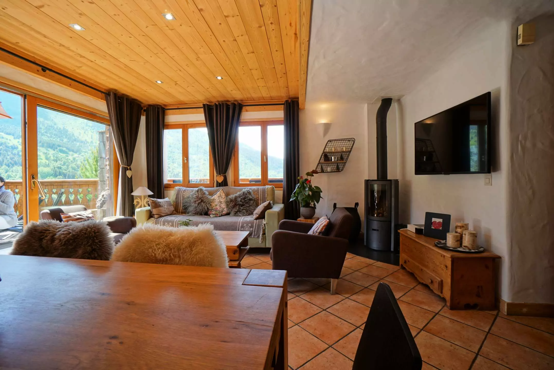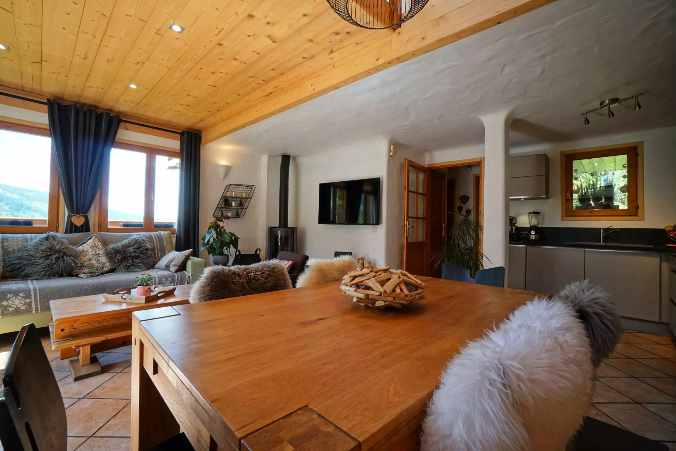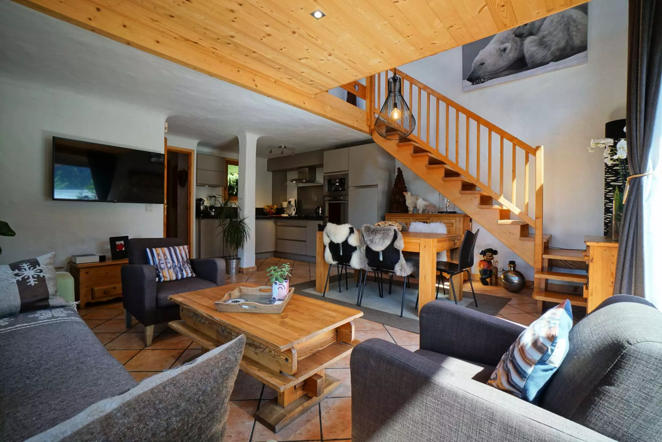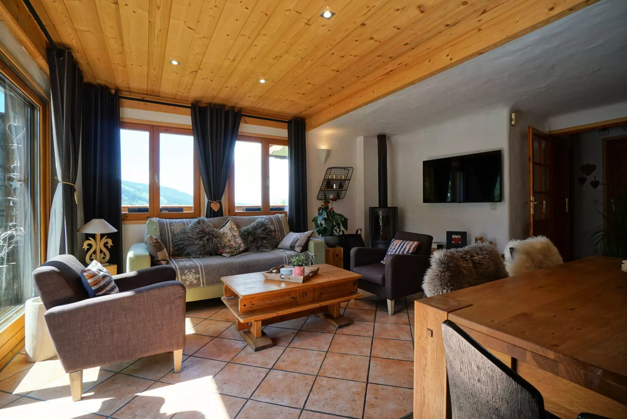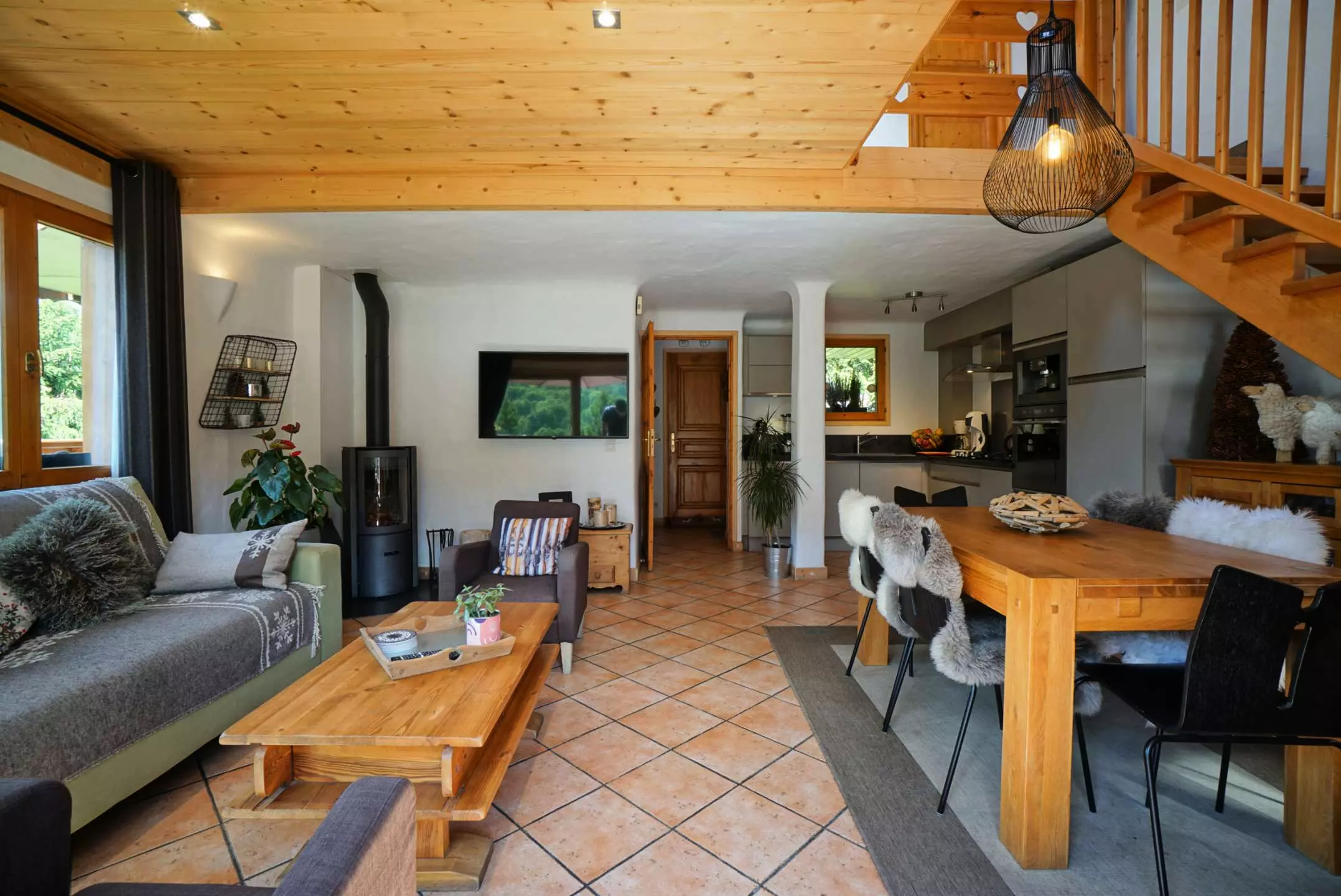Ce joli Chalet mitoyen à la montagne comprend sur son 1er niveau une belle pièce à vivre avec une cuisine bien équipée ouverte sur le séjour donnant sur une terrasse ouest et offrant une jolie vue sur les montagnes. Dans le salon, vous disposerez d'une grande télévision connectée et d'un poêle à bois afin de vous réchauffer au coin du feu après une belle journée de ski. Au niveau de l'entrée, vous trouverez 1 chambre avec 1 lit 2 personnes en 140 avec télévision et une salle d'eau attenante ainsi que des toilettes indépendantes avec lave-mains. Au 2ème étage, une mezzanine très agréable vous permettra de vous détendre et de partager de bons moments en famille. Vous découvrirez 1 grande chambre avec 1 lit 2 personnes en 160 avec télévision, une petite chambre avec 1 lit 2 personnes en 140 avec télévision, une salle d'eau et des toilettes indépendantes.