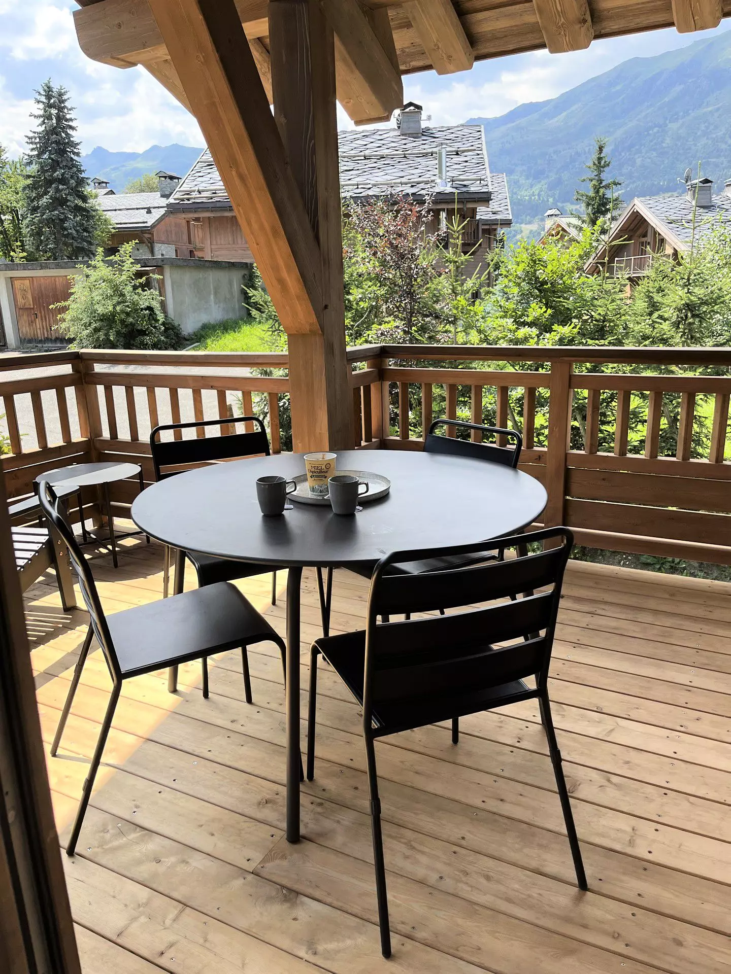 Balcon/Terrasse: aménagée avec des chaises pour la détente, ainsi qu'une table et des chaises pour profiter de repas en plein air