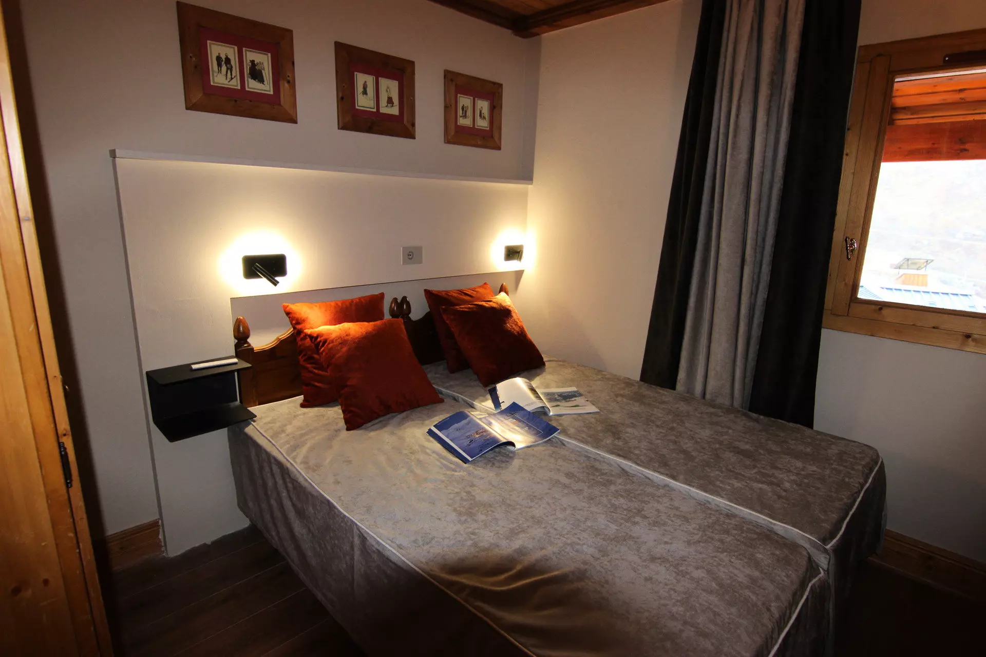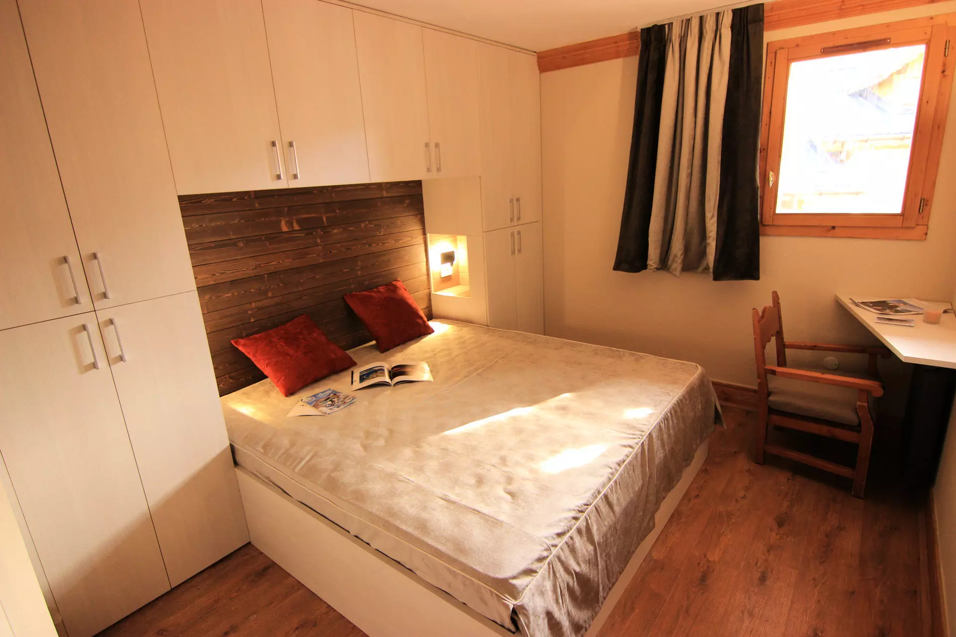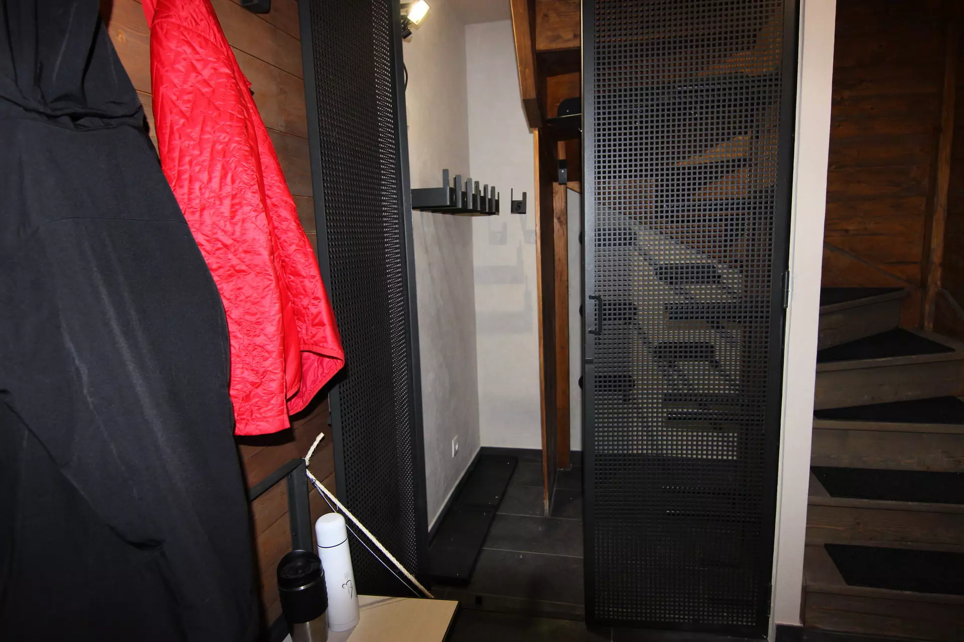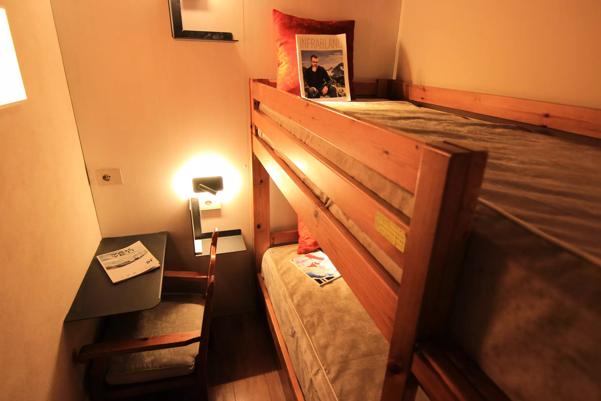 Coin montagne : lits superposés fermés par une porte.