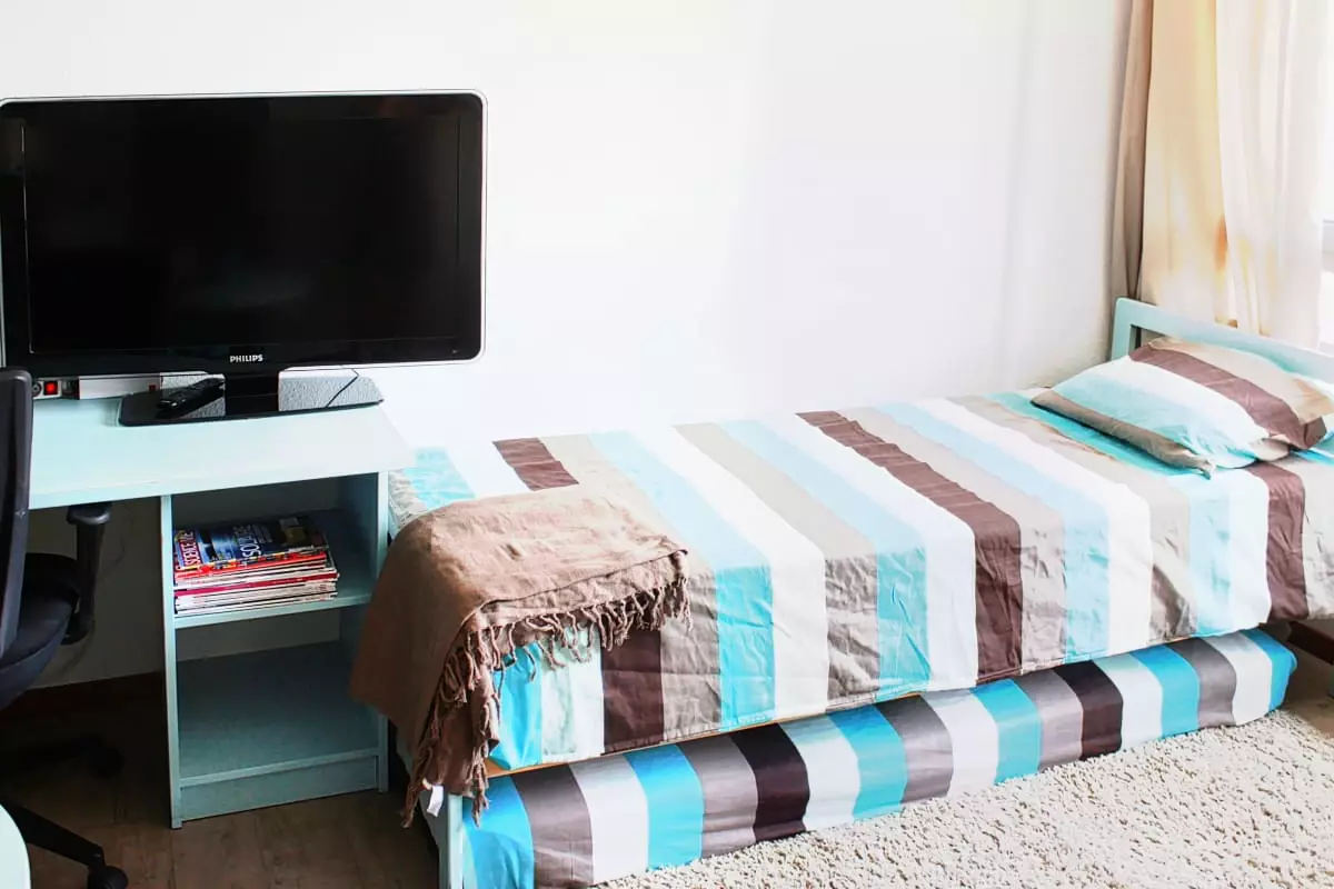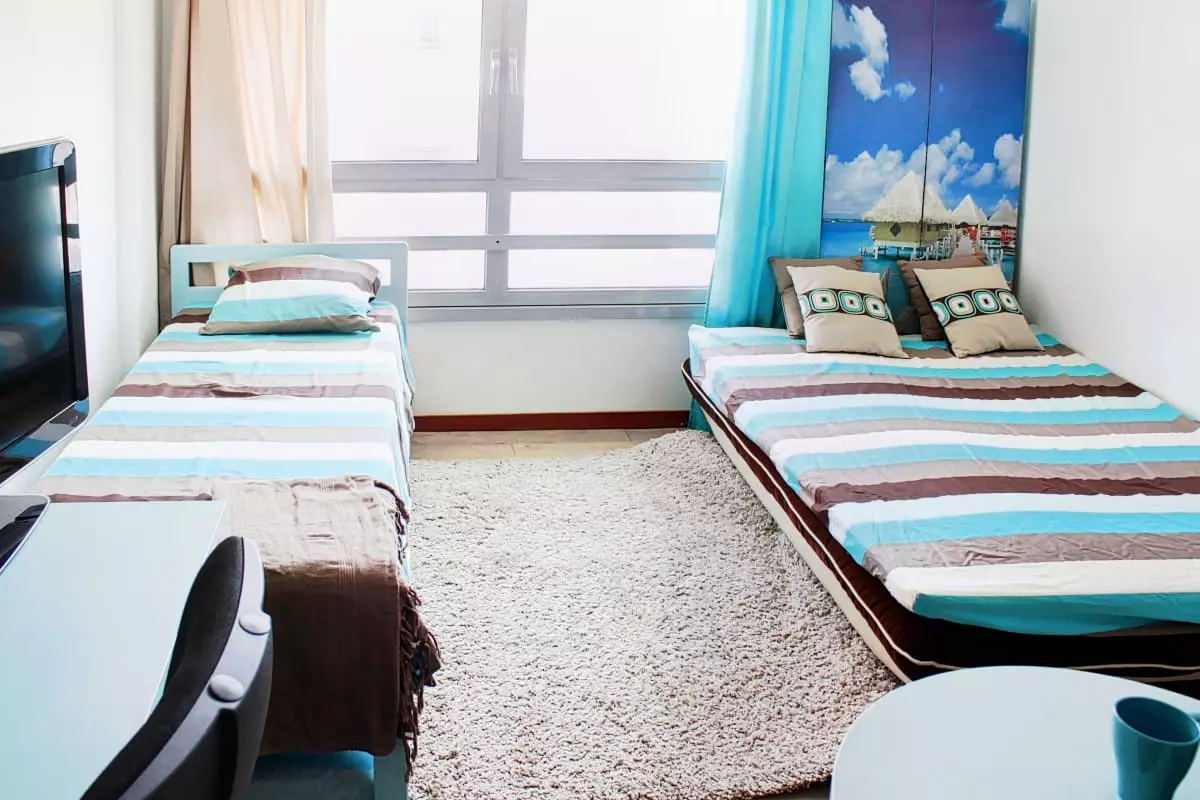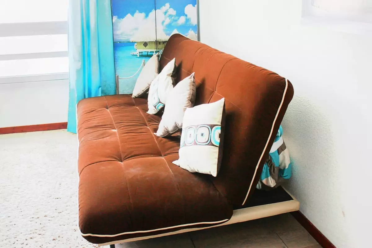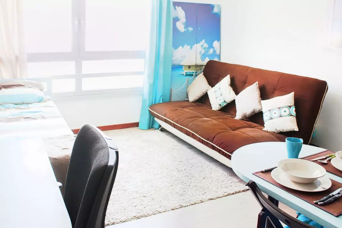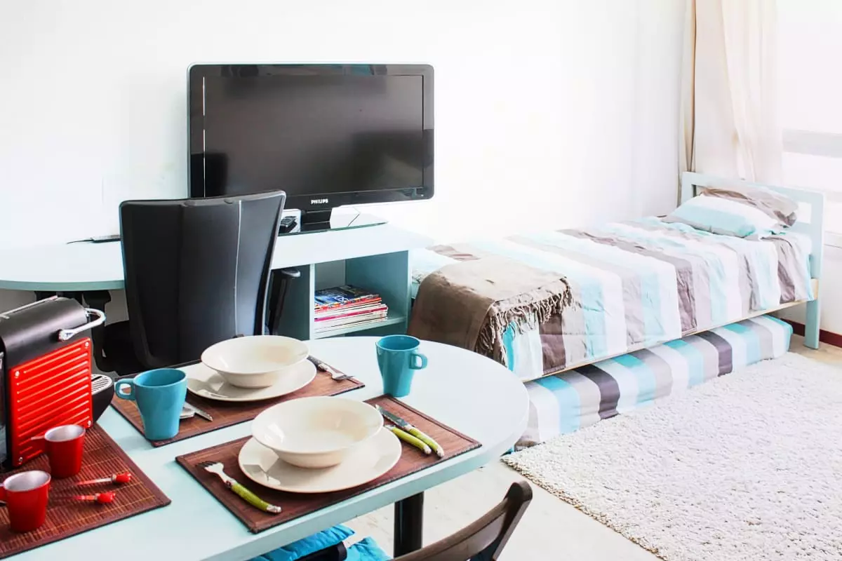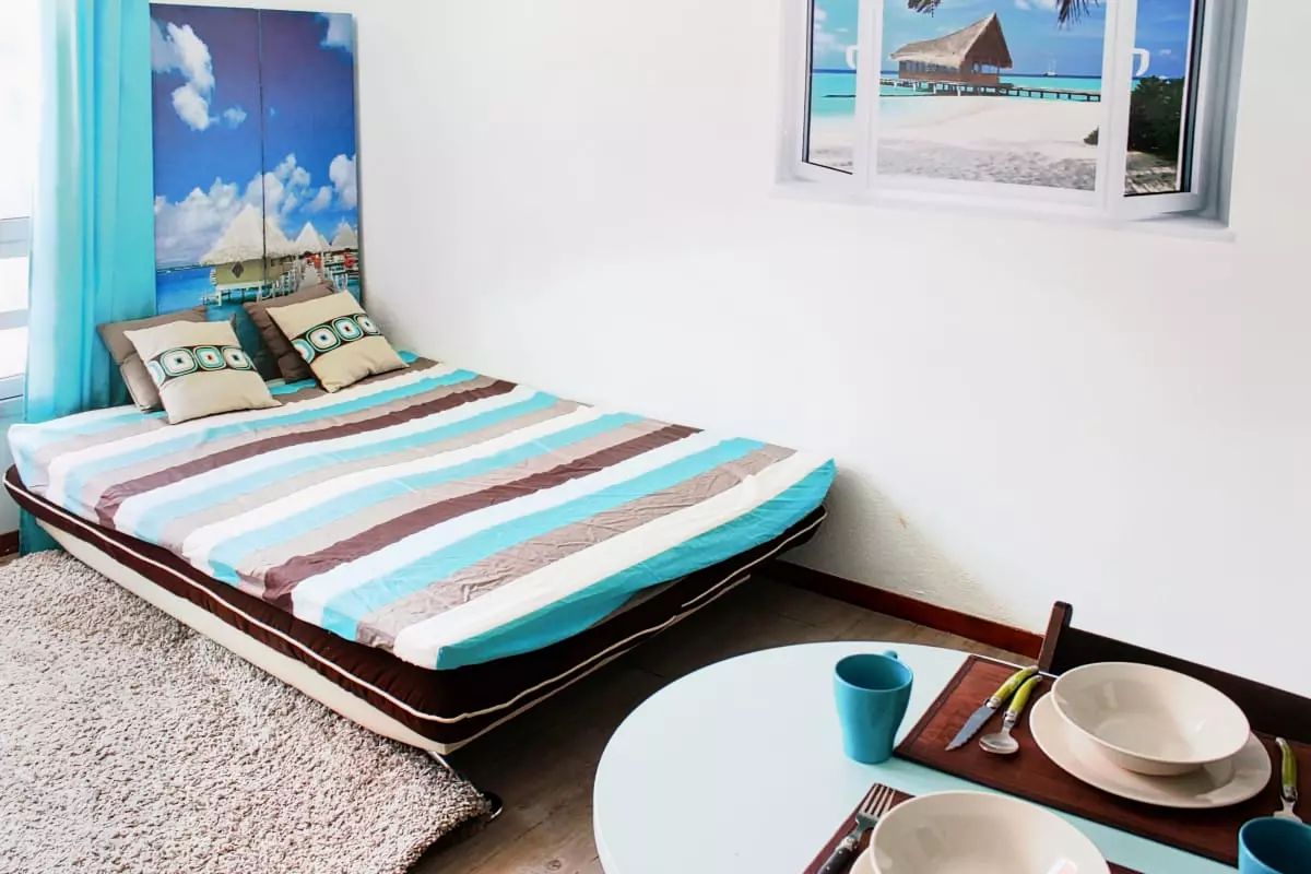 Le studio dispose d'un lit de 80× 200 et d'un canapé lit 2 places avec Tv à écran plat, un four à micro-ondes ainsi qu'une machine à café et d'un ventilateur.