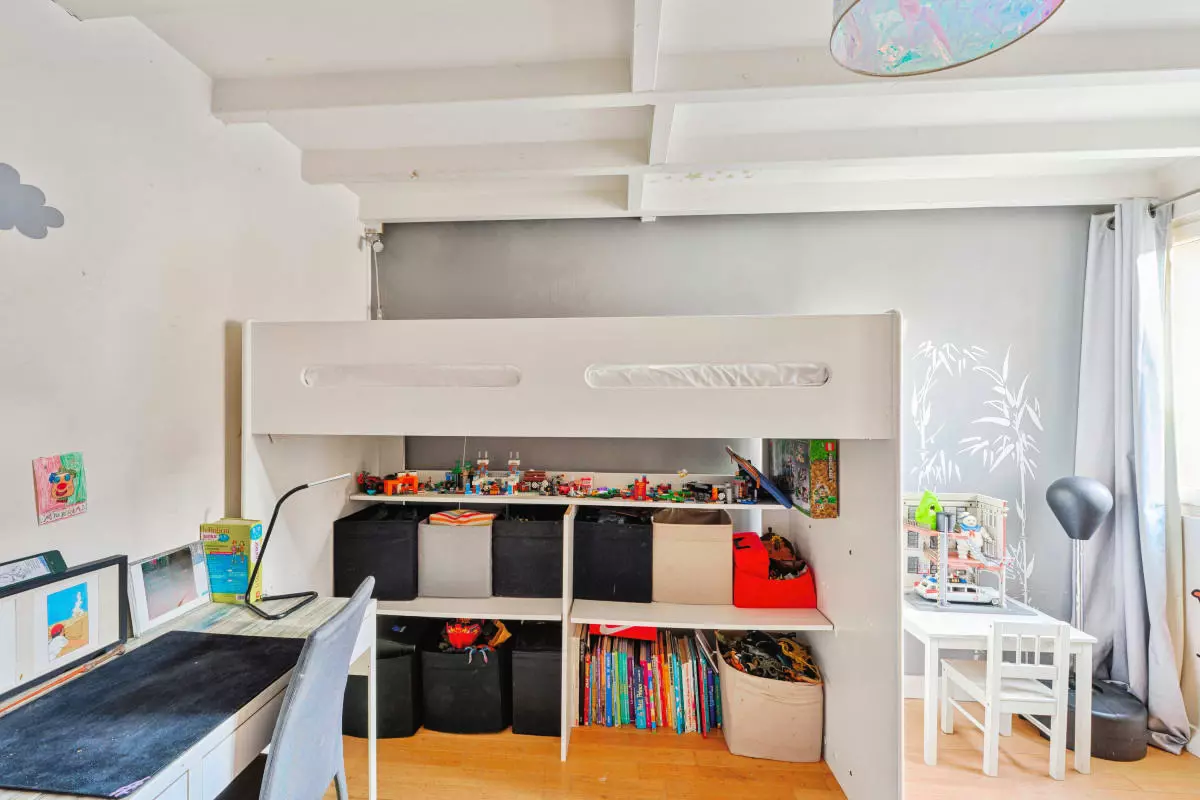 • une deuxième chambre avec un lit simple superposé et un coin bureau,