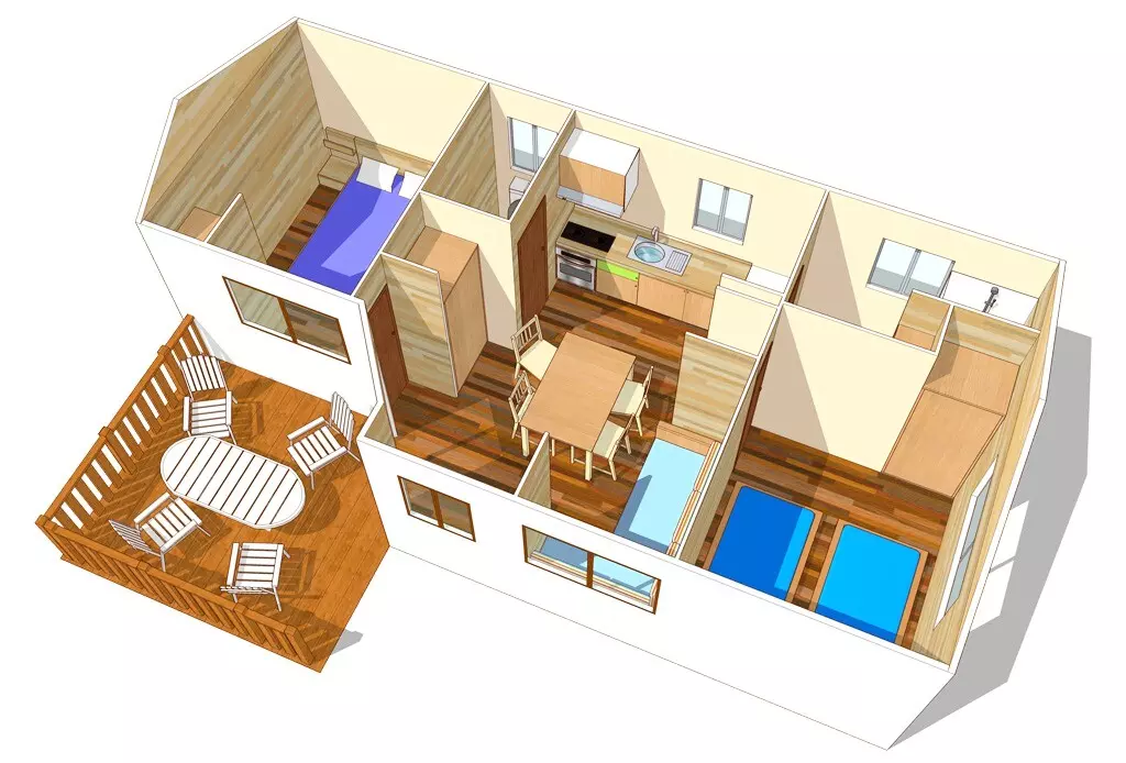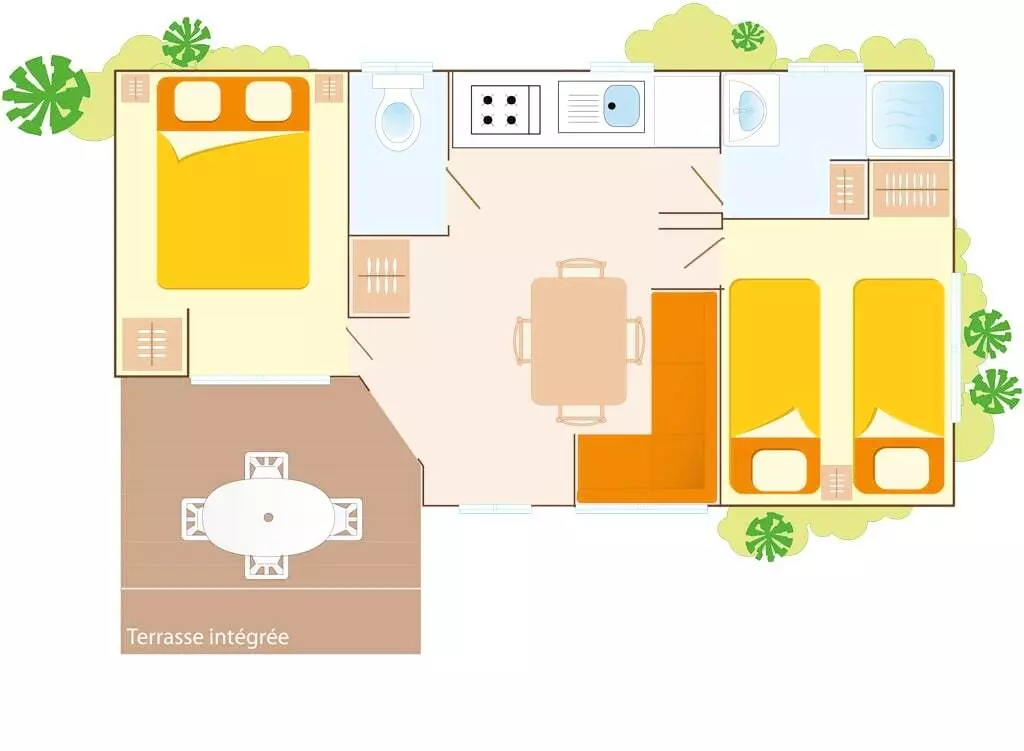 Mobil-home Comfort 3 pièces 4 adultes + 2 enfants climatisé avec :