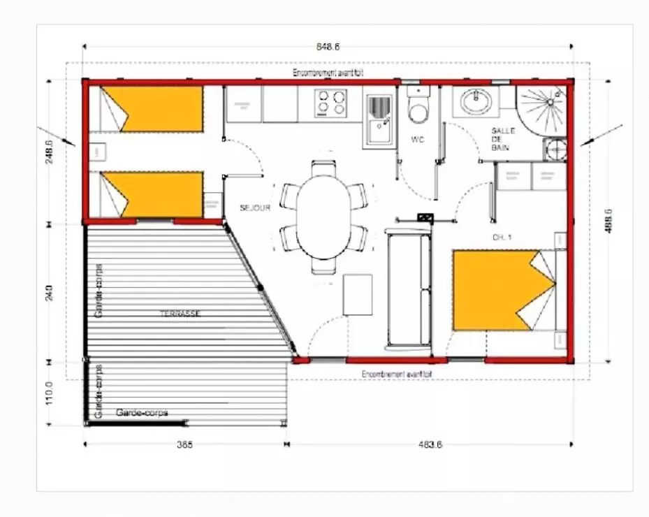 34 m2 + 10 m2 de terrasse couverte