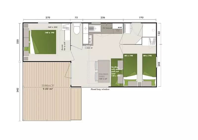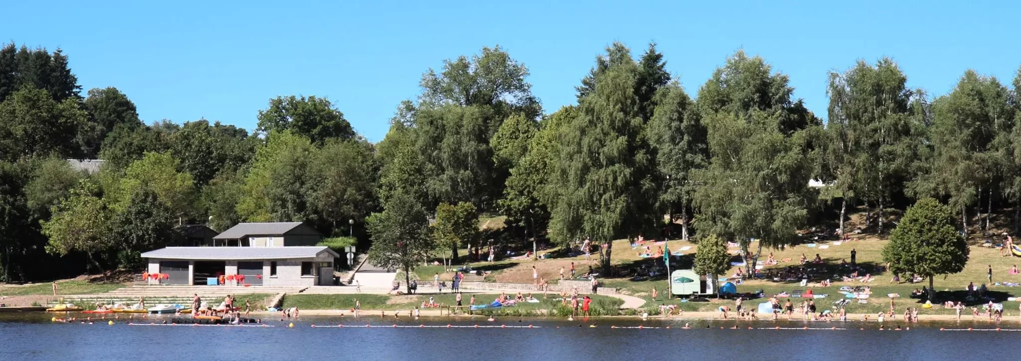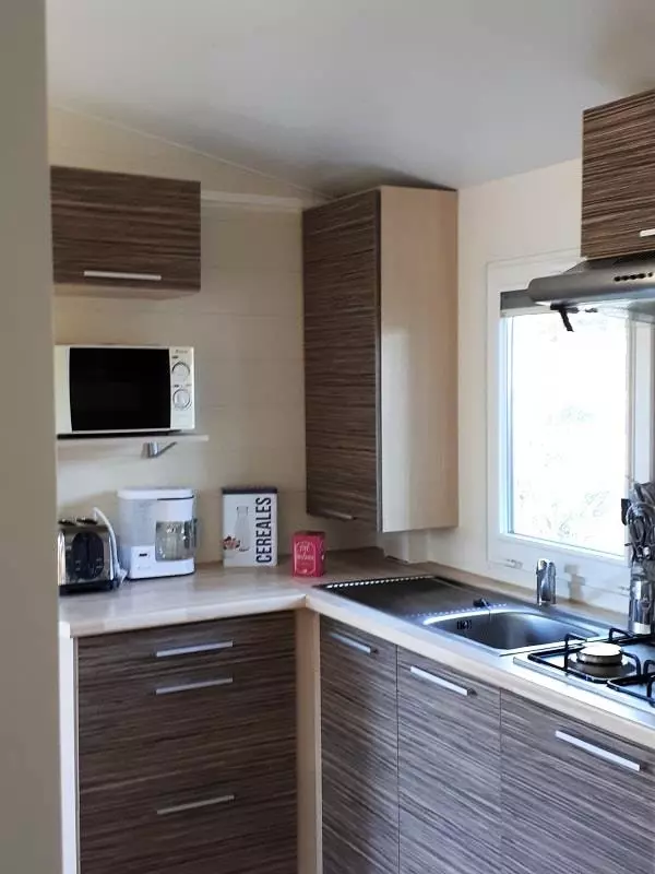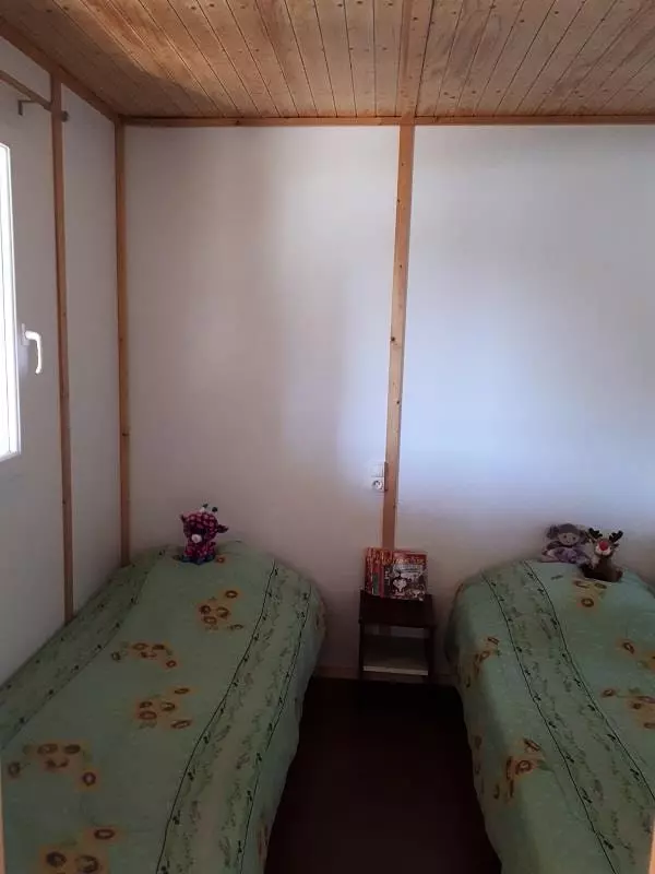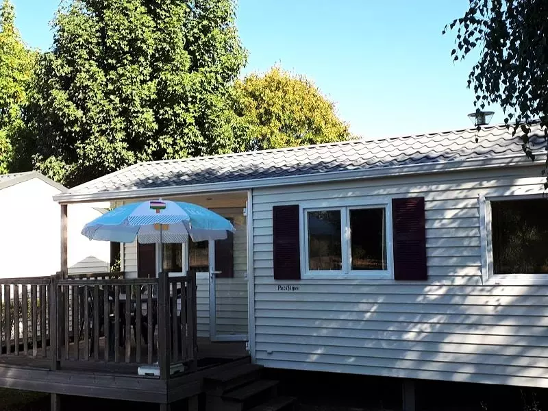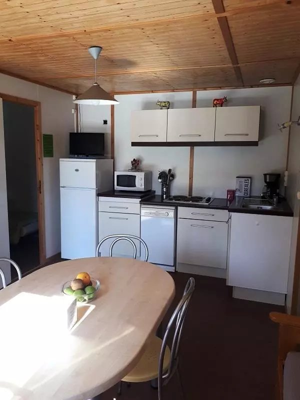 Mobil-Home 28m², confortable accueillant 2 à 4 personnes comprenant 2 chambres , Cuisine, Salon et Terrasse couverte extérieure de 10m². Wifi gratuit. Activités sur le lac en accès direct et illimité. Animations en camping. Départ de Randonnées