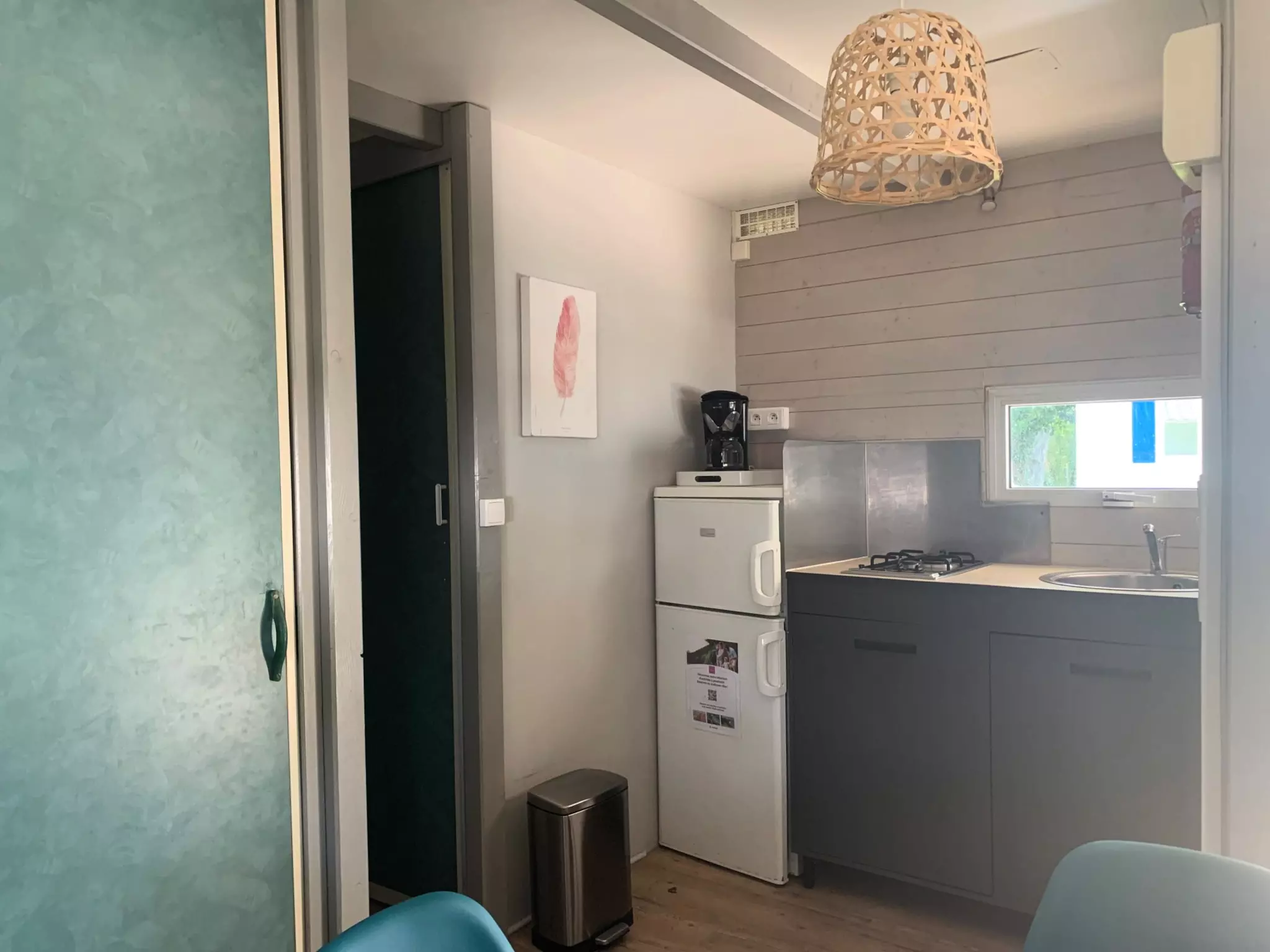 Le logement comprend : - Coin cuisine : réfrigérateur, congélateur, plaque de cuisson, micro-ondes, cafetière