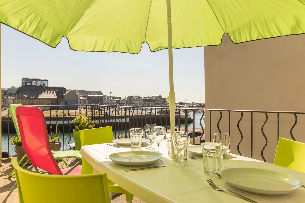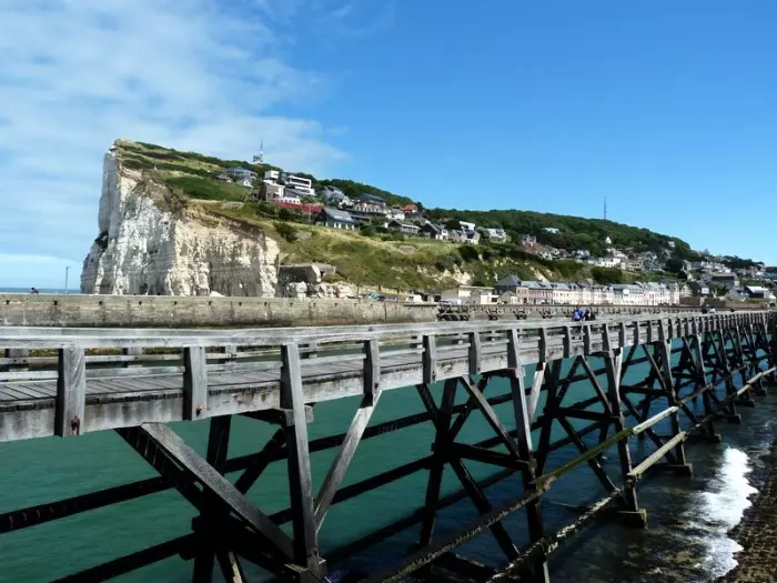 Au rez-de-chaussée : - cour intérieure privative, avec buanderie ( (lave-linge, sèche-linge, point d'eau), garage pour motos et vélos. Place privative. Au 1er étage d'une maison mitoyenne (sans aucun autre occupant) : - belle pièce de vie vue sur le port, avec cuisine ouverte (lave-vaisselle, feux gaz, four, micro-ondes), - salle à manger,/salon (TV écran plat et chaines internationales), cheminée (bois offert), canapé lit 2 personnes de qualité (140x190cm), - 1 chambre 2 personnes (180x200cm) avec vue sur les estacades et la mer, - salle d'eau avec douche à l'italienne et wc,. Découvrirez ce havre de paix le long du quai Maupassant. Ce charmant Gîte vous comblera par son agréable vue sur le port, sa terrasse exposée plein Sud ou sa cheminée qui donne à la pièce de vie une ambiance chaleureuse. La chambre avec son lit King Size ( 180x200) orienté face à la mer est un régal et un ravissement chaque matin. Stationnement facile dans la rue calme et sans issue. Il ne vous reste plus qu'à profiter de toutes les commodités accessibles à seulement 5 minutes à pied. A 100 m du gîte, accès au chemin de randonnée (GR21), sente aux matelots qui conduit côte de la vierge, au sommet de la falaise. Pour les cyclistes, véloroute du Littoral qui longe la côte d'albâtre ou la voie verte appelée véloroute du lin, proposant une balade à travers les champs de l'arrière pays cauchois.