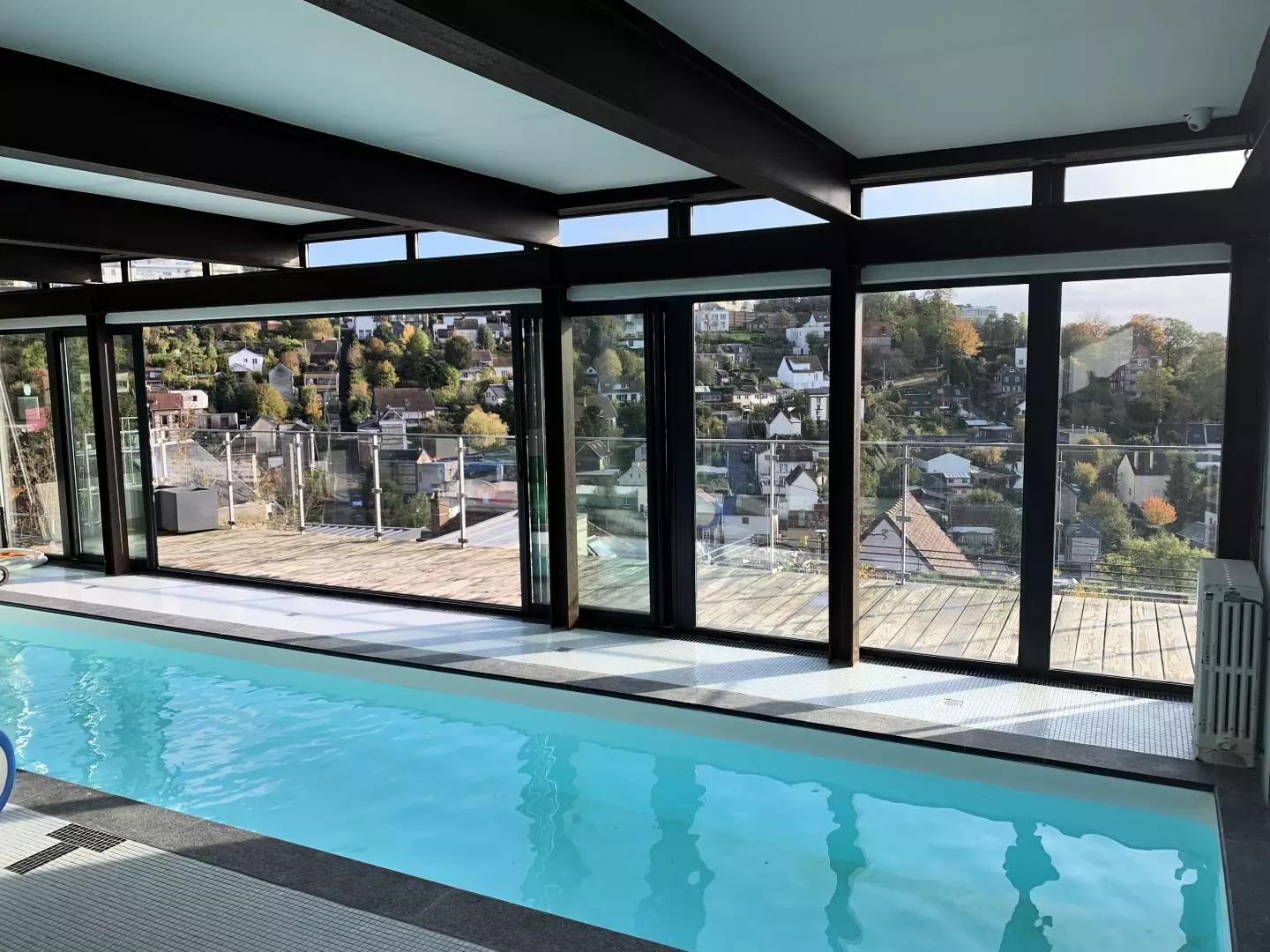 Bienvenue au gîte "Best View" ! Situé à Bois-Guillaume, le lieu abrite 6 autres hébergements tous indépendants avec terrasse privative et vue exceptionnelle qui surplombe Rouen. En arrivant devant votre garage, il vous faudra monter quelques marches (équivalent 3 étages) pour arriver au logement avec terrasse. Vous apprécierez l'ambiance et la tranquillité du lieu avec ses jardins potagers , les nombreuses essences végétales et la possibilité d'accéder à une piscine couverte chauffée et partagée du 1/04 au 30/10. Important : la piscine est privatisée pour vous de 10h à 17h du 1/04 au 30/10.