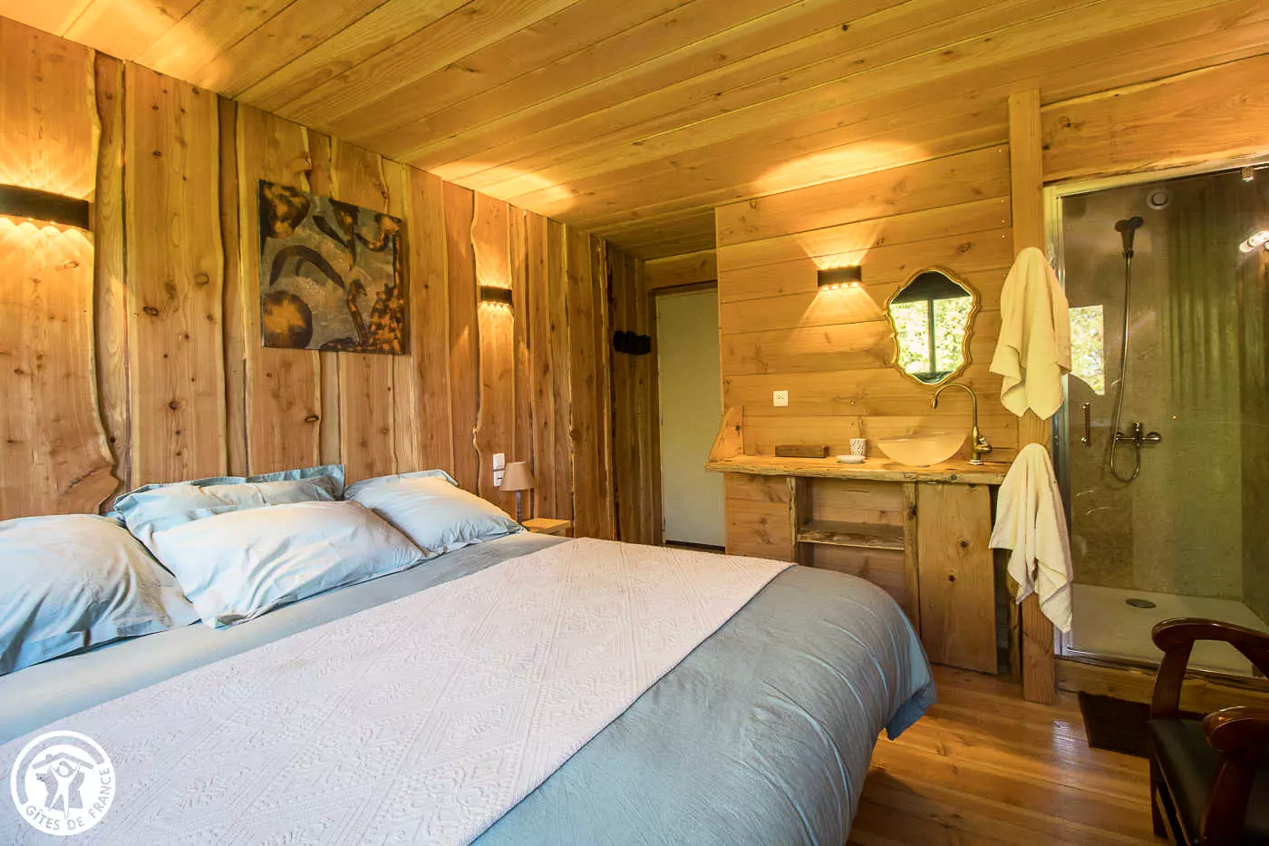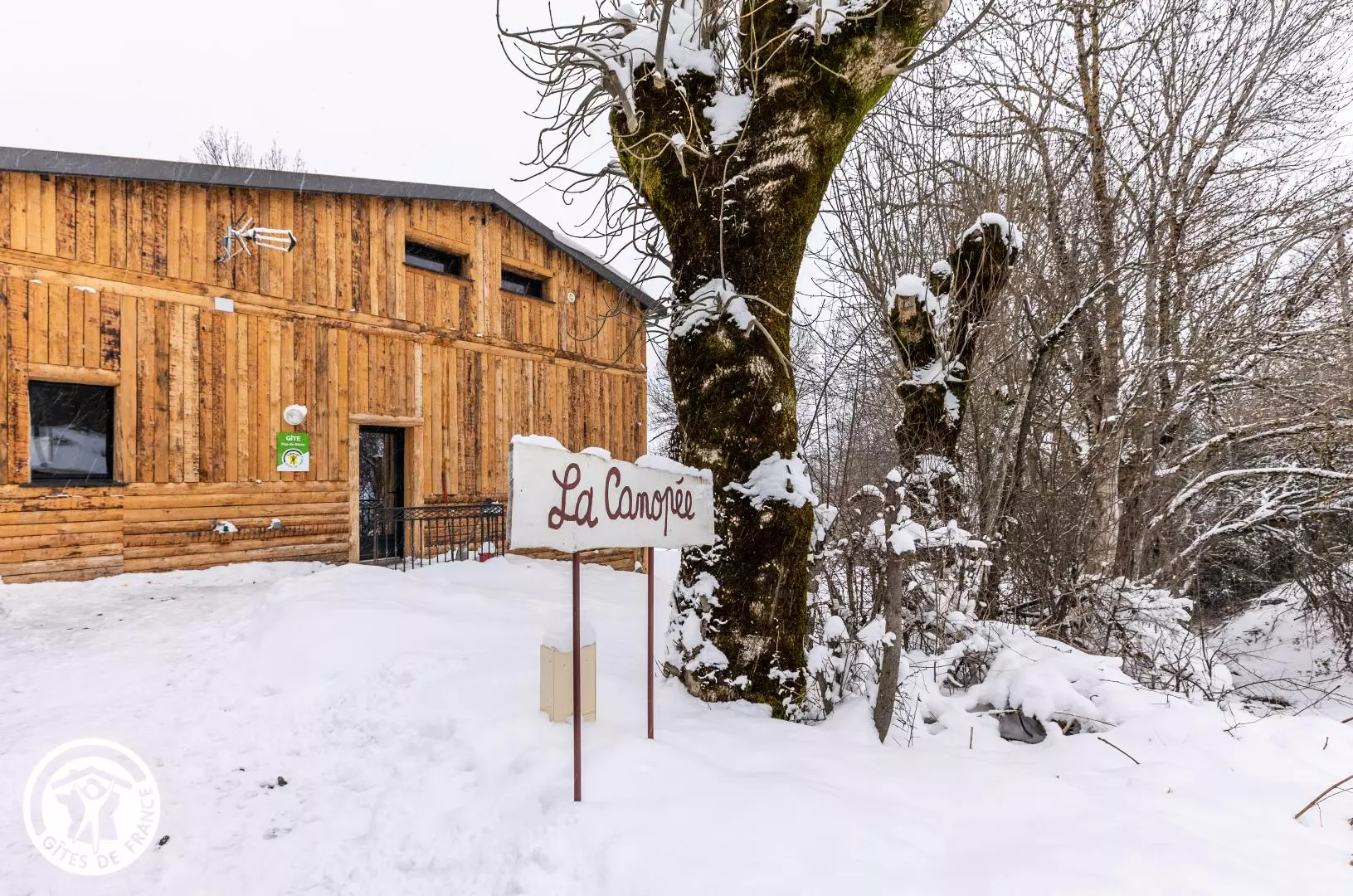 La Canopée, maison à l'ambiance chaleureuse est idéale pour des séjours en pleine nature au grand air en famille ou entre amis. Elle se compose au rez-de-chaussée de deux chambres avec chacune douche et WC privatifs, lit de 180, grande baie vitrée. Ménage, lits faits à l'arrivée et linge de toilette inclus.