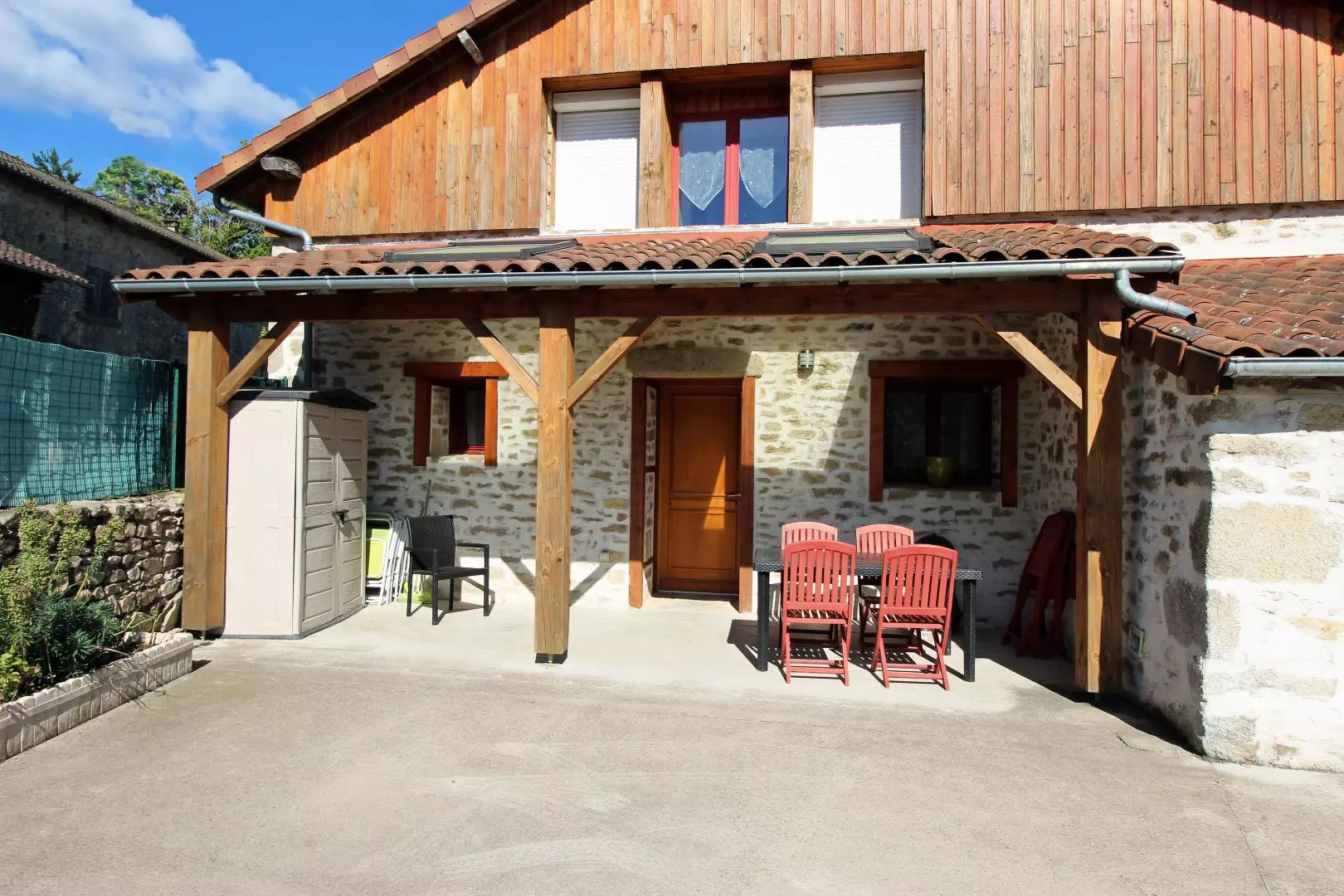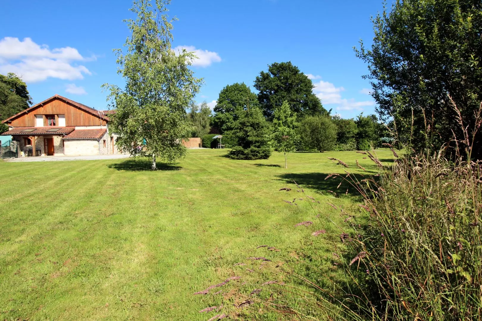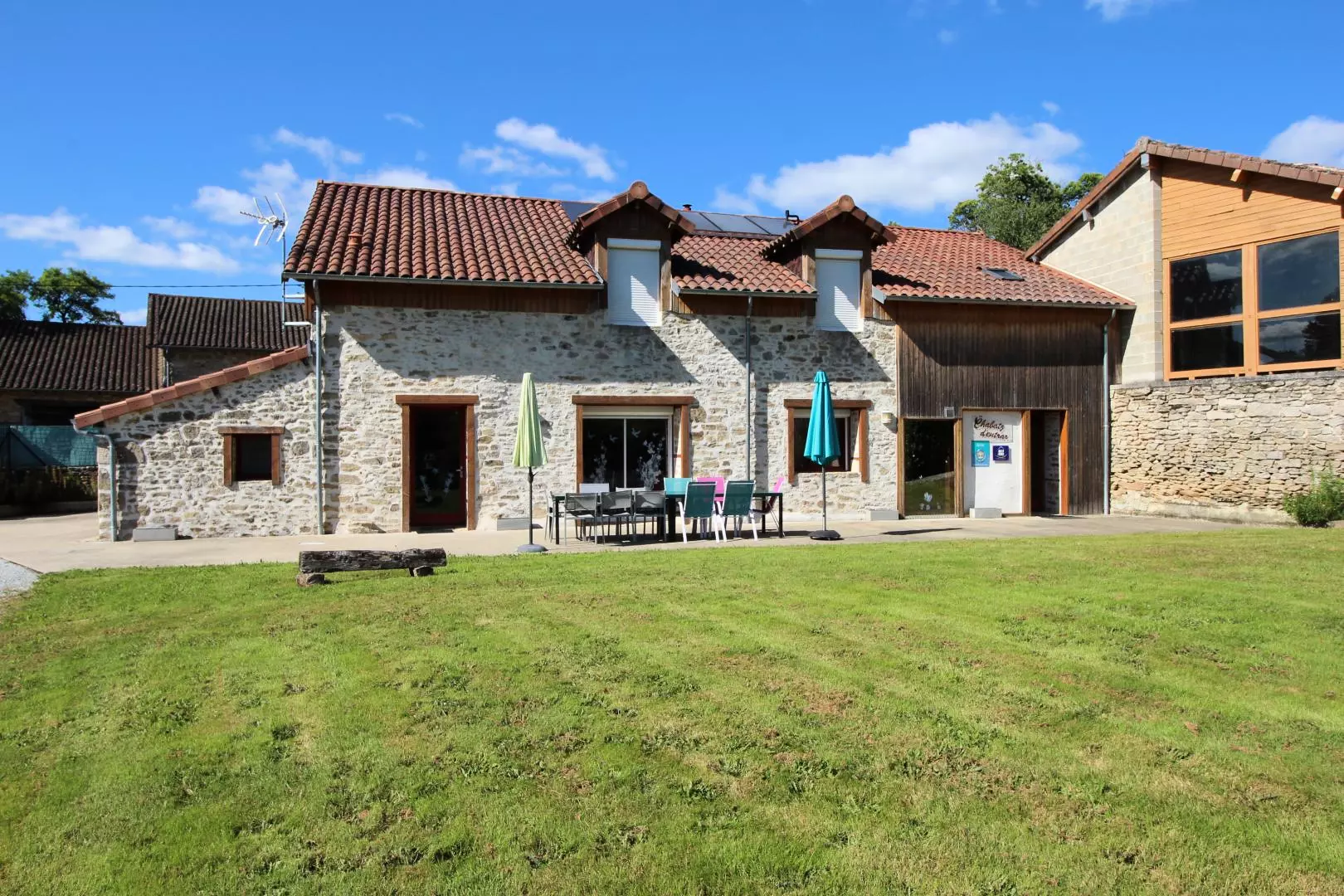Aux portes de Limoges, dans un hameau, à l'extrémité Ouest d'une longère qui comporte l'habitation du propriétaire et un autre gîte (12 pers. avec piscine) la maison ouvre sur deux terrasses, dont une avec auvent, et une pelouse (5000 m²) privées et totalement indépendantes.
