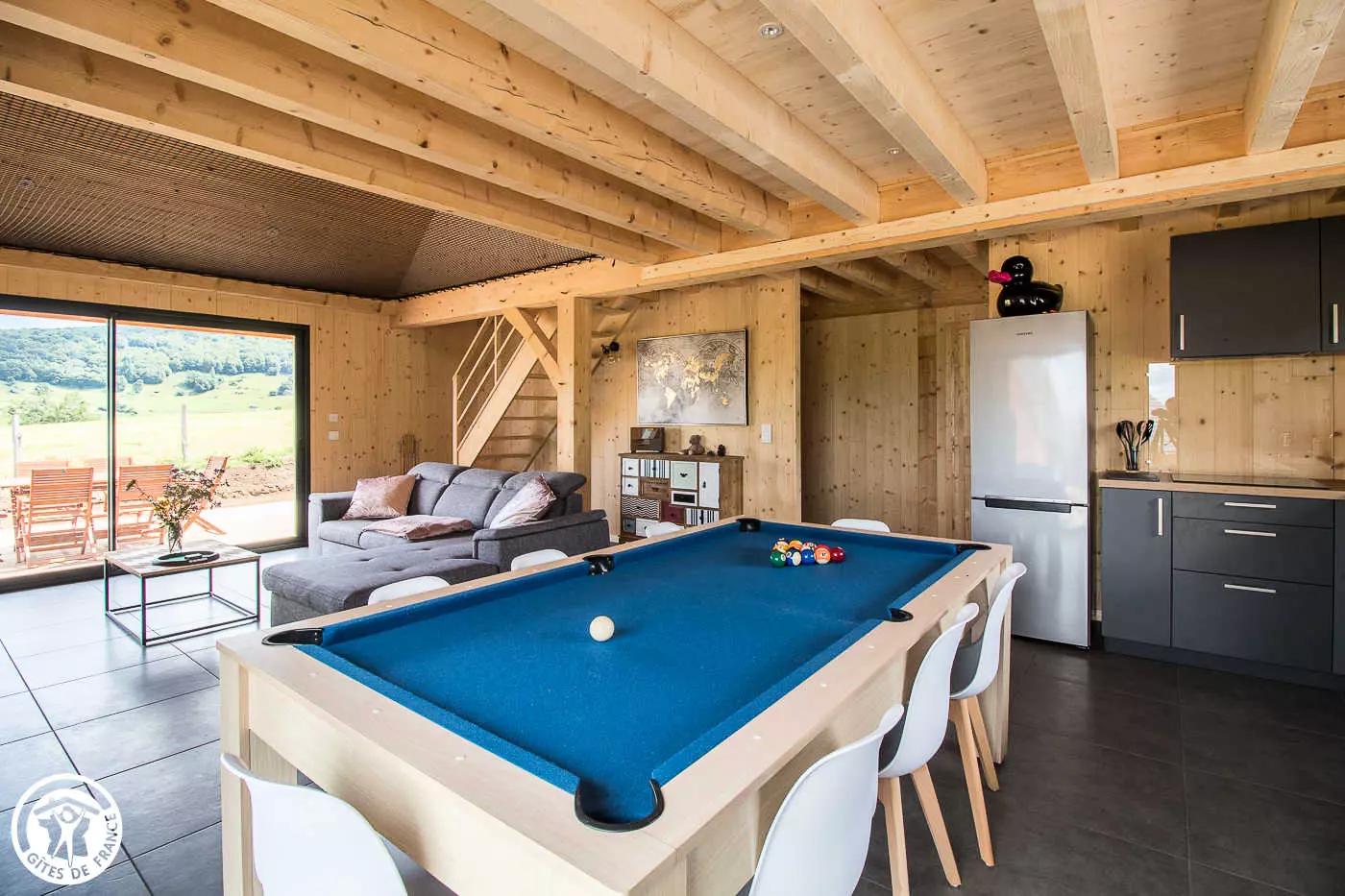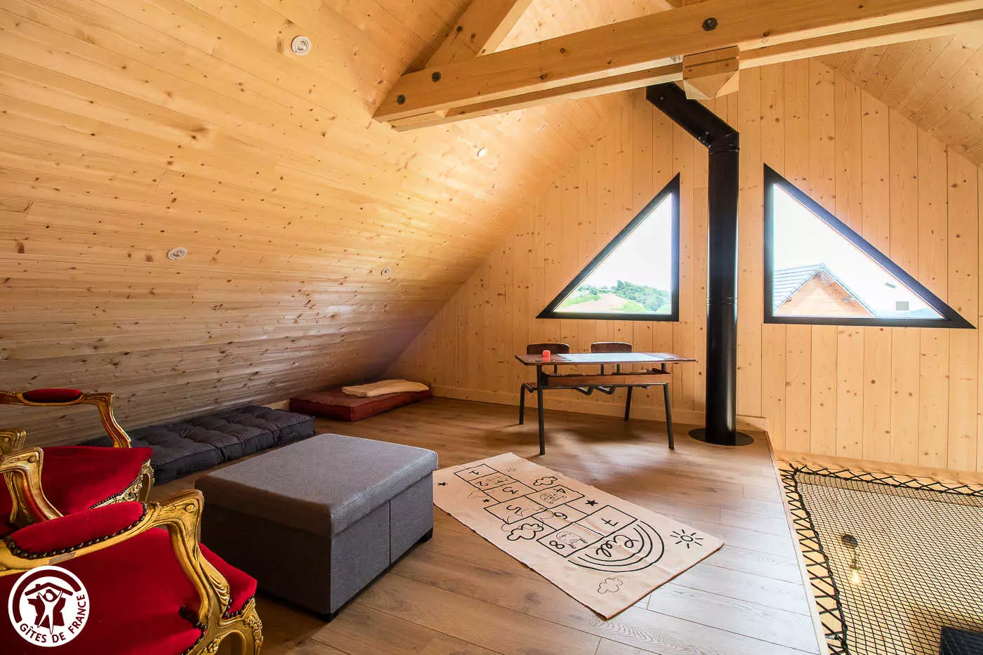 TOUT INCLUS ! Vue à couper le souffle et gîte d'exception au cœur du massif du Sancy ! Le "Chalet Rose des Neiges" vous émerveillera à tous points de vue ! La qualité des matériaux, des finitions, des prestations ainsi qu'un emplacement de rêve au cœur du Parc Naturel des Volcans d'Auvergne avec une vue panoramique depuis la terrasse sur la Vallée de Chaudefour à couper le souffle ! Cerises sur le gâteau : un immense filet tendu donnant sur le salon et une décoration sublime ! On adore : le billard, le jeu de fléchette ainsi que le terrain de pétanque ! Le gîte est un chalet indépendant comprenant au rez-de-chaussée (accessible PMR) un vaste séjour-cuisine ouverte, lumineux et confortable avec un poêle à granulés (granulés fournis), une magnifique chambre avec un lit 160 et salle d'eau/wc privative, un wc indépendant et une pièce de rangement/buanderie. A l'étage : deux chambres avec balcon privatif chacune, l'une avec un lit 160 et un lit bébé et l'autre avec trois lits 90 dont deux pouvant être accolés, une salle de bains/wc et une mezzanine aménagée en véritable espace de jeux ludique et confortable avec le filet tendu ! Après une belle journée au grand air, vous pourrez profiter du sauna. Pour votre confort, tout est inclus : les draps sont fournis (lits non faits), le linge de toilette est fourni, le ménage et le chauffage. A l'extérieur vous profiterez d'un terrain non clos de plus de 1000m², d'une splendide terrasse avec salon de jardin et barbecue ainsi que d'un véritable terrain de pétanque ! Parking privatif. A ne pas manquer : le lac Chambon, la Vallée de Chaudefour : cirque majestueux où vous pourrez randonner, Besse-et-Saint-Anastaise qui est un village médiéval, Saint-Nectaire et son église, le château de Murol ou encore l'hiver : le ski de piste, le ski de fond ou les raquettes. Animaux sur demande propriétaire.