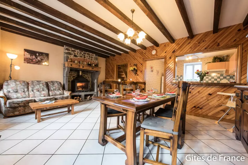 Saint Nectaire à 17 km. A proximité : basilique d'Orcival, châteaux de Murol, La Batisse. Maison indépendante. Rez-de-chaussée : salle de séjour/coin-cuisine, cheminée avec insert, wc indépendant. 1er étage : 2 chambres avec 1 lit 2 pers, 1 chambre 2 lits 1 pers, Salle d'eau. 1 WC indépendant. Équipement bébé. Espace extérieur clos 570m². Chauffage électrique selon consommation (entre 8 et 61 euros), bois 35€/demi stère. Commerces et services à Aydat 4 km et à Murol 11 km.