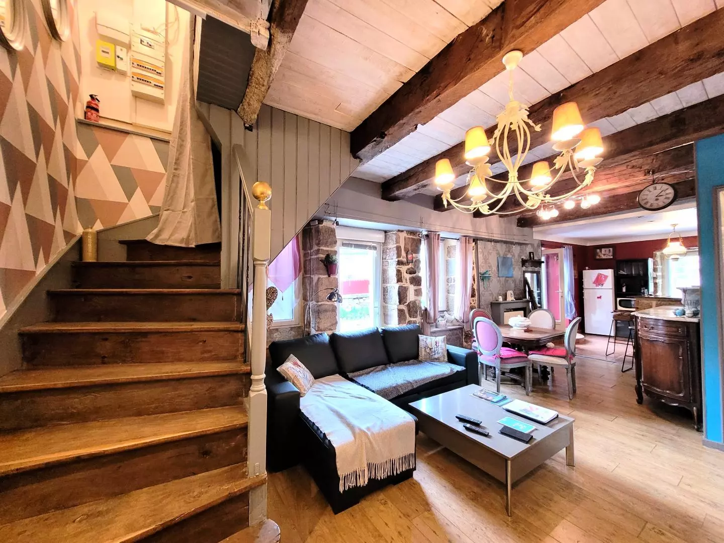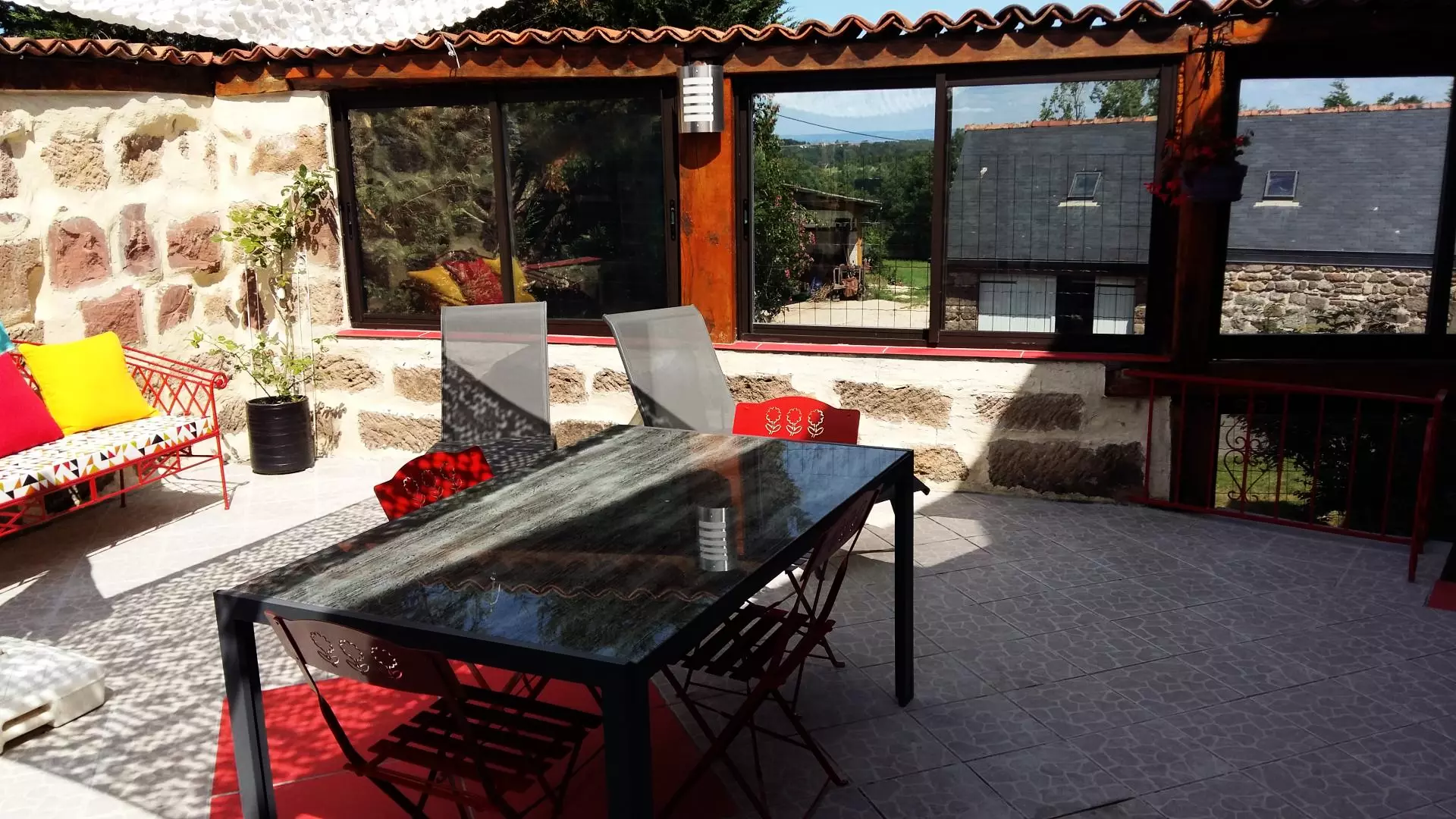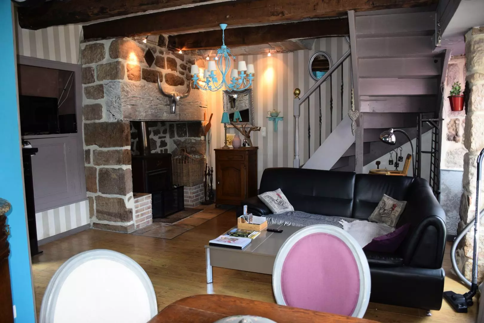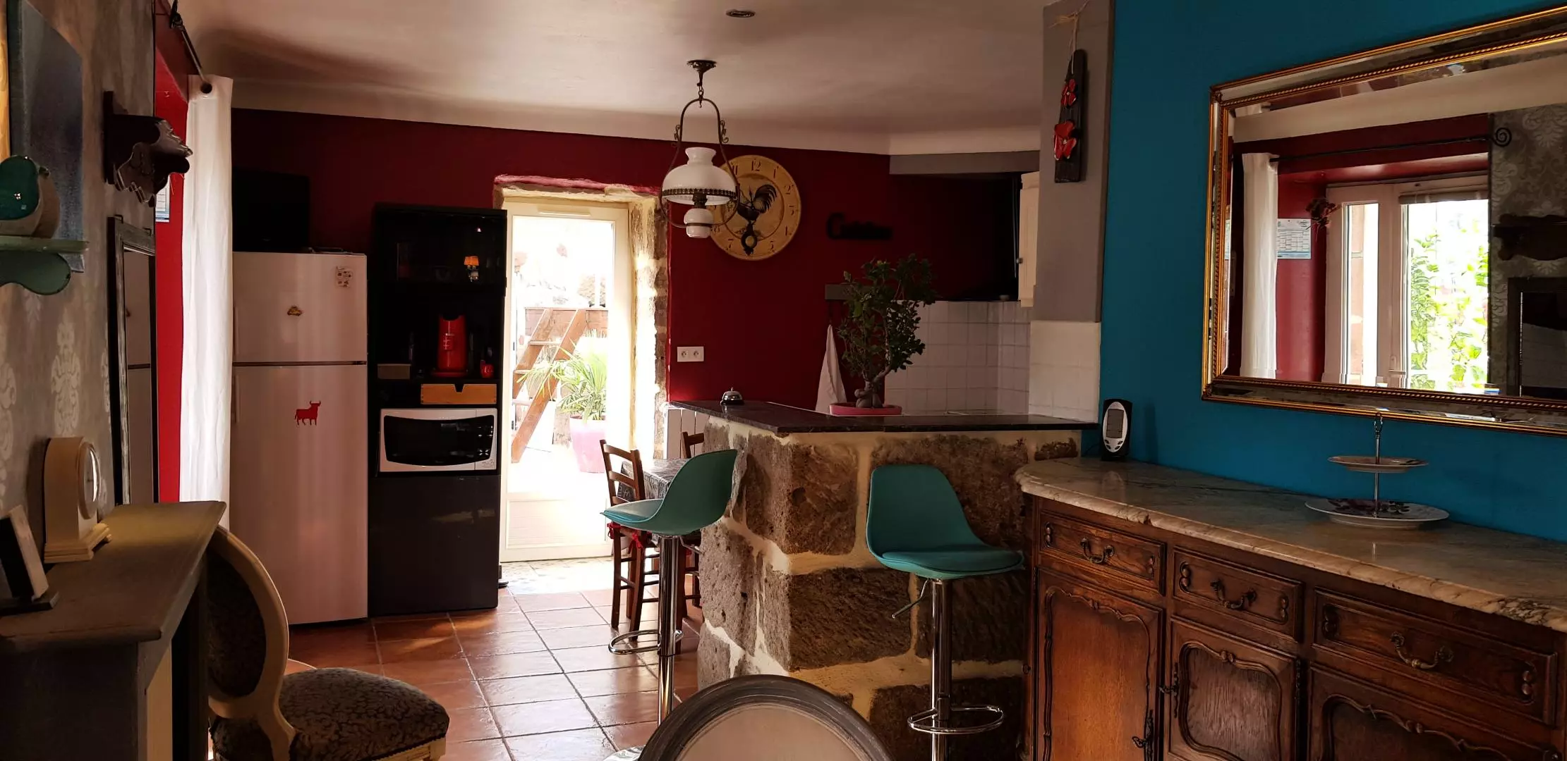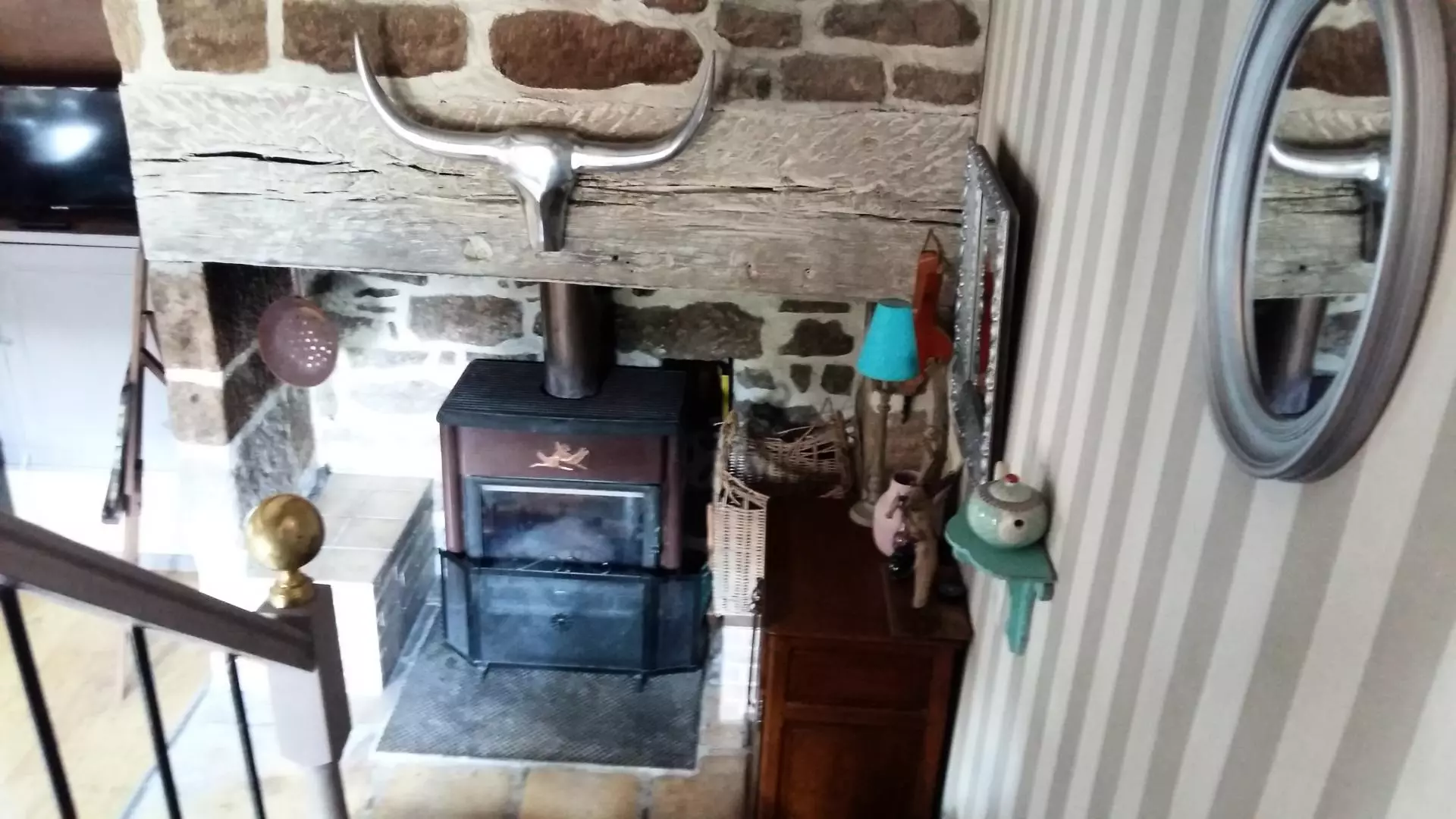 Sur le même niveau: une pièce de vie avec coin cuisine, salle à manger /salon avec poêle à bois, une salle d'eau avec WC . Climatisation.