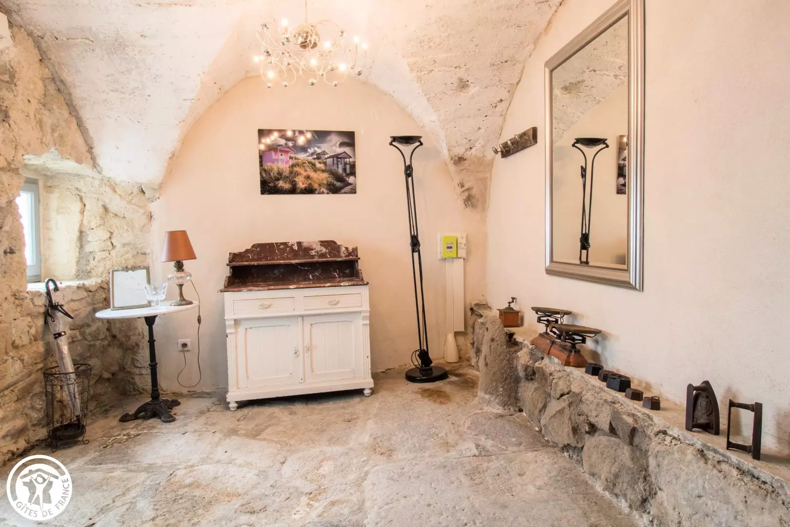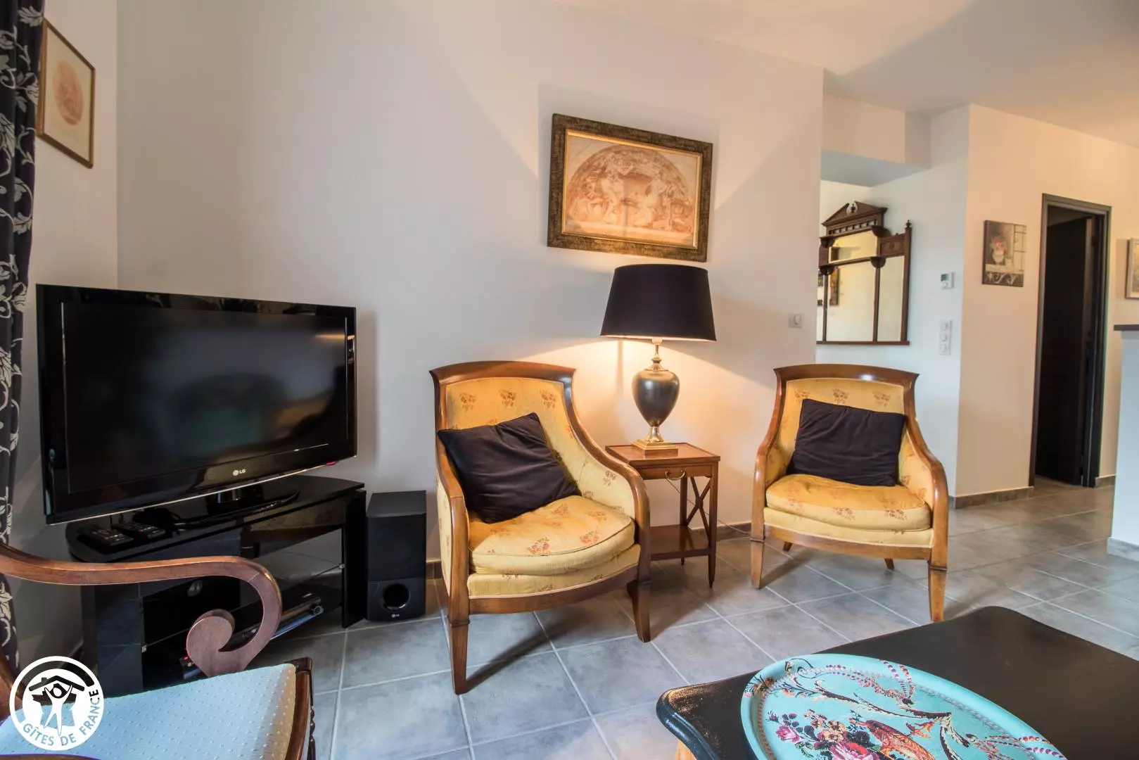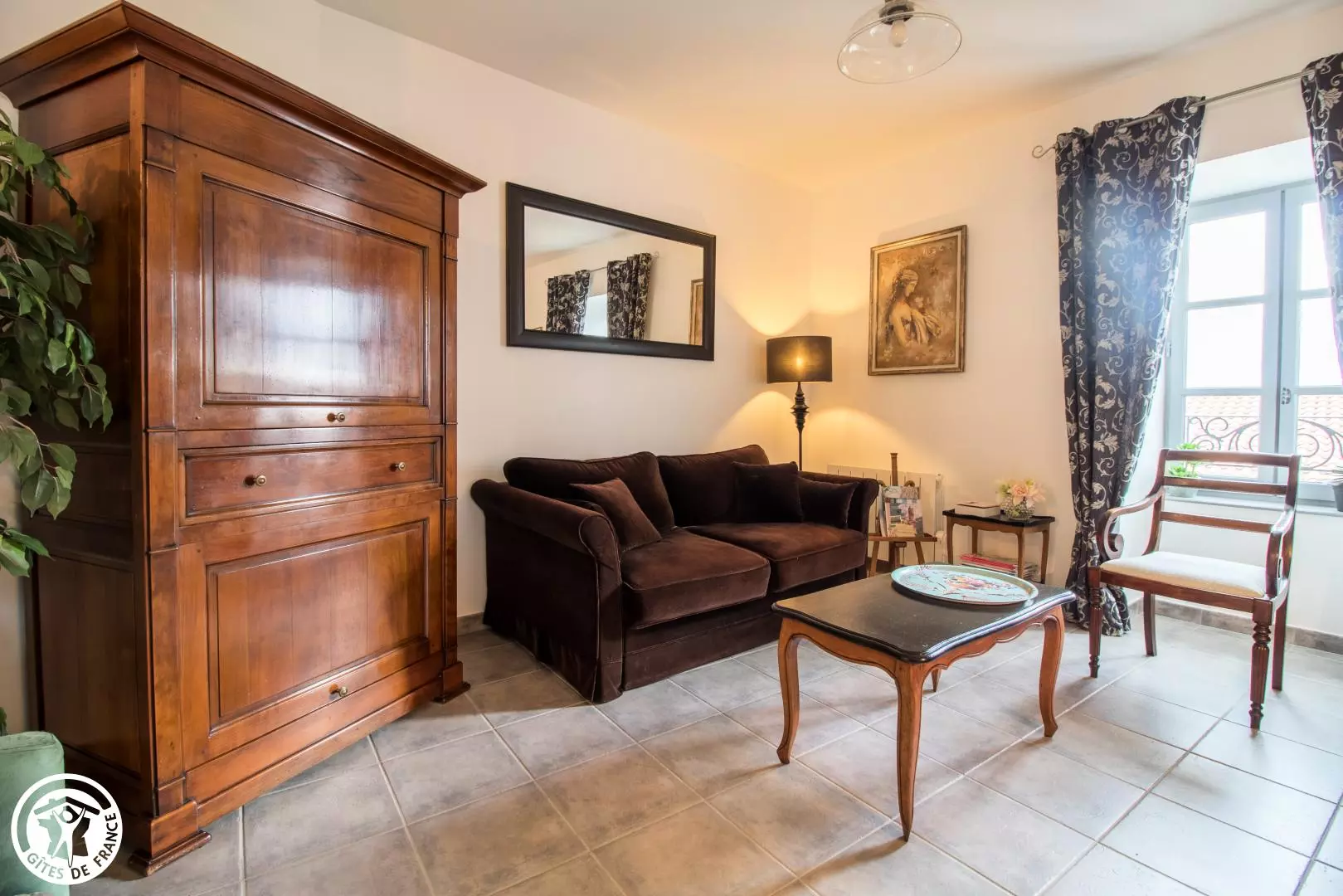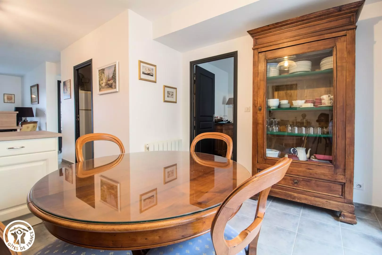 e vie, notamment la salle à manger, la cuisine ainsi que le salon (couchage pour deux personnes supplémentaires possible dans canapé convertible 140). Pour finir, vous trouverez : deux chambres avec un lit de140, un WC indépendant et une salle d'eau. Aux beaux jours, vous apprécierez la terrasse ombragée de plain-pied accessible depuis la salle à manger avec son jardin en terrasse et clos. Vous disposerez d'un stationnement privatif couvert dans un grand cuvelage vigneron (location de vélos possible) avec accès direct au gîte. Pour votre confort, ce gîte propose du TOUT INCLUS (lit fait à l'arrivée, linge de toilette et de table fournis).