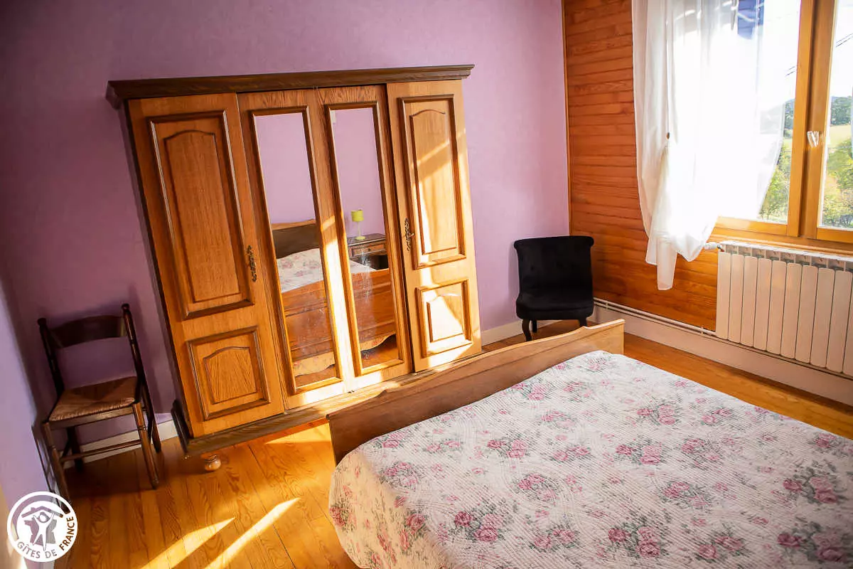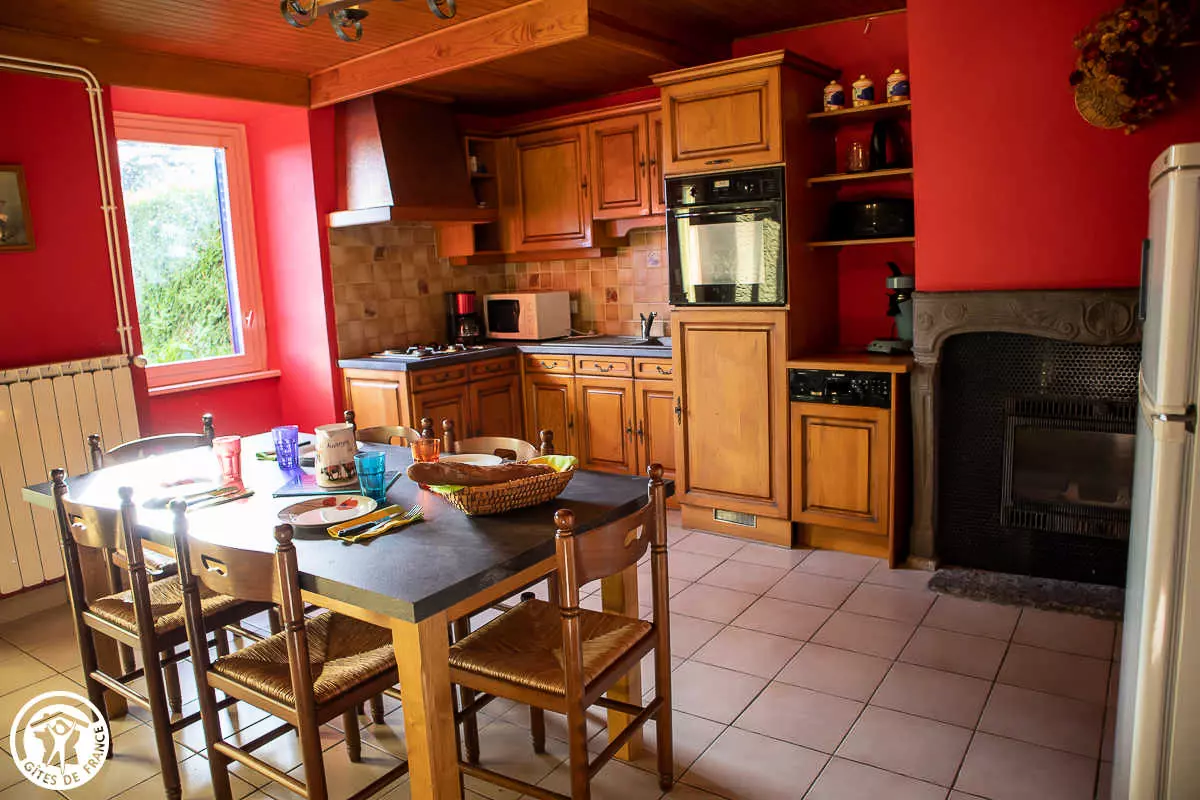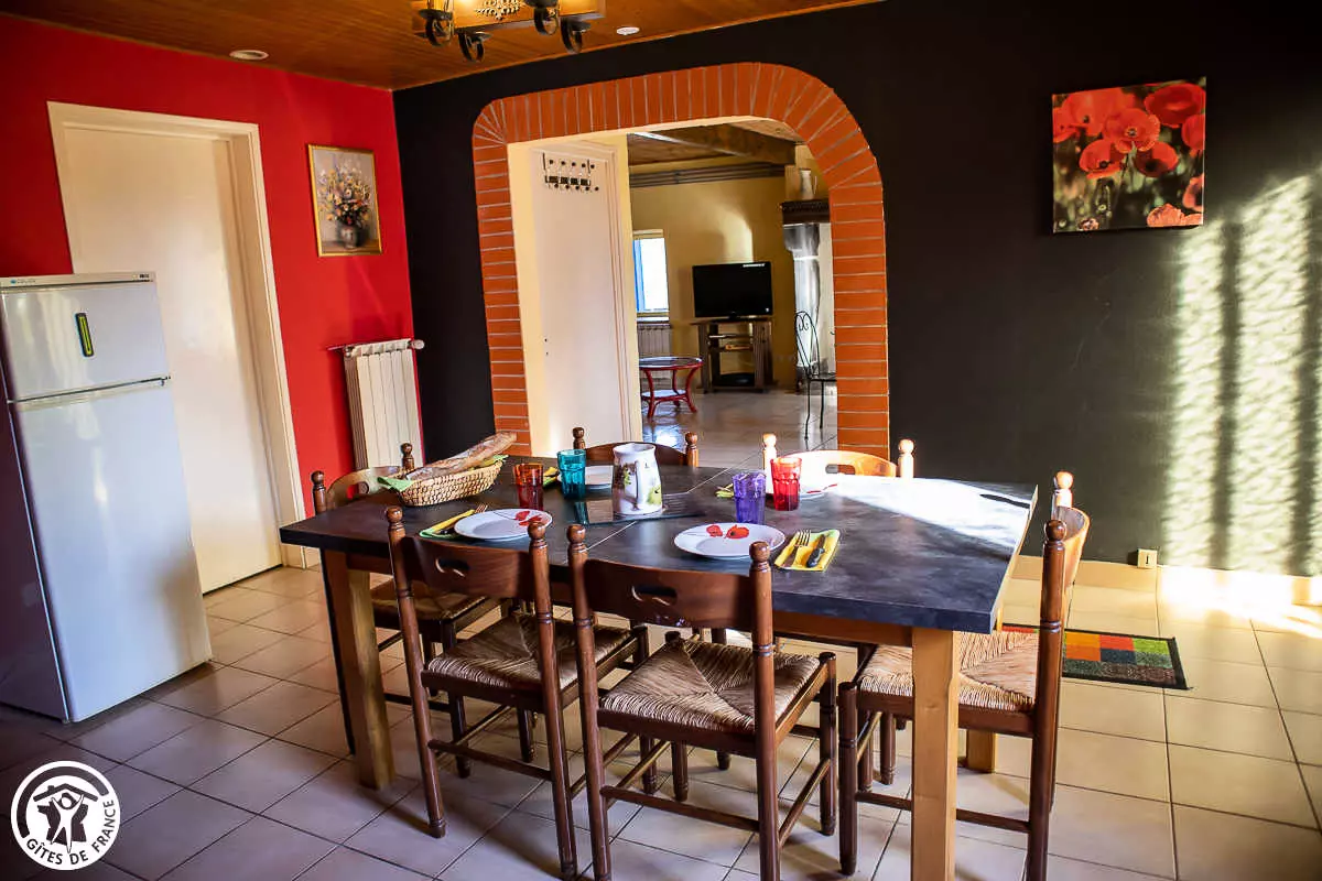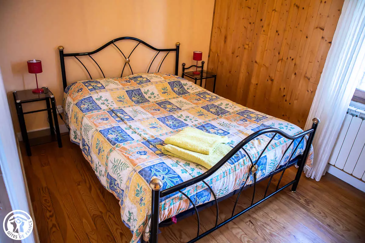Ce gîte vous accueille dans un décor unique : la chaîne des Puys s'étale en toile de fond. Le géant des Dômes règne sur le paysage. Maison mitoyenne avec une habitation permanente. Gîte au rez-de-chaussée et 1er étage. Au rez-de-chaussée : -un séjour avec véranda, salle à manger/coin cuisine