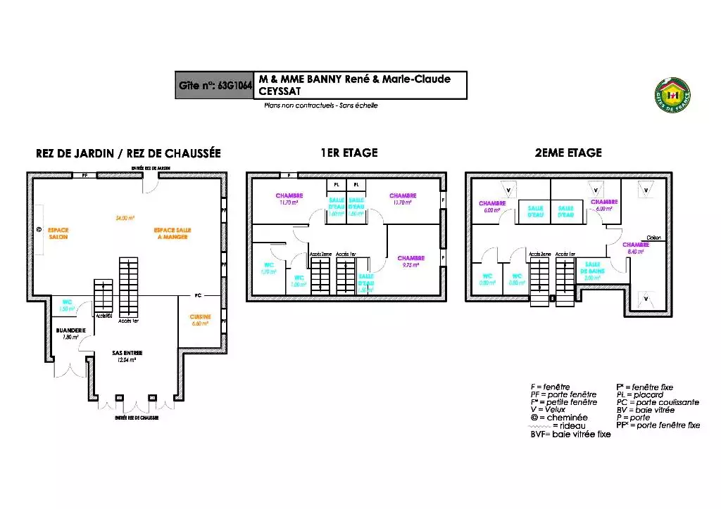 indépendants. Au 2ème et dernier étage mansardé, deux chambres avec un lit 90 chacune et une chambre avec 2 lits 90, deux wc indépendant. Pour plus de confort, chaque chambre dispose d'une douche et d'un meuble vasque privatif. Chauffage électrique et gaz inclus. Terrain attenant clos. Wifi accessible uniquement en salle d'accueil. Possibilité arrivée 16h le vendredi. Pas d'enterrement de vie de garçon ou jeune fille.