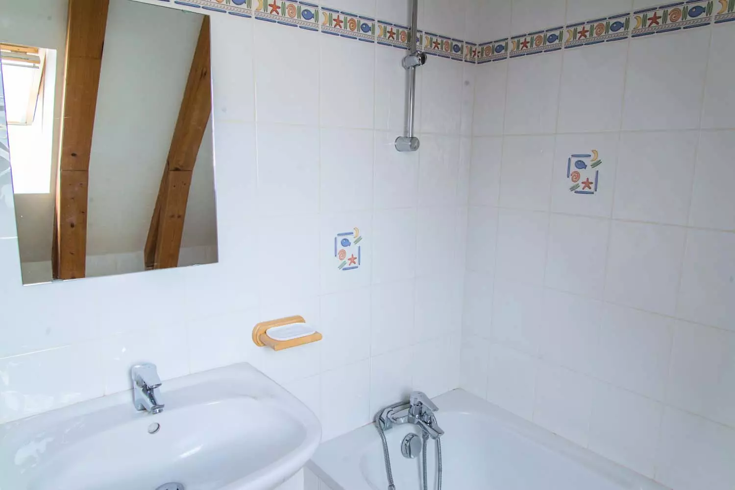 Au 1er étage : grande pièce mixte composée d'un espace détente (TV) et de jeux, 1 lit 1 place et 2 alcôves (1 lit 2 places), salle d'eau et WC.