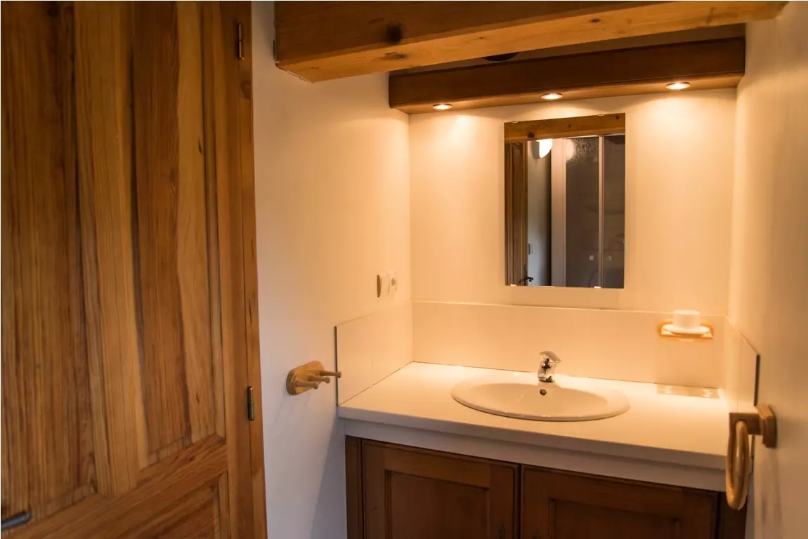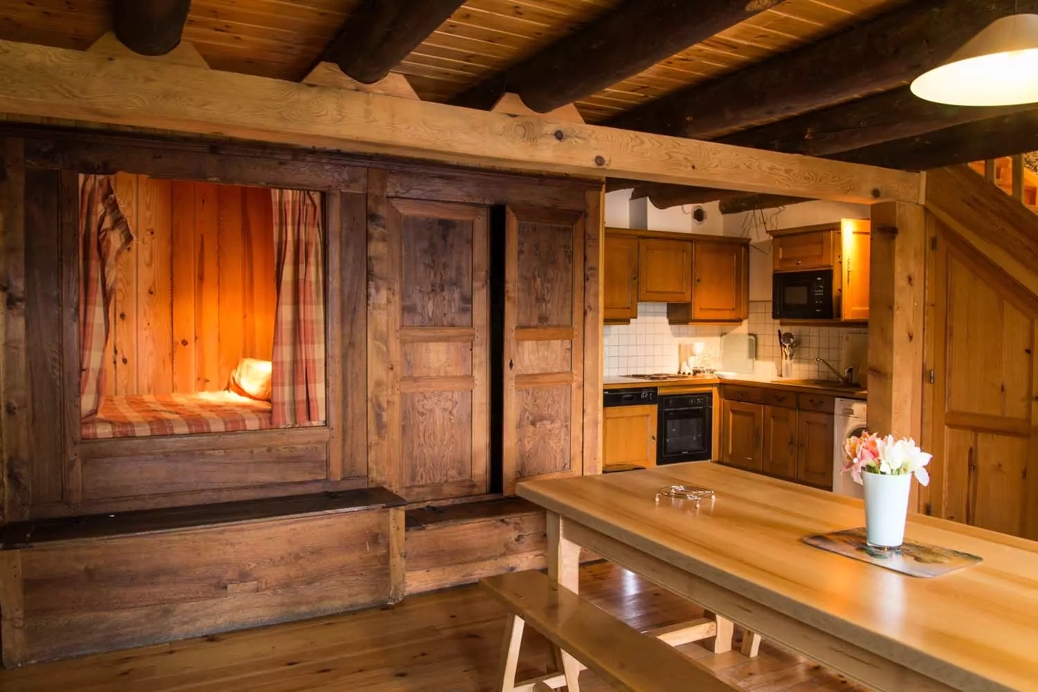 Au rez de chaussée : grande pièce commune (grande cheminée granit avec insert), coin cuisine (congélateur, micro-ondes, lave-linge, lave-vaisselle), vestiaire mural très spacieux et un lit alcôve 2 places.