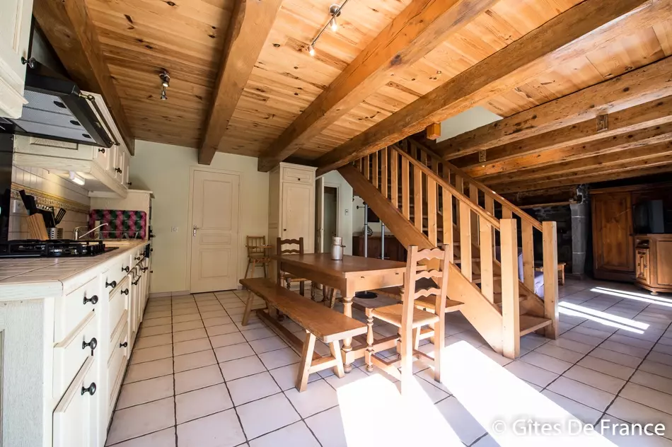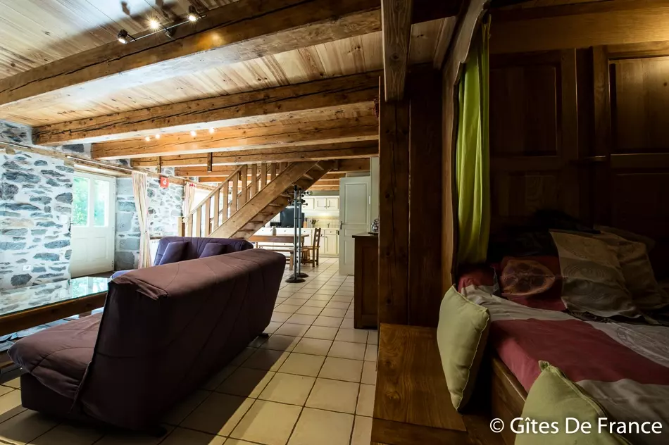 Niché sur les flancs imposants du Massif du Sancy, le gîte La Baniu à Picherande séduit par son ambiance sereine et son emplacement idéal à proximité des pistes de ski de fond invite à l'aventure hivernale, tandis que les sentiers de randonnée environnants révèlent la beauté naturelle de la région tout au long de l'année. Ancienne ferme, restaurée avec soin, cette résidence trouve sa place dans un hameau tranquille et préservé, offrant une échappée vers l'authenticité de la vie montagnarde. Le rez-de-chaussée se compose :