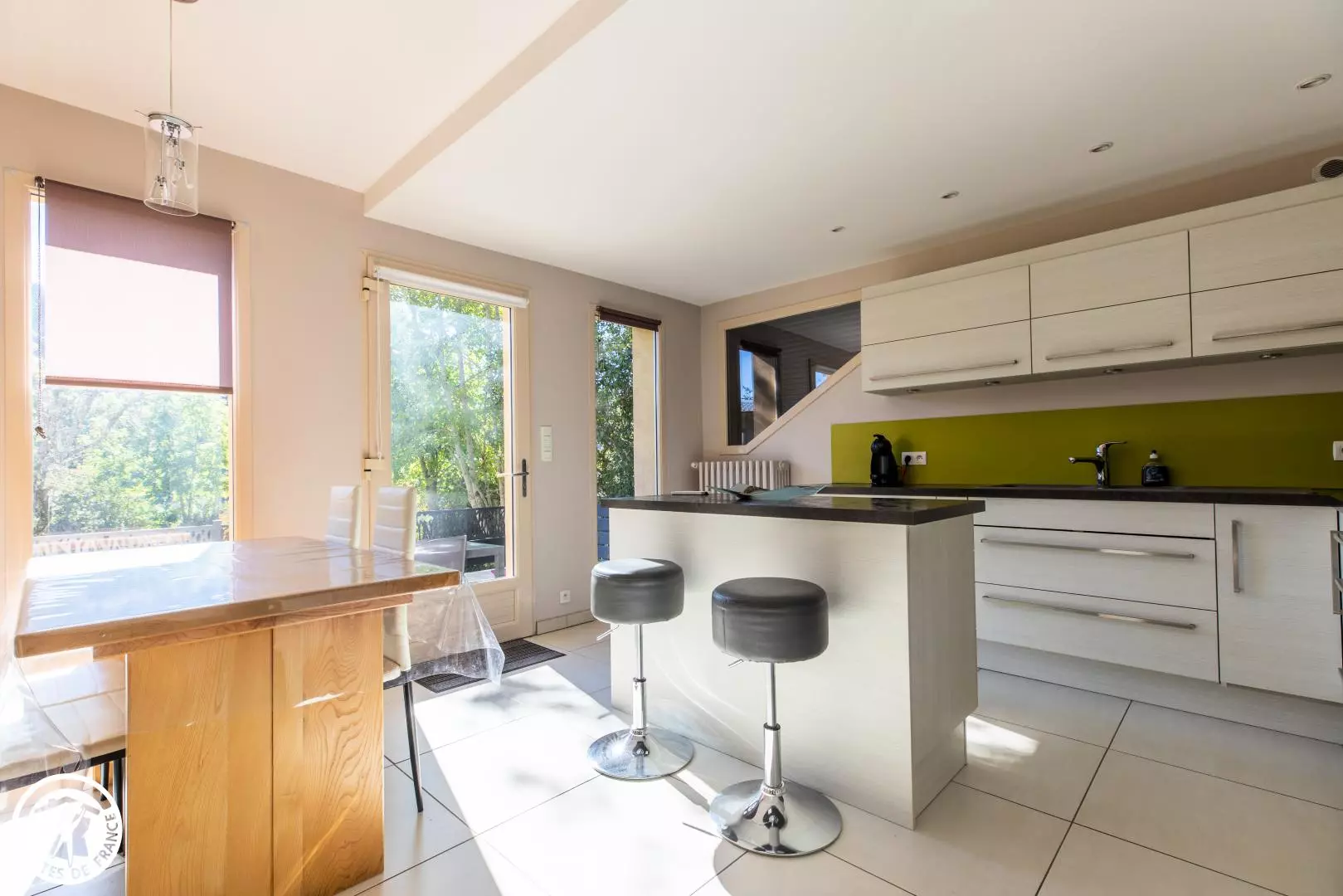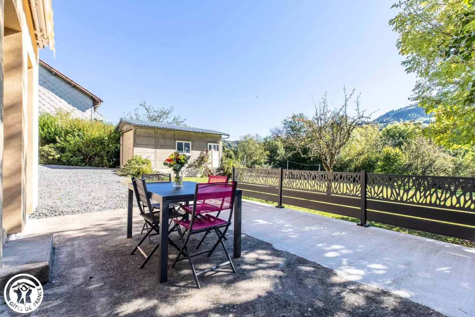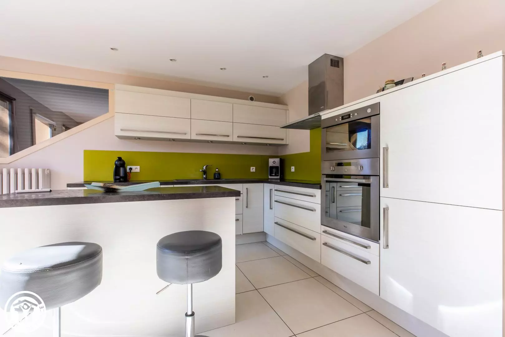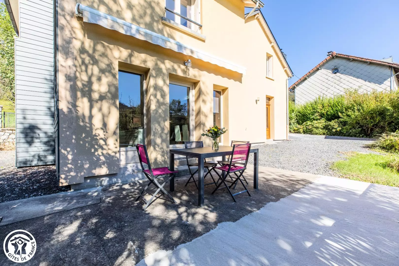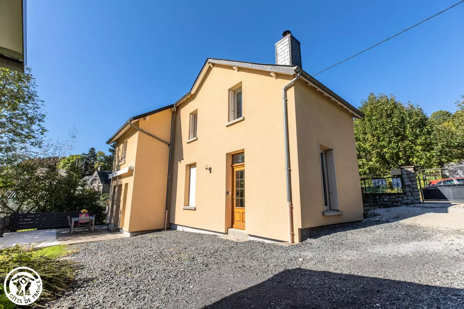Maison indépendante sur deux niveaux. Au rez-de-chaussée : cuisine accessible par deux marches, salon avec poêle à bois, buanderie et salle d'eau/wc. Au 1er étage : 3 chambres avec chacune un lit 140x190 et grands dressings privatifs. L'une des chambres est en enfilade, salle d'eau/wc. Terrain attenant entièrement clos, terrasse, garage avec porte électrique + appentis. Chauffage au fuel inclus dans le prix. Commerces et service à La Bourboule à proximité.