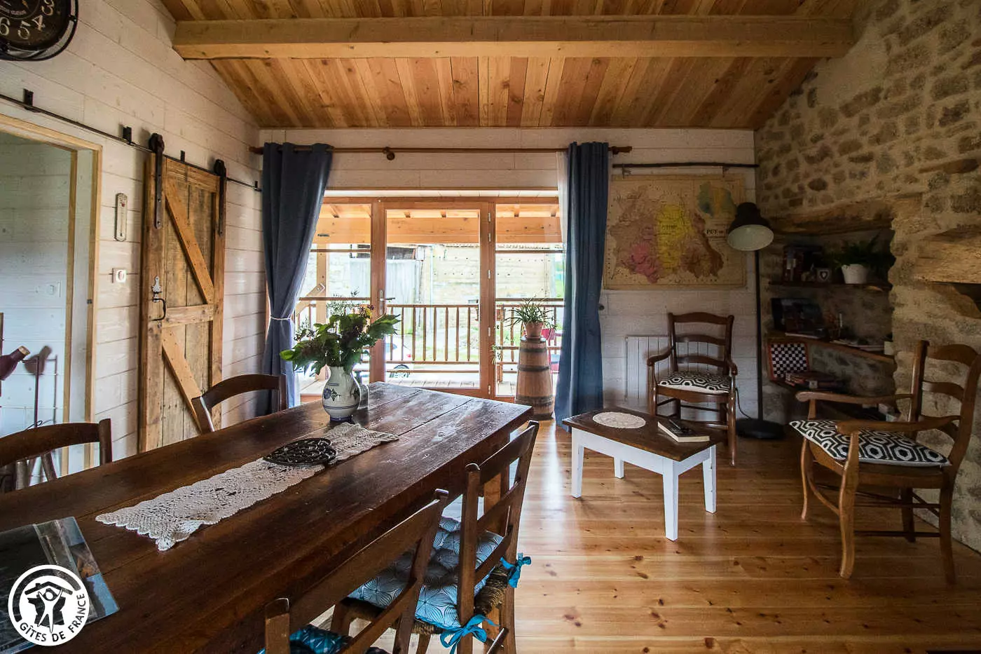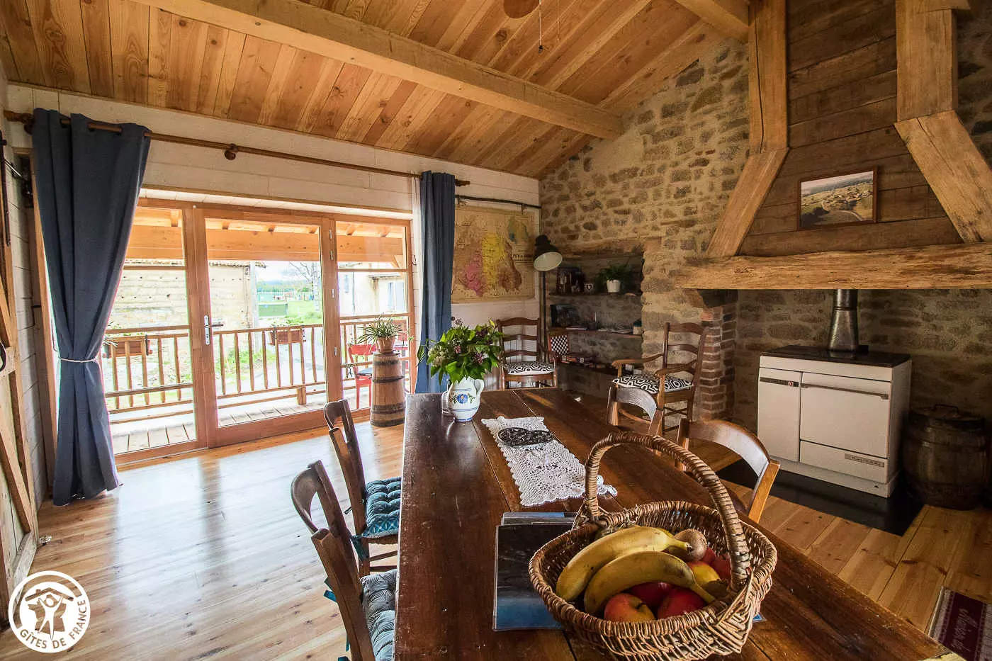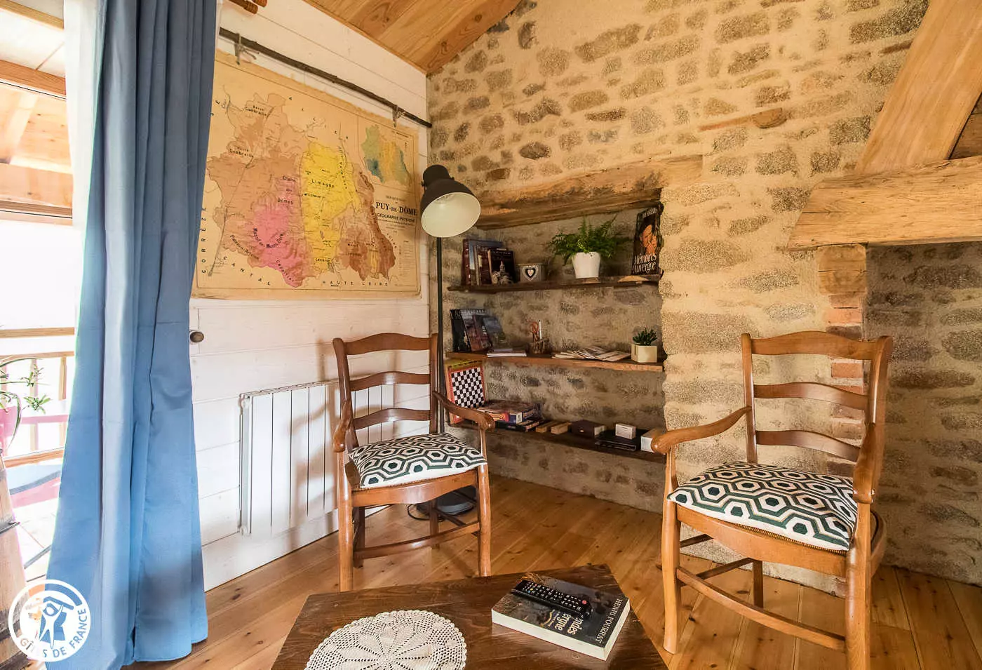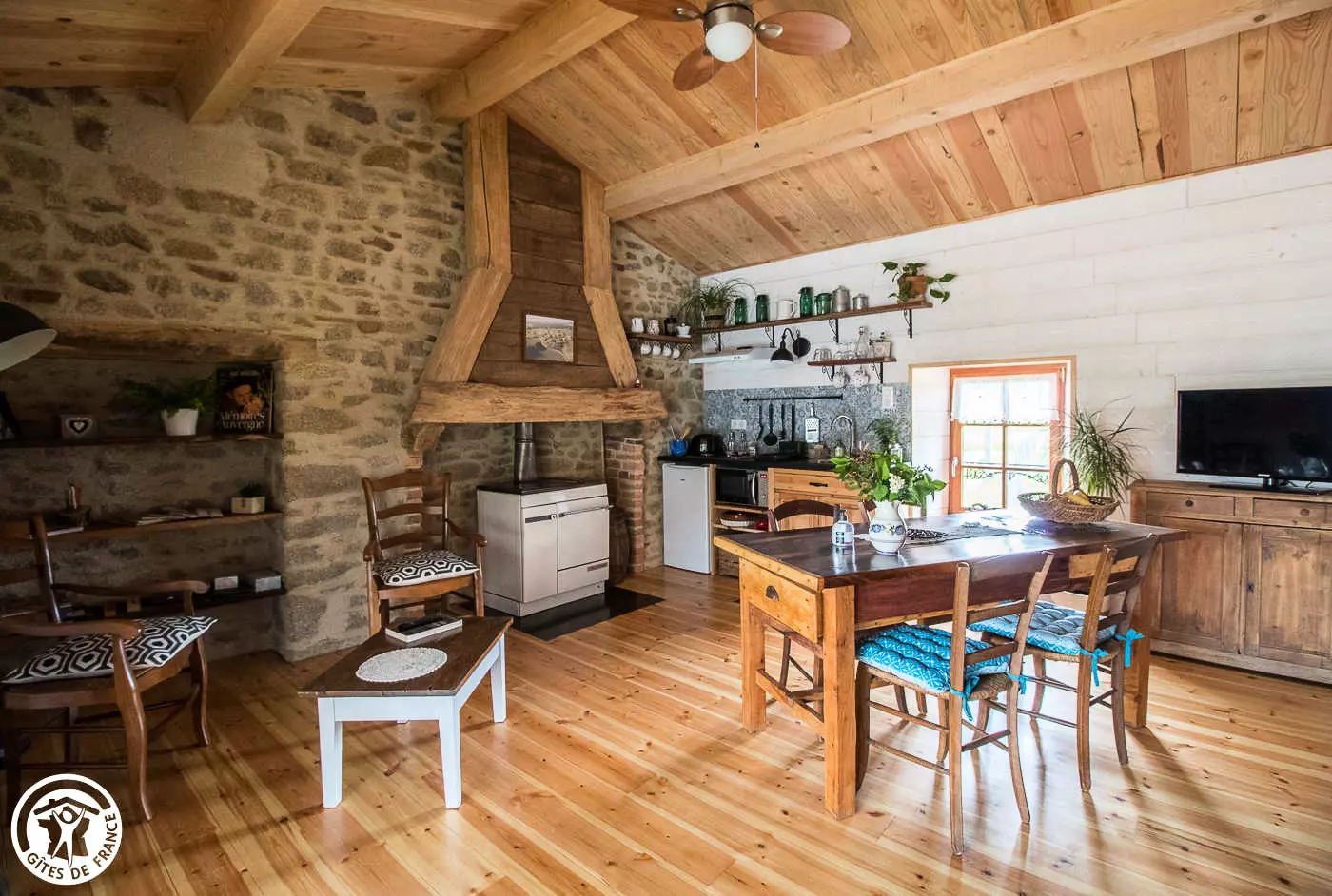 Besoin de vous ressourcer à deux ou avec votre tout-petit ? N'hésitez plus et foncez à La Fenière. Lorsqu'on rentre dans ce gîte, on se sent bien tout de suite. Les propriétaires l'ont rénové avec beaucoup de goût et vous serez séduit par leur accueil très sympathique et authentique. Le mélange de bois et de pierre avec une décoration soignée vous procure une sensation de bien-être. Les amoureux de nature seront ravis dans ce lieu-dit calme, avec les chèvres des propriétaires dans le pré voisin. Ce gîte a également l'avantage d'être situé dans le Parc Naturel Régional du Livradois-Forez. Vous trouverez des activités alentours comme bien sûre la randonnée à pied ou à vélo, mais aussi : location de trottinettes et VTT électriques à Mauzun, la visite du Château d'Aulteribe à Sermentizon, une balade dans les rues de Courpière avec ses vieilles façades et son église romane, flâner dans Billom petite cité au centre médiéval plein d'attrait et de charme… N'hésitez pas à demander aux propriétaires qui se feront un plaisir de vous conseiller. Le gîte, sur deux niveaux, est composé : au rez- de- chaussée d'un local fermé ( avec lave linge, barbecue, tri sélectif,... ); et si vous êtes motard, ou cycliste, vous pourrez y mettre vos bolides à l'abri . A l'étage: une pièce à vivre avec cuisine ouverte sur salle à manger et espace détente avec un canapé . Une chambre avec un lit 160 et une salle d'eau. Vous profiterez de la terrasse au 1er étage et du terrain au rez-de-chaussée. Le chauffage électrique est inclus dans le prix. Les commerces et services les plus proches sont à Courpière à 8 km.