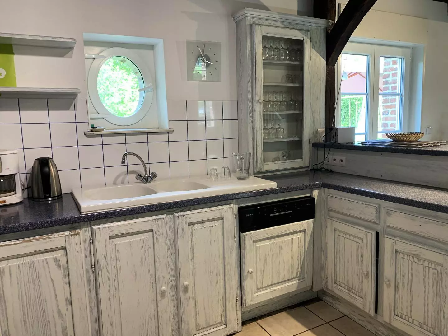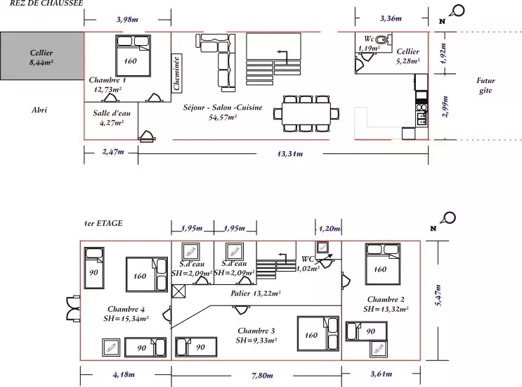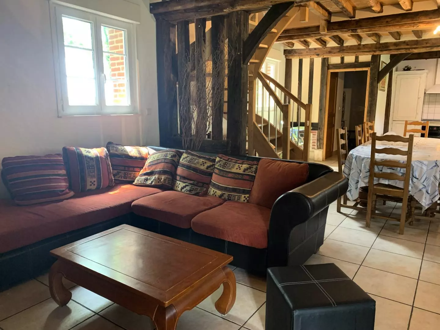 Rez-de-chaussée : - séjour-salon avec belle cheminée, TV, - coin cuisine (lave-vaisselle, micro-ondes),