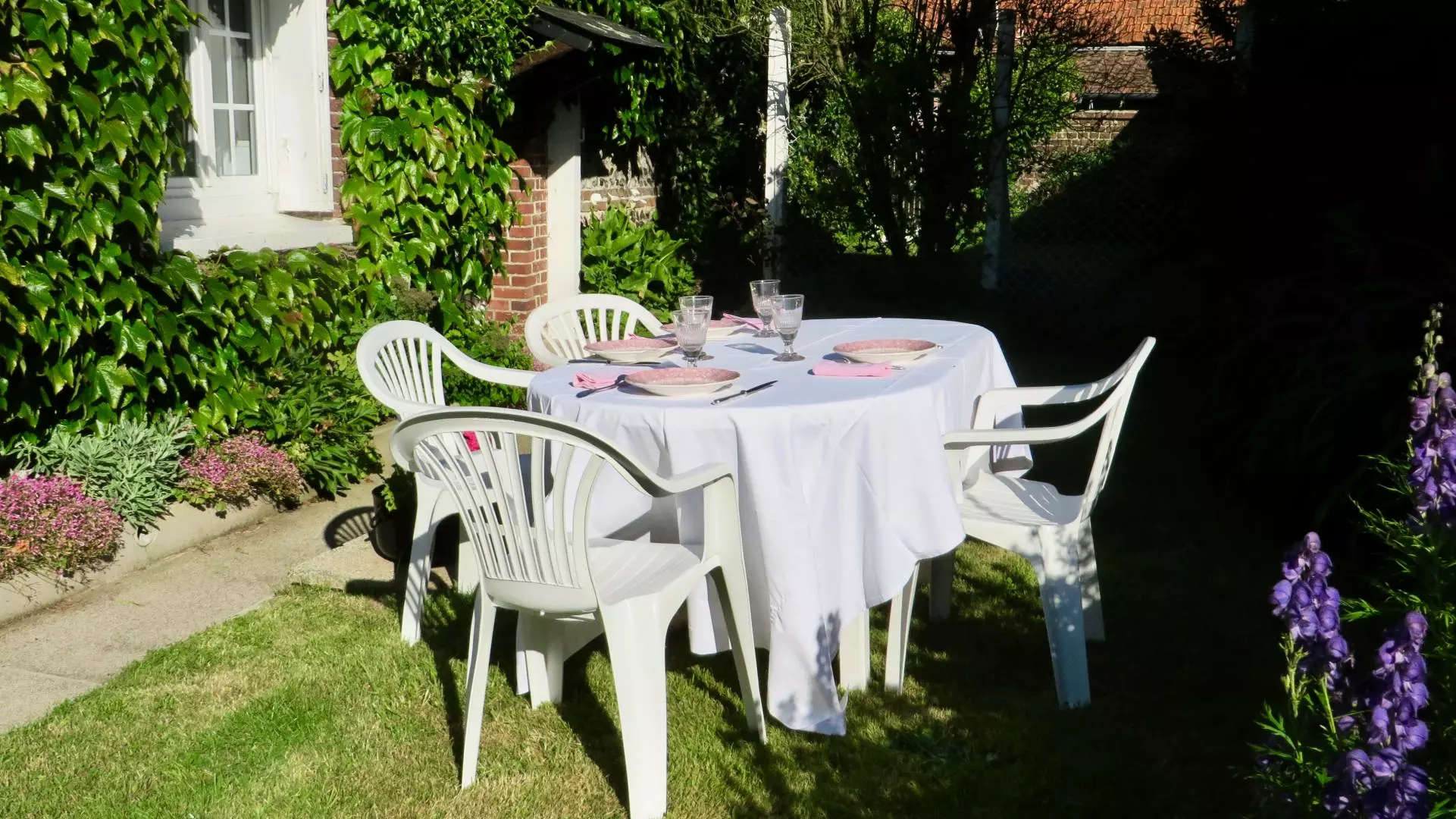 CHAUFFAGE CENTRAL AU GAZ INCLUS. Electricité comprise. Forfait ménage et location de linge possibles. Ancien corps de ferme aux abords particulièrement soignés, gîte mitoyen aux propriétaires avec jardin clos privatif (150m²). Grandes promenades le long des falaises, sur le GR 21.