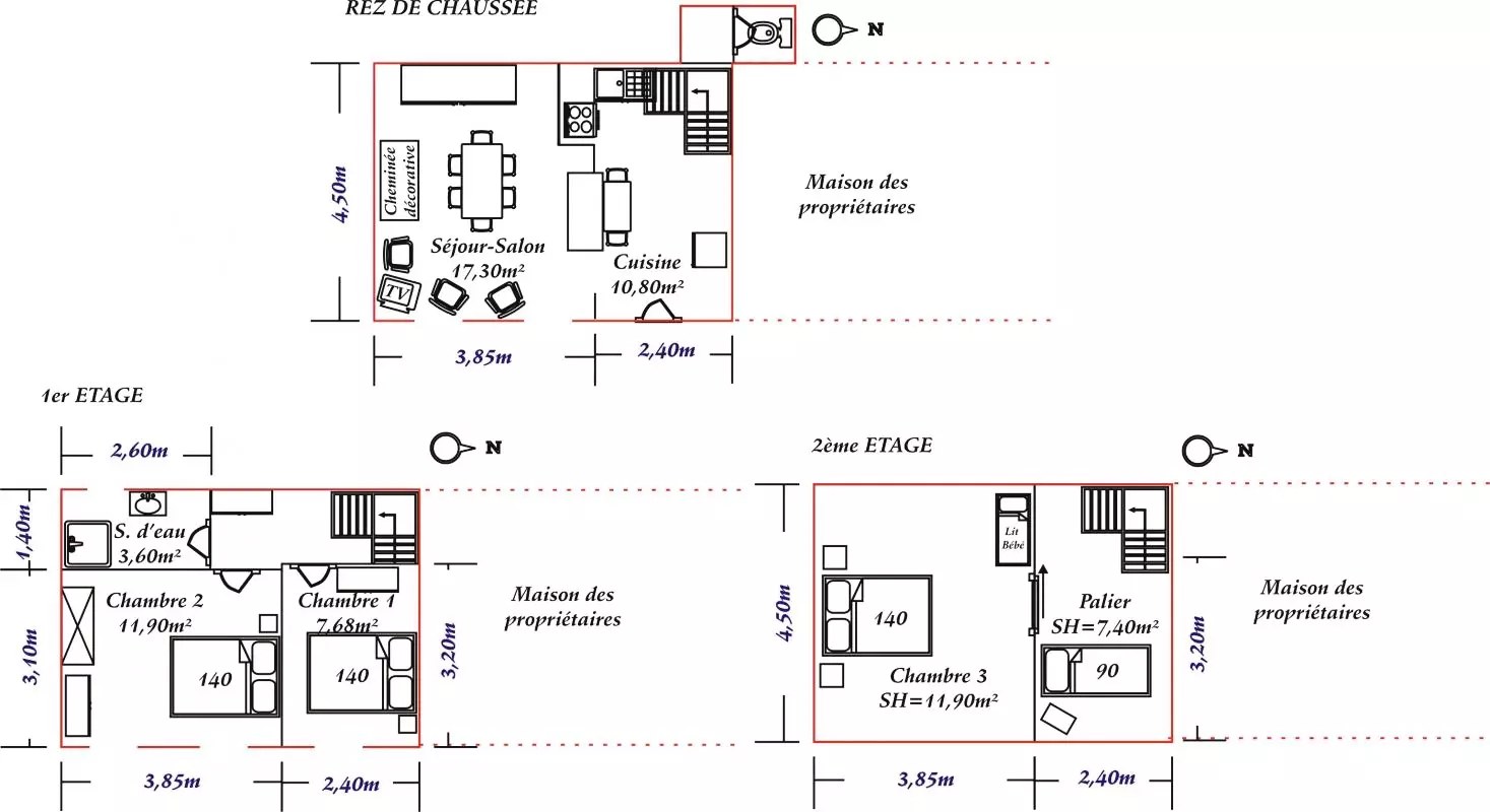Rez-de-chaussée : cuisine ouverte (plaques à induction, mini-four, micro-ondes, lave-vaisselle, lave-linge), petit coin salon et salle à manger (TV) avec cheminée décorative (chauffage électrique), wc. 1er étage : 2 chambres (1 lit 2 personnes), salle d'eau. 2ème étage : 1 chambre (1 lit 2 personnes) avec sur le palier 1 lit d'appoint (90 cm). Supplément chauffage gaz hors juillet/août : 45€/semaine. Location de draps et linge de maison. Forfait ménage possible : 35€. Taxe de séjour. Possibilité de garer les voitures dans la cour fermée. Au pied de la plage (50m), au coeur d'Yport, charmante station balnéaire qui a inspiré de nombreux peintres impressionnistes. A 15 mn d'Etretat et à 7 km de Fécamp, gîte mitoyen à la maison des propriétaires offrant une vue sur la mer depuis la cour intérieure équipée d'un salon de jardin (barbecue électrique). A proximité immédiate du gite : espace public de détente avec bancs et vue sur mer. Tous commerces accessibles à pied ainsi que le GR21 pour les randonneurs.