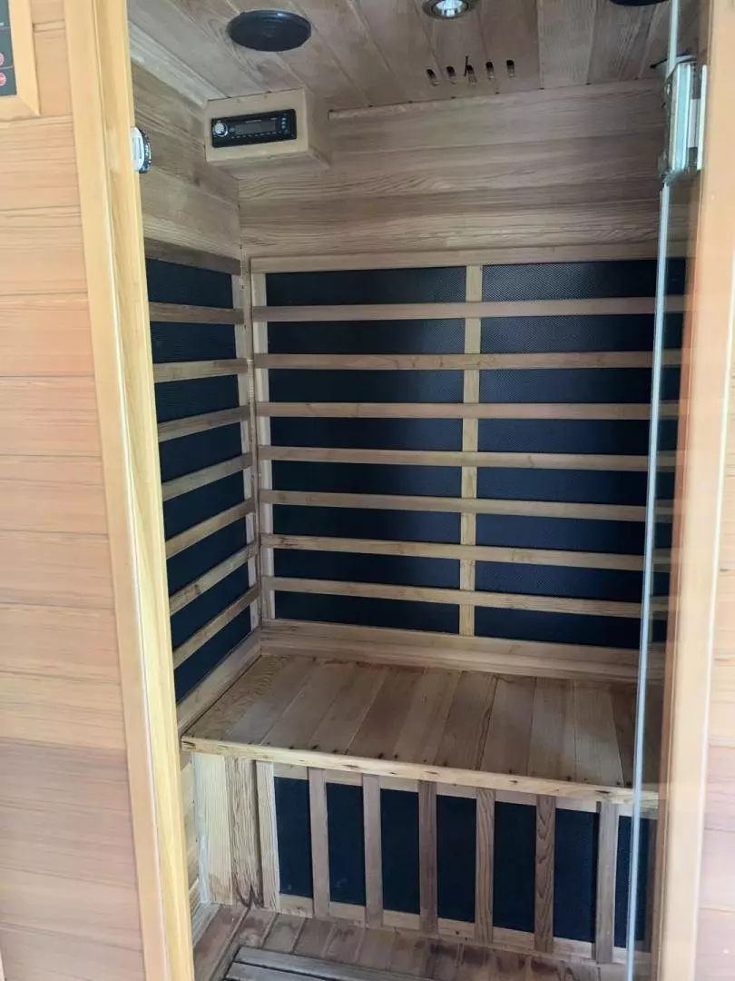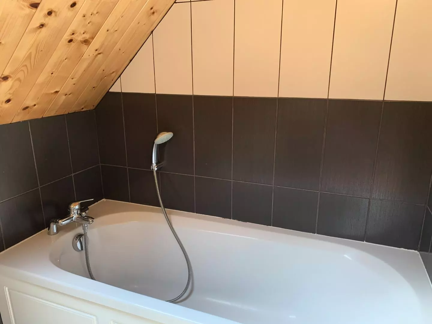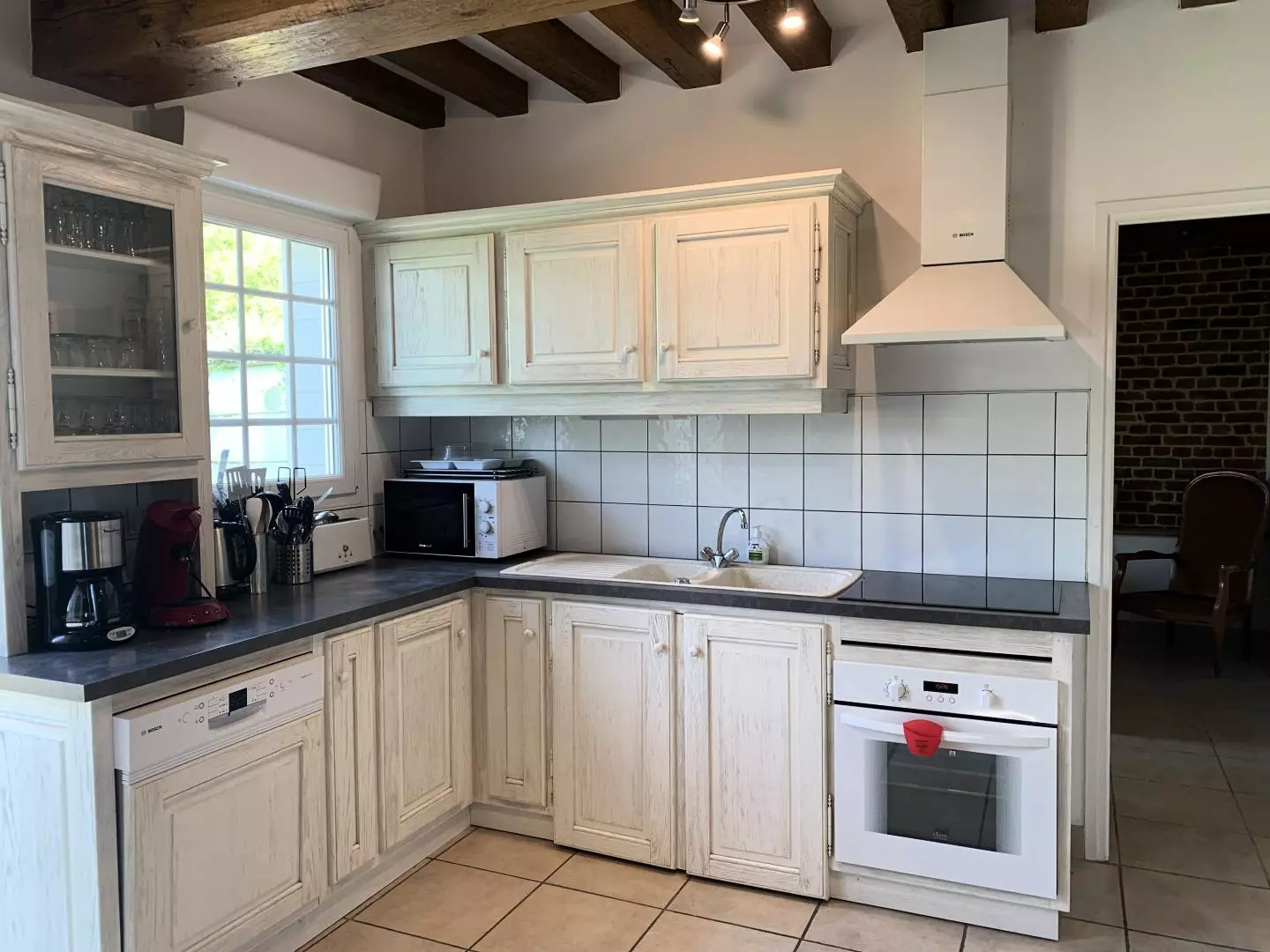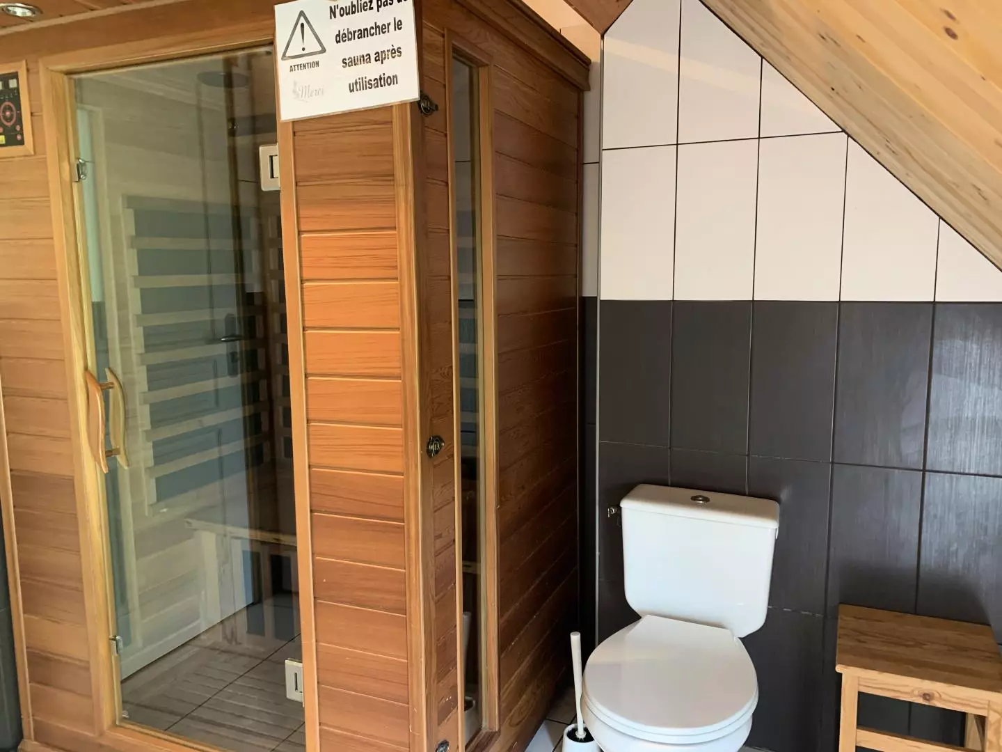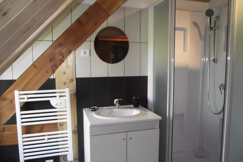 Rez-de-chaussée : - cuisine (micro-ondes, four, congélateur) ouverte sur - séjour-salon avec cheminée, TV-DVD, - 1 chambre (1 lit 2 personnes 160x200cm) avec salle d'eau/wc, privative, - cellier (lave-linge, sèche-linge et wc). A l'étage (mansardé) :
