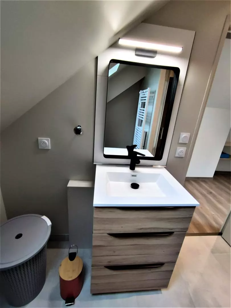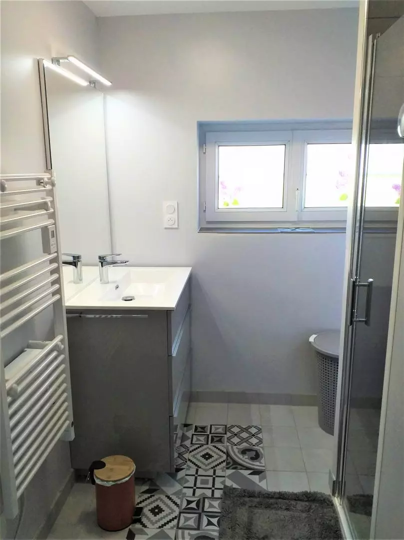 Bienvenue à la Thibaudière ! Situé dans le village de Saint-Pierre-de-Varengeville, à proximité de Rouen, le gîte a été entièrement rénové par les propriétaires avec goût et modernité pour vous garantir un séjour réussi que ce soit en famille, entre amis ou pour un déplacement professionnel. Vous pourrez accéder aux commerces du village à moins de 5 minutes à pied et facilement rayonner entre Rouen et les richesses touristiques des boucles de la Seine. Vous apprécierez le jardin exposé plein sud sans vis-à-vis, la luminosité des pièces et le souci du détail apporté dans chaque pièce. Rez-de-chaussée :