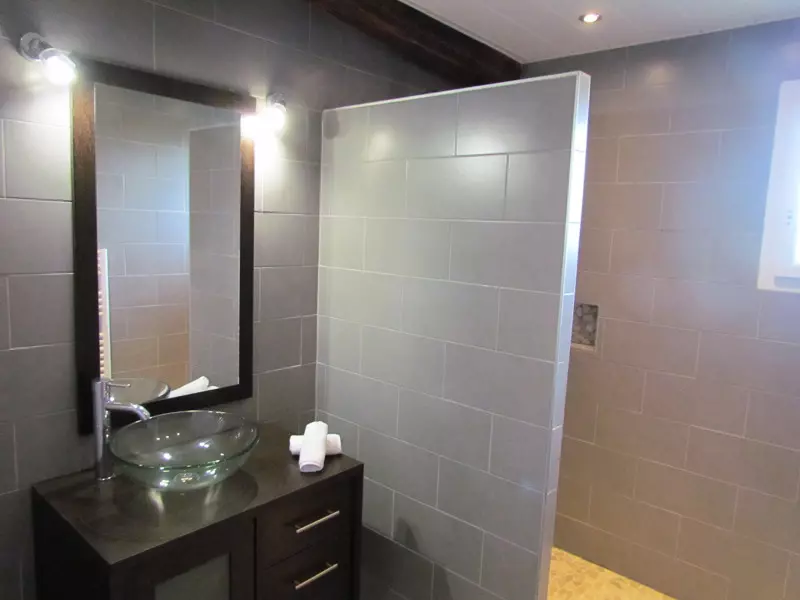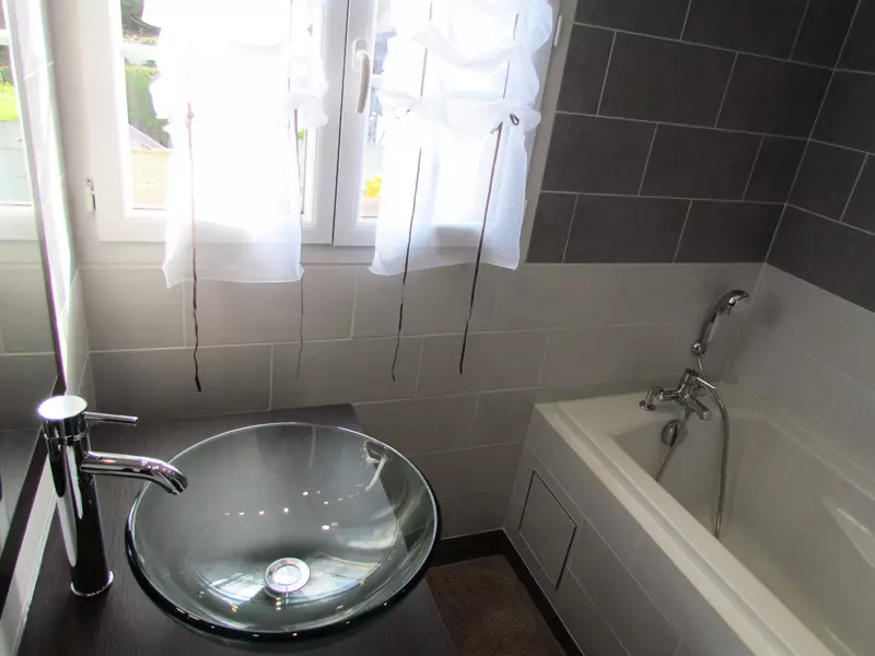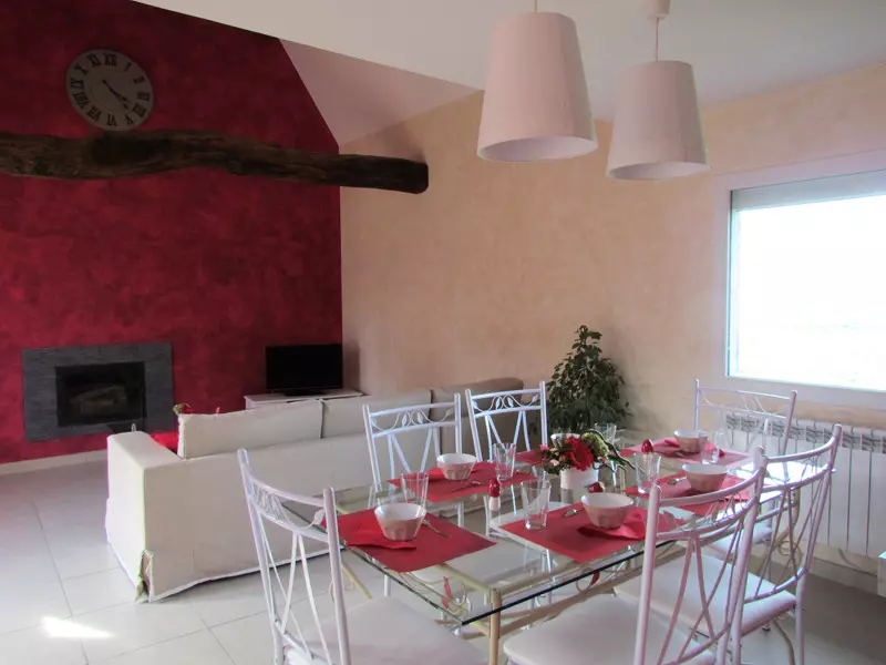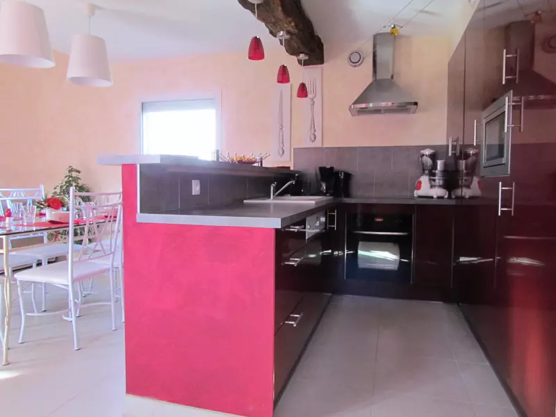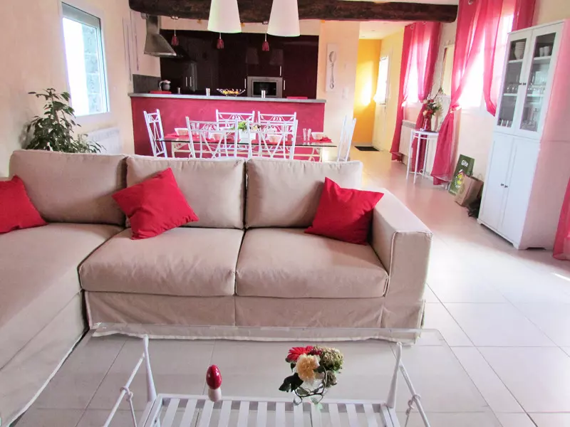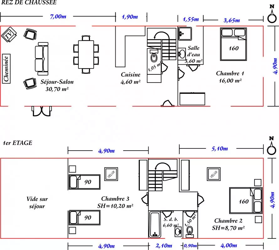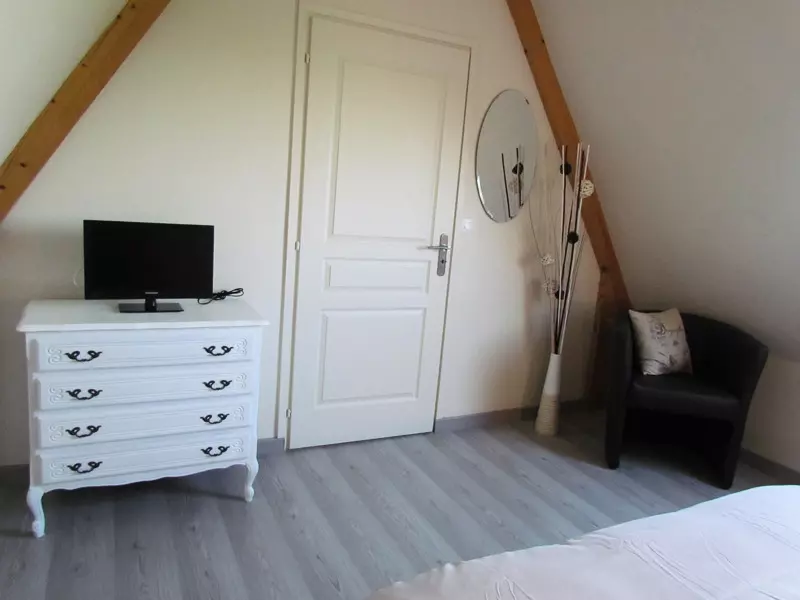 Rez-de-chaussée : - entrée, - cuisine (lave-vaisselle, four, congélateur, micro-ondes, lave-linge, sèche-linge), - séjour-salon avec cheminée, TV avec chaînes internationales (location de films en streaming possible), lecteur DVD, - 1 chambre (1 lit 2 personnes 160x200cm) avec salle d'eau attenante, - wc. A l'étage : - 1 chambre (1 lit 2 personnes 160x200cm), - 1 chambre (2 lits 1 personne 90x200cm), - wc, - salle de bains. Récepteurs TV à LED pour y connecter clé USB ou PC dans salon et chaque chambre.