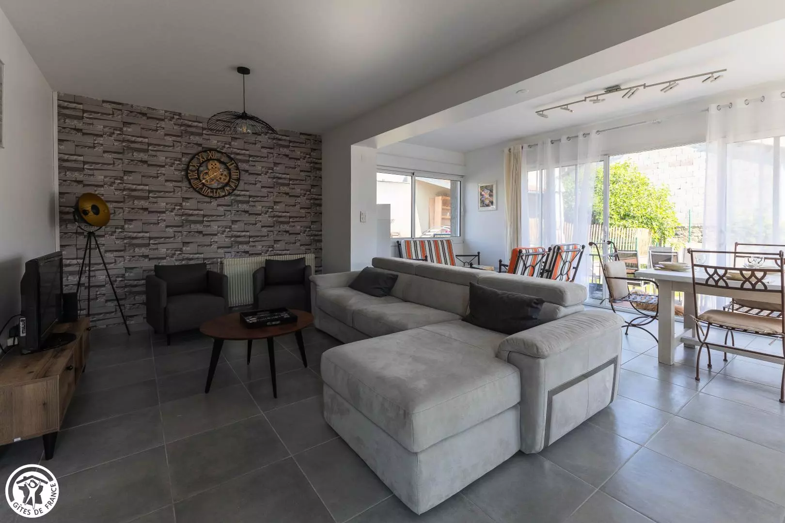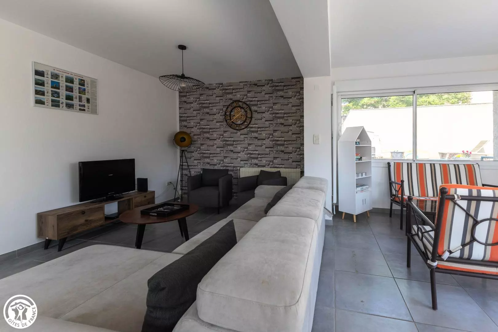 u privative (une marche dans la chambre) -d'un garage pour les vélos et motos avec coin buanderie A l'étage: -d'un séjour très lumineux avec cuisine ouverte