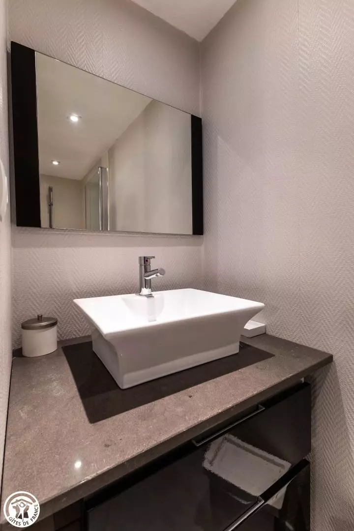 -d'une salle d'eau -d'un WC indépendant Équipement bébé : chaise longue, lit et baignoire. Gîte 63G1361 pour 2 personnes en face