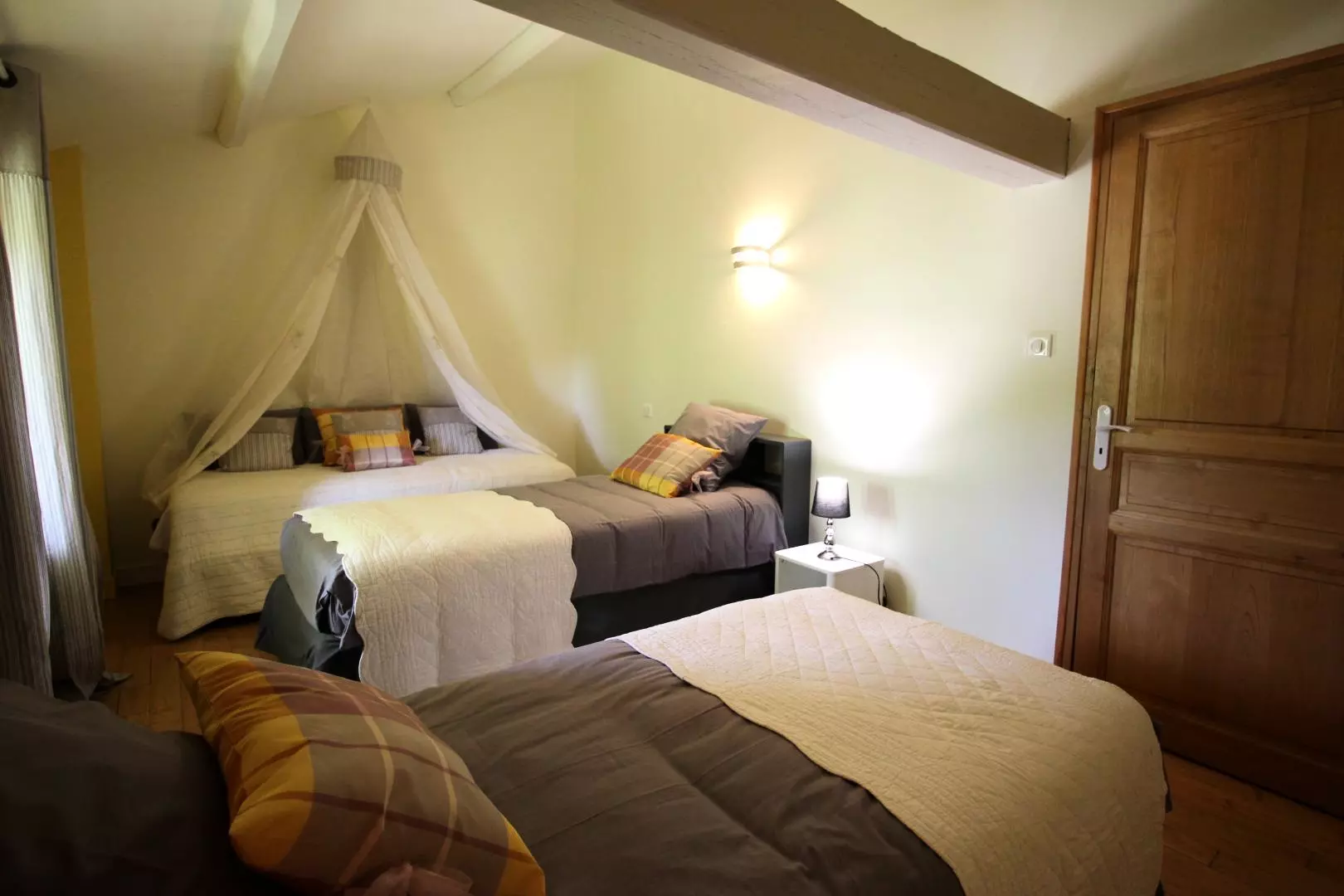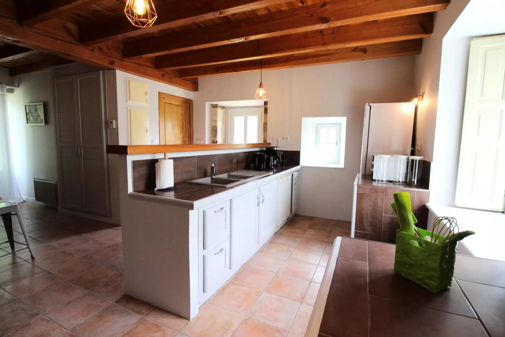 Surface 134 m². Au rez-de-chaussée : le coin cuisine est ouvert sur le coin repas avec un poêle à bois, le grand séjour dispose aussi d'un poêle à bois et d'un espace salon, wc. Du séjour l'escalier mène sur un palier avec 3 chambres (1 lit 140 x 200 cm, 5 lits 90 x 200 cm), salle de bain avec baignoire, double vasque et douche, wc indépendant. Jeux de société. Equipement bébé possible sur demande (lit parapluie, chaise, parc, anneau de bain et matelas à langer). Services raclette, fondue, crêpe-grill possibles sur demande. Sur une propriété forestière de 70 ha avec une belle vue sur les monts de Blond, 2 maisons du 18ème rénovées avec la Fondation du Patrimoine ont été aménagées en gîtes de caractère indépendants. "Le borland", décoré et meublé avec goût et raffinement ouvre à l'arrière sur une terrasse et un terrain indépendants. Les propriétaires habitent sur place et possèdent un petit élevage de chiens griffons, sans nuisance. Balades sur la propriété et sentier de randonnée à proximité. Le lac de Saint Pardoux à 15 km offre baignade, piscine aqualudique avec espace bien être, voile, ski nautique, randonnées, pêche 2ème catégorie (330 ha). Le gîte et son environnement ne conviennent pas aux groupes souhaitant se réunir pour festoyer et faire du bruit. Pas de camping-car sur le site.