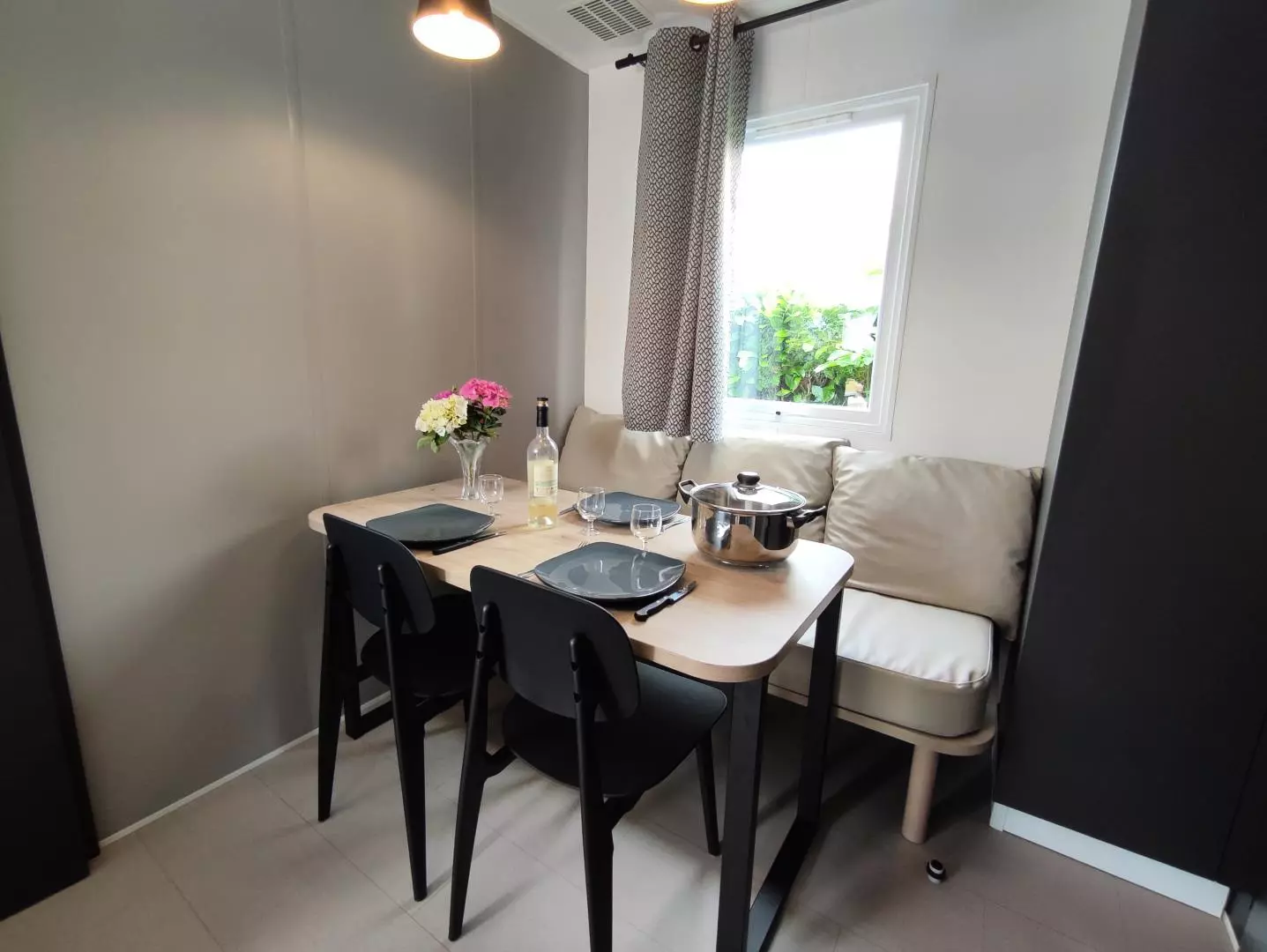 Les mobils-homes sont dans un camping 4 étoiles avec de nombreuses activité à faire sur place. Une piscine est à disposition des vacanciers avec une petite buvette à restauration rapide. Chaque mobil-home présente sa terrasse privative ainsi que son emplacement pour stationner la voiture.