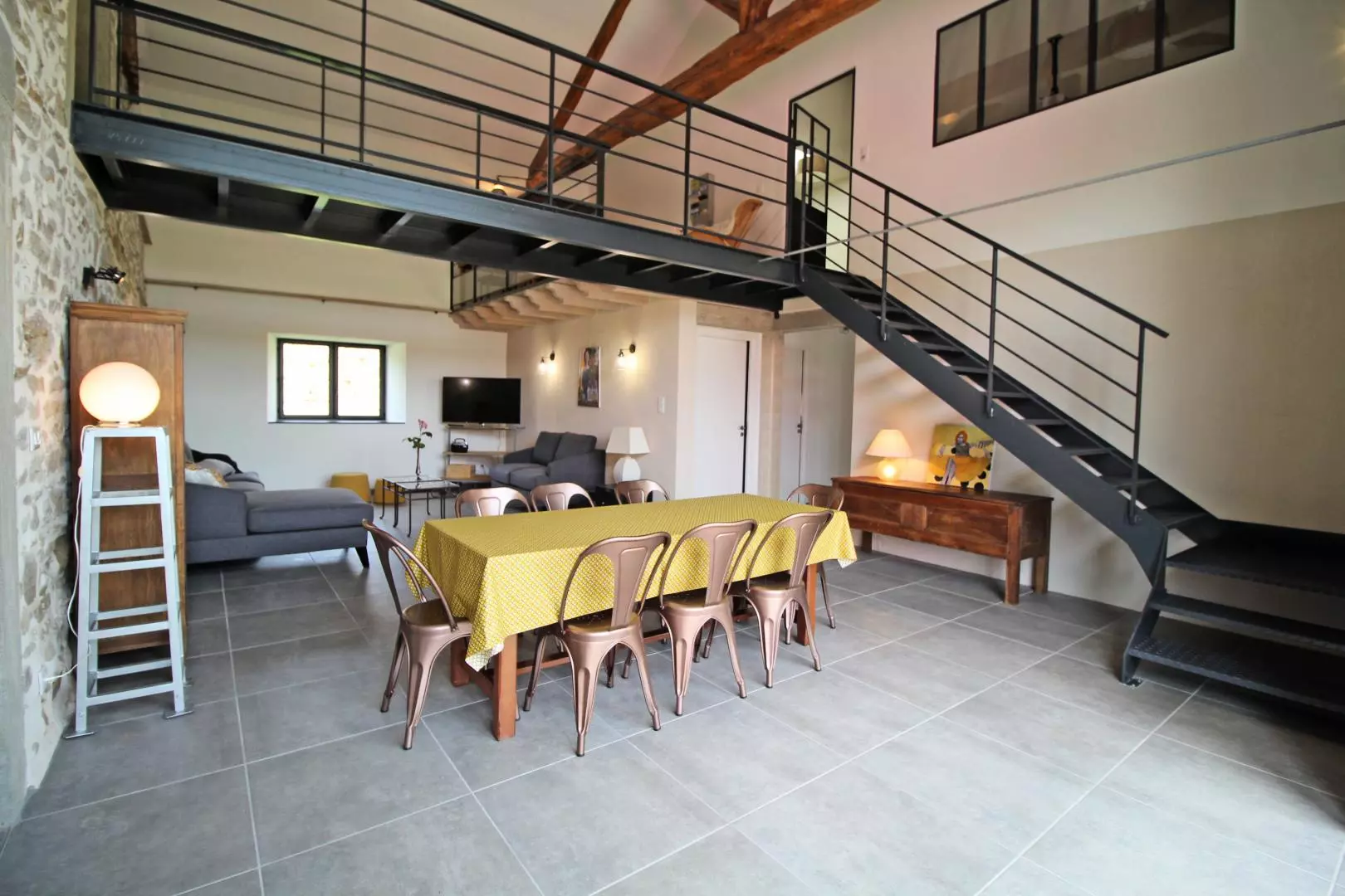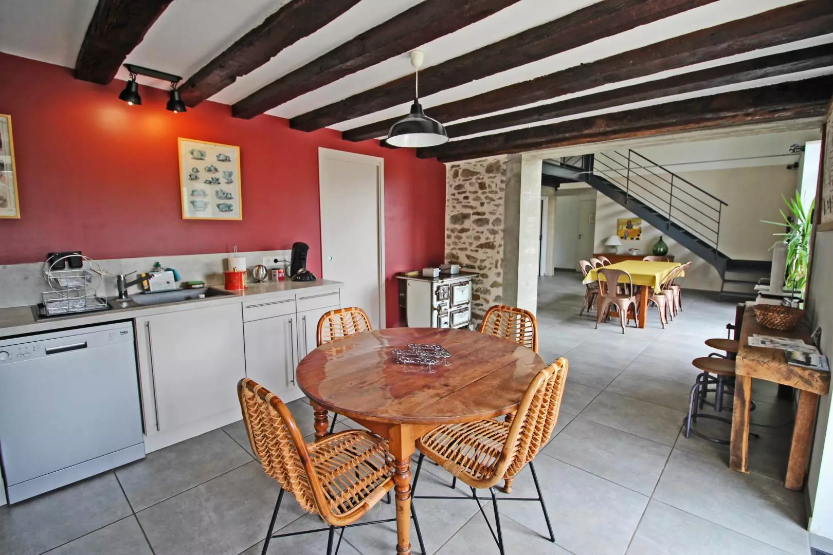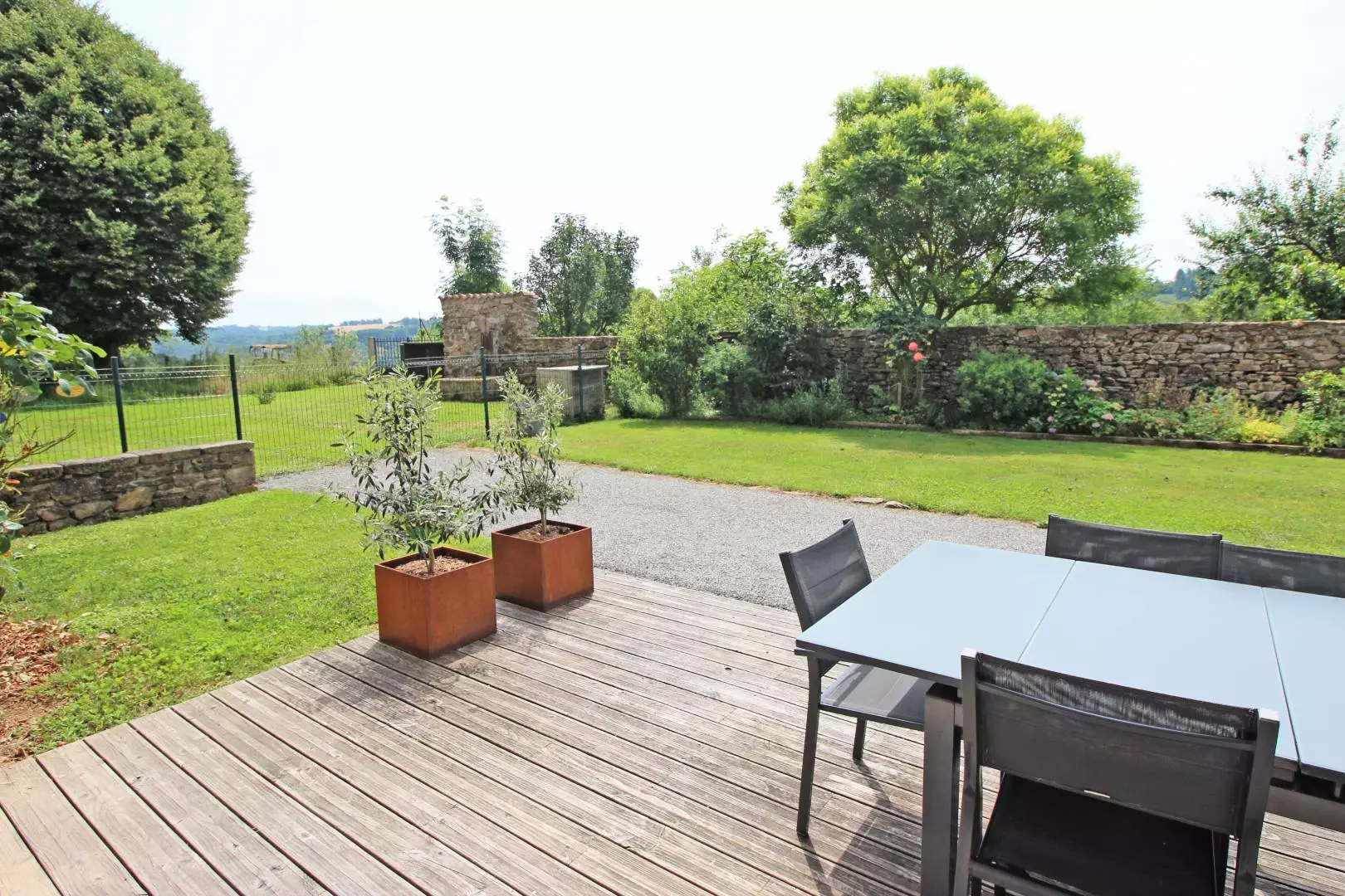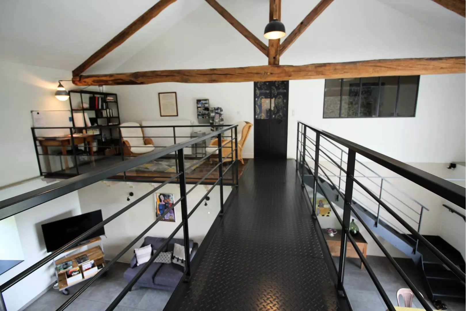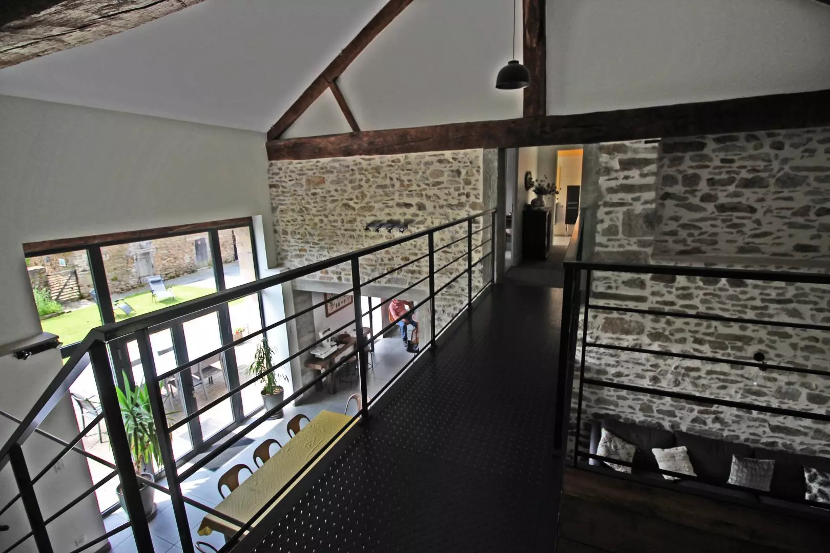 Surface 200 m². Rez-de-chaussée en plain-pied accessible aux personnes à mobilité réduite ; grande pièce principale composée d'une cuisine avec arrière cuisine et buanderie, séjour ouvert par une grande baie sur la terrasse en bois ombragée par un store roulant, et le vaste jardin clos qui entoure le gîte. 2 chambres (1 lit 160 cm, 1 lit 140 cm), salle de bains avec baignoire et douche, wc indépendant, vestiaire. 1er étage : coursive et mezzanine avec coin détente ou espace bureau desservent 2 chambres (1 lit 140 cm et 2 lits 90 cm) avec dressing, salle d'eau, wc indépendant, salle de cinéma équipée d'un vidéo projecteur et de fauteuils de cinéma, prolongée par un espace jeux : foot sur table, nombreux jeux de société et bibliothèque. Terrain de pétanque et parking. Prise pour recharge véhicule électrique (facturation selon conso). Décoration contemporaine, objets chinés, pierre, métal et bois s'harmonisent parfaitement. Le jardin soigné indépendant et sans vis à vis permet détente et repos au cœur du petit hameau. Situé à 30 mn de Limoges, 20 mn de Saint Leonard de Noblat, la belle médiévale, et dans une campagne verdoyante et boisée où chemins de randonnée et rivières invitent à la découverte d'une nature préservée. Pour les pêcheurs un local pêche est disponible le Taurion est à 200 m à l'issue d'une jolie promenade sur un chemin forestier.