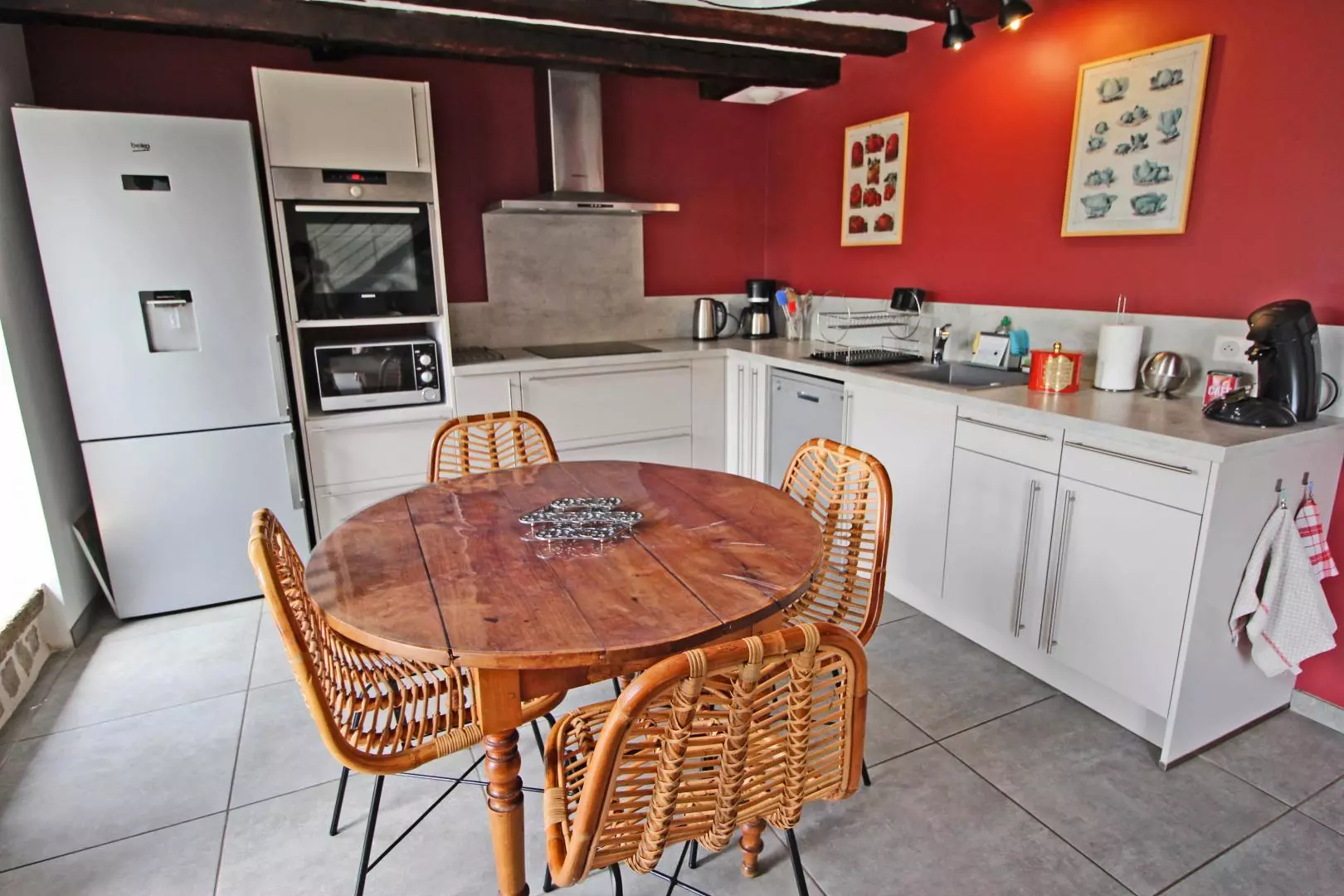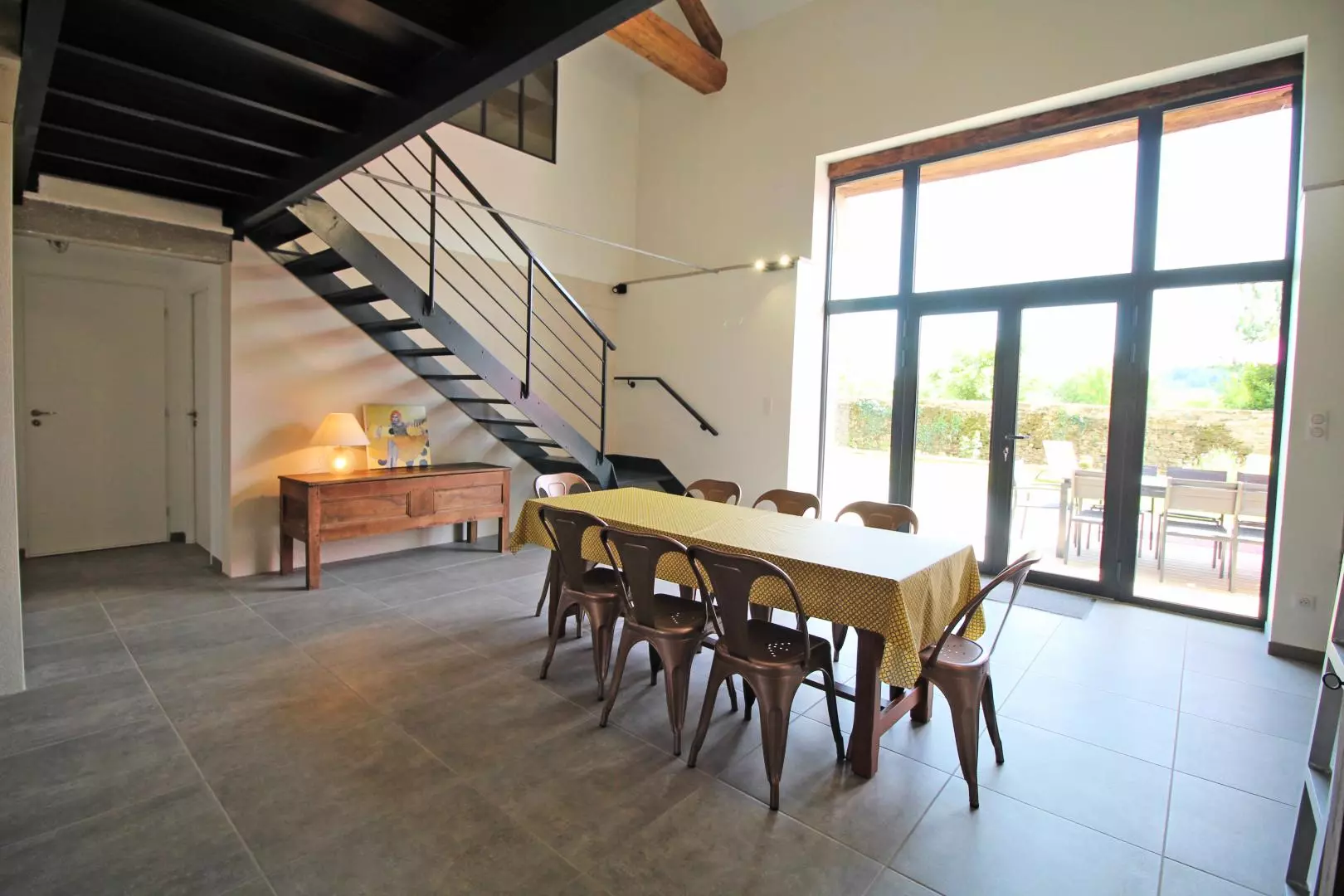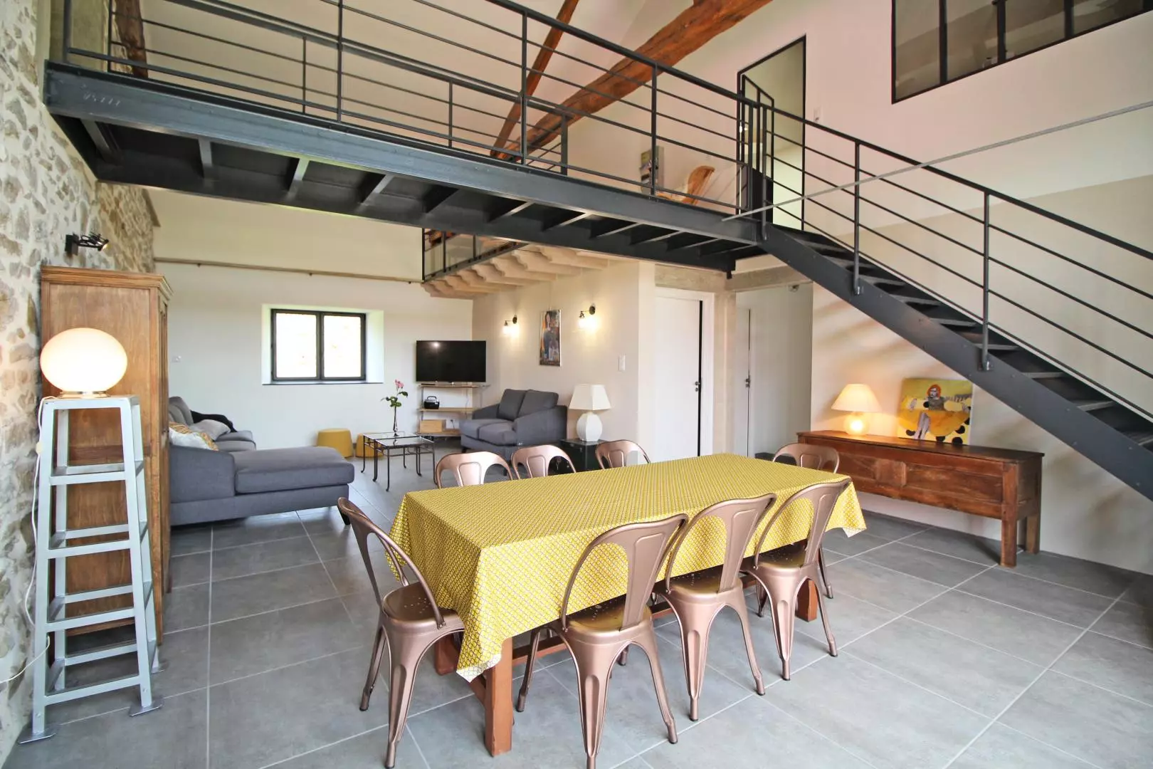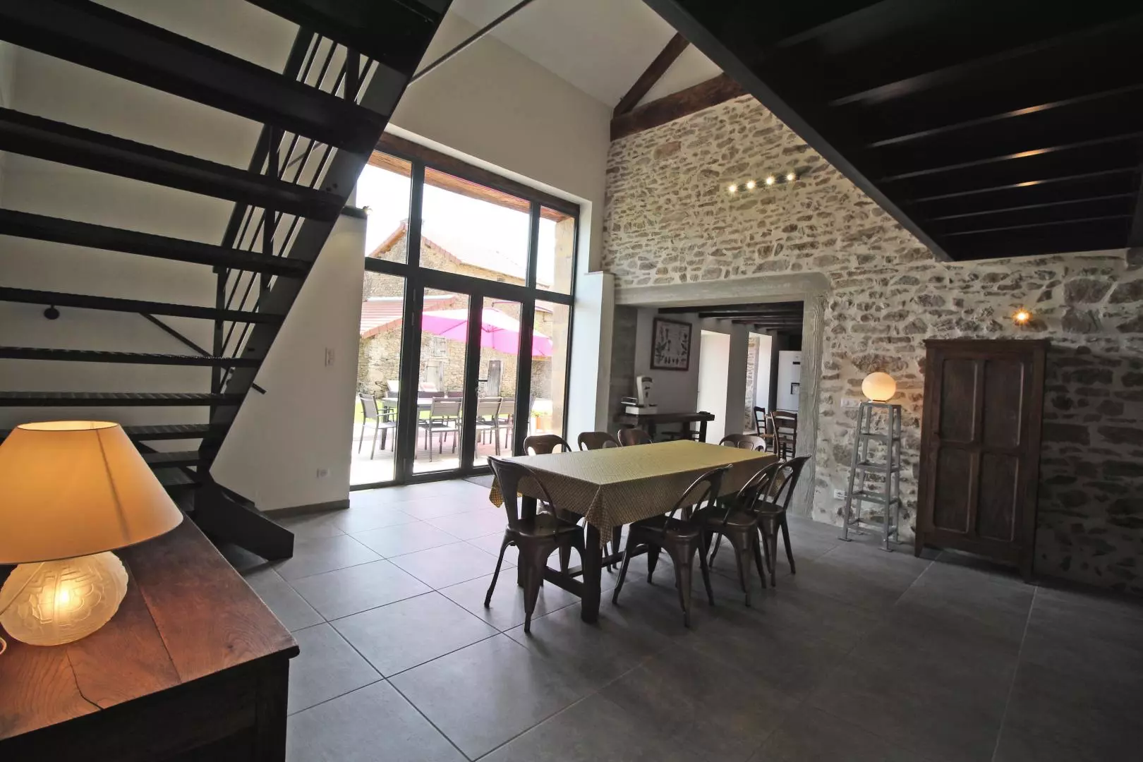 Surface 200 m². Rez-de-chaussée en plain-pied accessible aux personnes à mobilité réduite ; grande pièce principale composée d'une cuisine avec arrière cuisine et buanderie, séjour ouvert par une grande baie sur la terrasse en bois ombragée par un store roulant, et le vaste jardin clos qui entoure le gîte. 2 chambres (1 lit 160 cm, 1 lit 140 cm), salle de bains avec baignoire et douche, wc indépendant, vestiaire. 1er étage : coursive et mezzanine avec coin détente ou espace bureau desservent 2 chambres (1 lit 140 cm et 2 lits 90 cm) avec dressing, salle d'eau, wc indépendant, salle de cinéma équipée d'un vidéo projecteur et de fauteuils de cinéma, prolongée par un espace jeux : foot sur table, nombreux jeux de société et bibliothèque. Terrain de pétanque et parking. Prise pour recharge véhicule électrique (facturation selon conso). Décoration contemporaine, objets chinés, pierre, métal et bois s'harmonisent parfaitement. Le jardin soigné indépendant et sans vis à vis permet détente et repos au cœur du petit hameau. Situé à 30 mn de Limoges, 20 mn de Saint Leonard de Noblat, la belle médiévale, et dans une campagne verdoyante et boisée où chemins de randonnée et rivières invitent à la découverte d'une nature préservée. Pour les pêcheurs un local pêche est disponible le Taurion est à 200 m à l'issue d'une jolie promenade sur un chemin forestier.