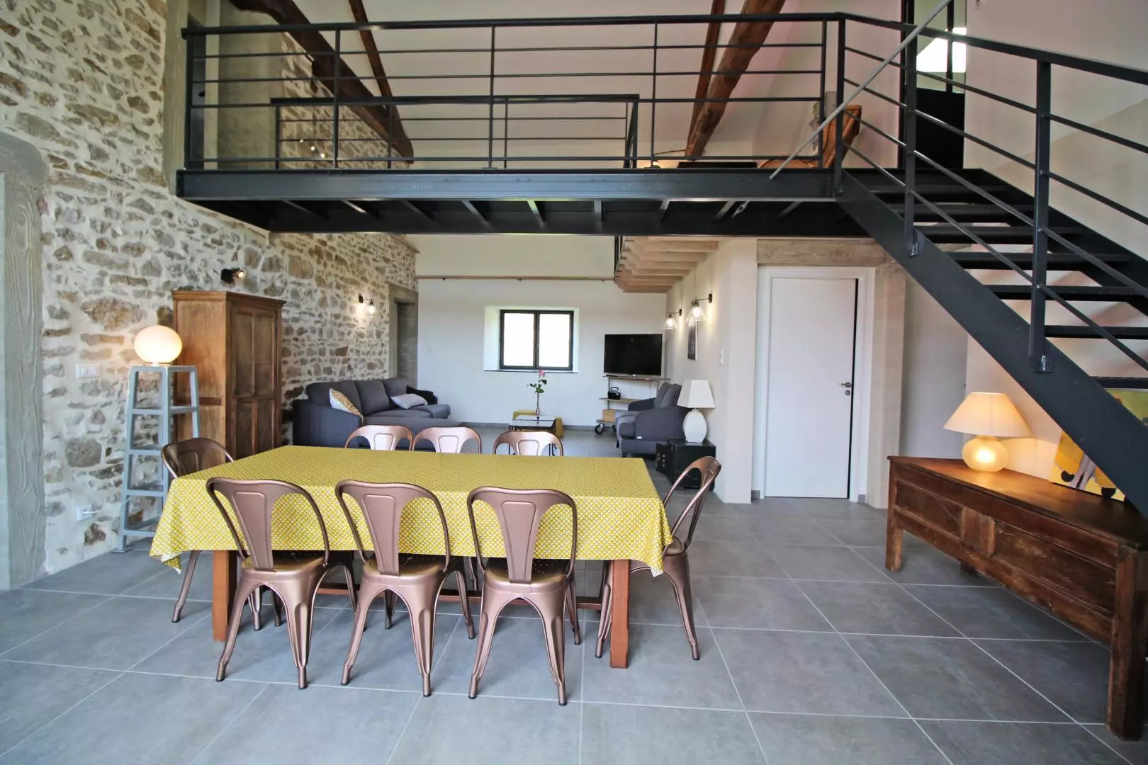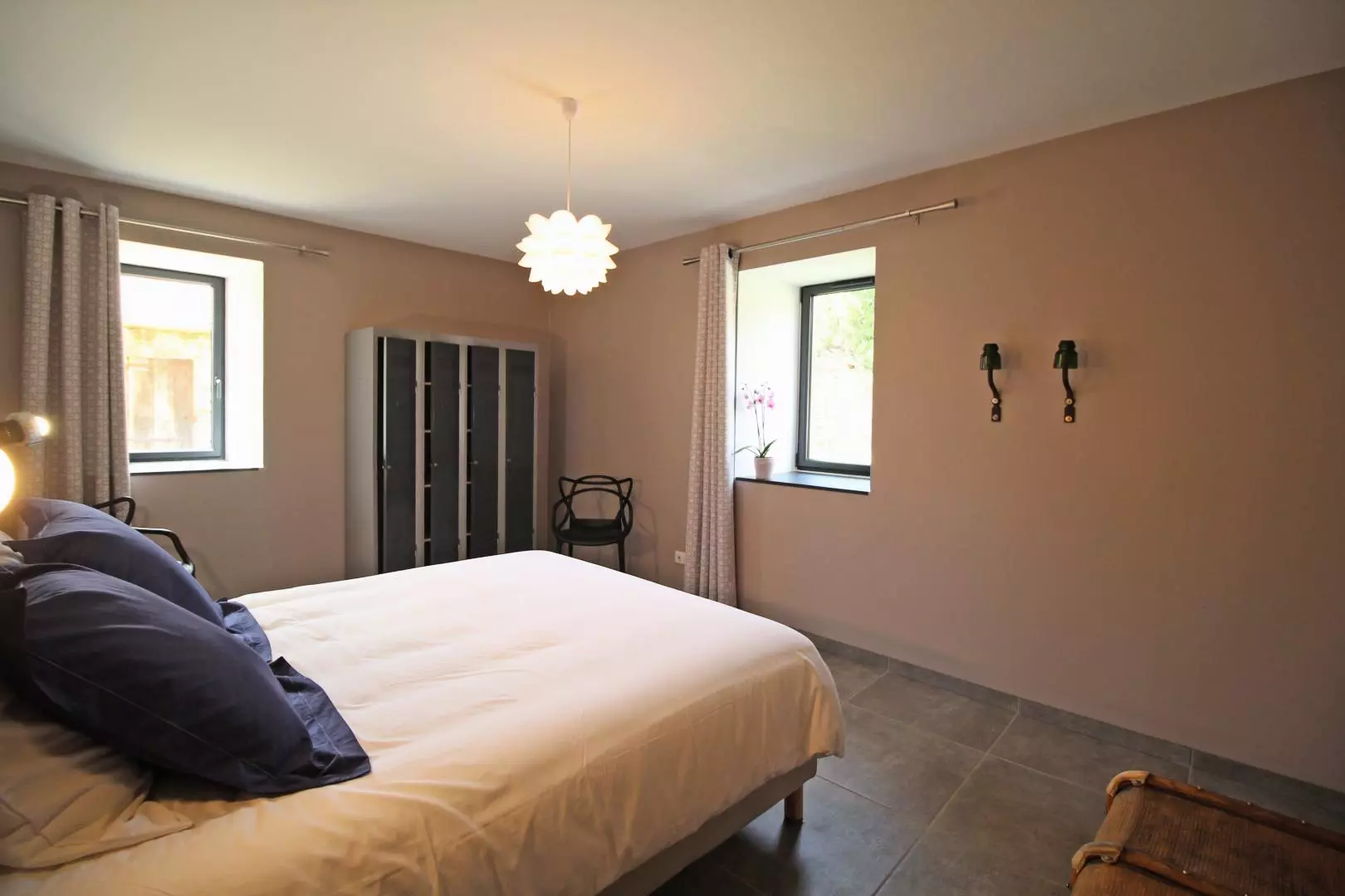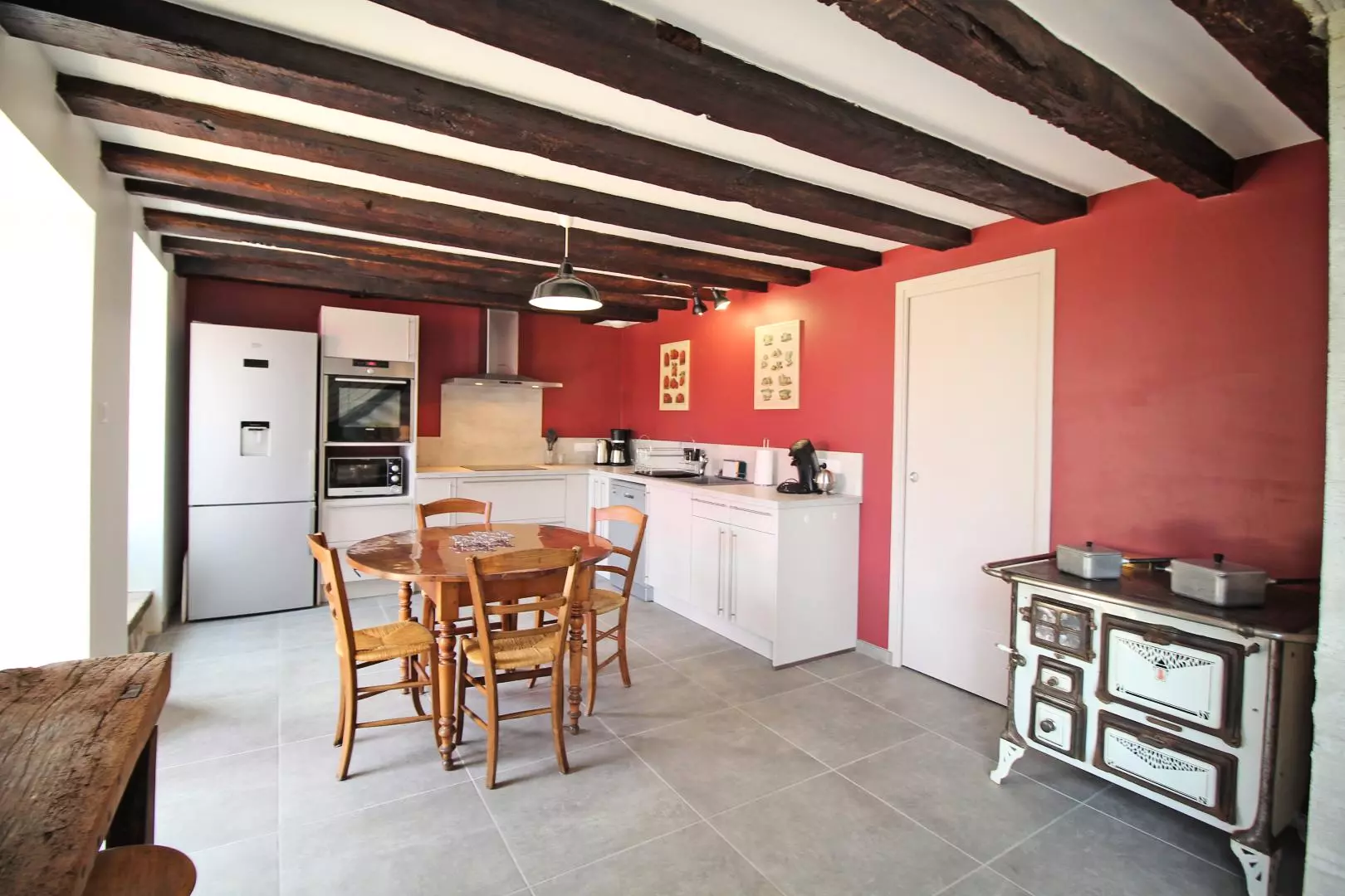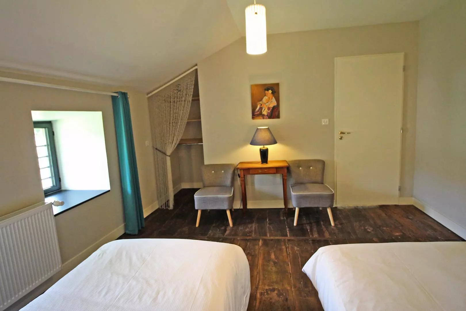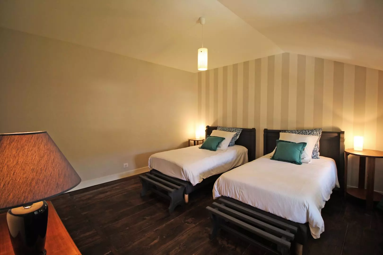 Surface 200 m². Rez-de-chaussée en plain-pied accessible aux personnes à mobilité réduite ; grande pièce principale composée d'une cuisine avec arrière cuisine et buanderie, séjour ouvert par une grande baie sur la terrasse en bois ombragée par un store roulant, et le vaste jardin clos qui entoure le gîte. 2 chambres (1 lit 160 cm, 1 lit 140 cm), salle de bains avec baignoire et douche, wc indépendant, vestiaire. 1er étage : coursive et mezzanine avec coin détente ou espace bureau desservent 2 chambres (1 lit 140 cm et 2 lits 90 cm) avec dressing, salle d'eau, wc indépendant, salle de cinéma équipée d'un vidéo projecteur et de fauteuils de cinéma, prolongée par un espace jeux : foot sur table, nombreux jeux de société et bibliothèque. Terrain de pétanque et parking. Prise pour recharge véhicule électrique (facturation selon conso). Décoration contemporaine, objets chinés, pierre, métal et bois s'harmonisent parfaitement. Le jardin soigné indépendant et sans vis à vis permet détente et repos au cœur du petit hameau. Situé à 30 mn de Limoges, 20 mn de Saint Leonard de Noblat, la belle médiévale, et dans une campagne verdoyante et boisée où chemins de randonnée et rivières invitent à la découverte d'une nature préservée. Pour les pêcheurs un local pêche est disponible le Taurion est à 200 m à l'issue d'une jolie promenade sur un chemin forestier.
