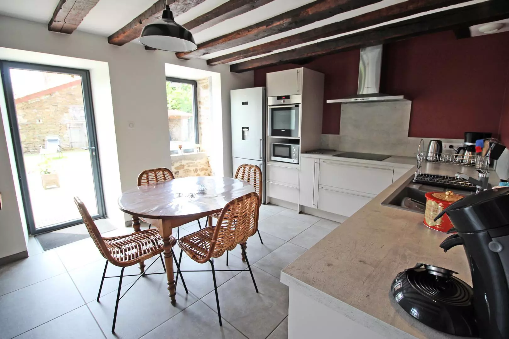 Décoration contemporaine, objets chinés, pierre, métal et bois s'harmonisent parfaitement. Le jardin soigné indépendant et sans vis à vis permet détente et repos au cœur du petit hameau. Situé à 30 mn de Limoges, 20 mn de Saint Leonard de Noblat, la belle médiévale, et dans une campagne verdoyante et boisée où chemins de randonnée et rivières invitent à la découverte d'une nature préservée. Pour les pêcheurs un local pêche est disponible le Taurion est à 200 m à l'issue d'une jolie promenade sur un chemin forestier.