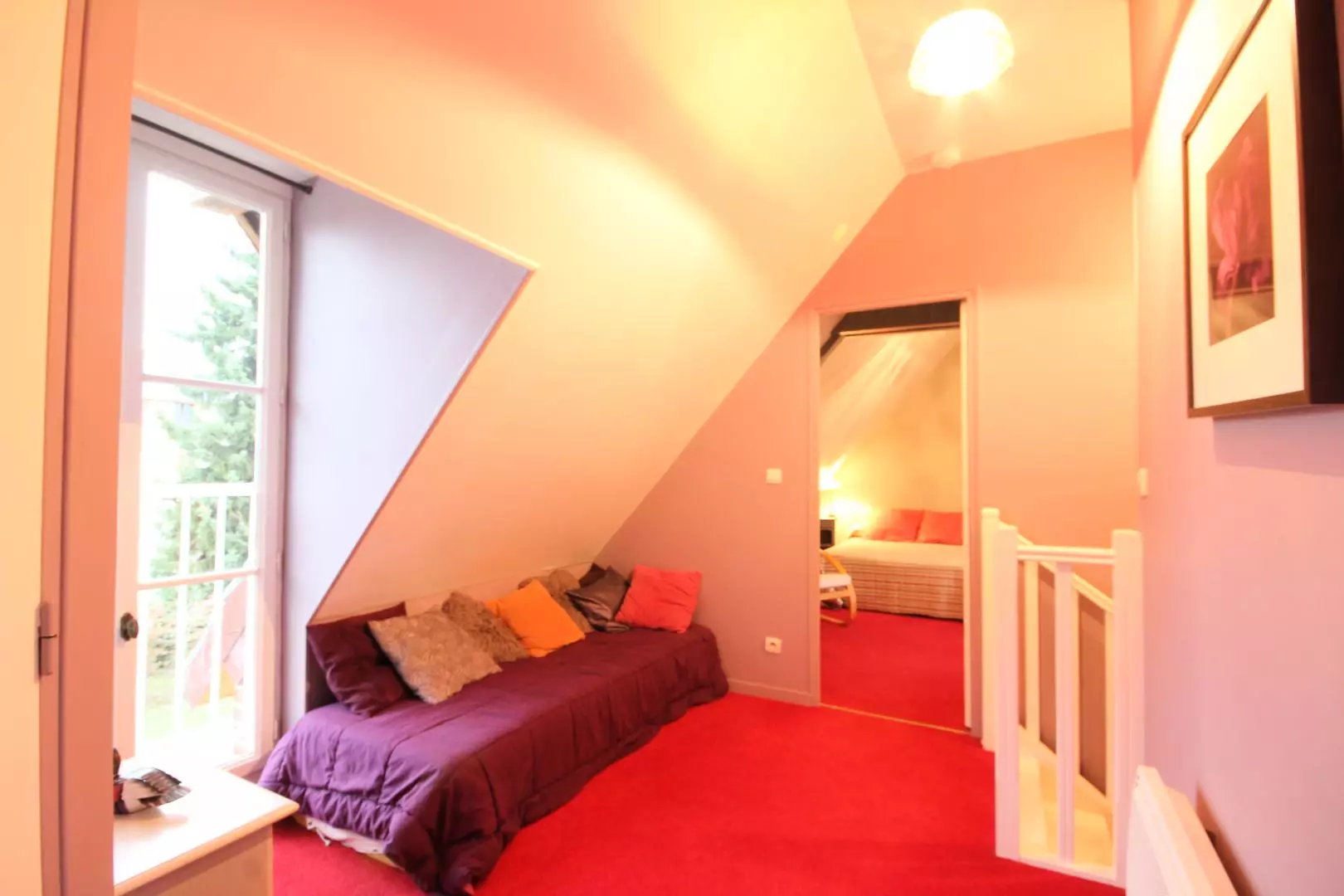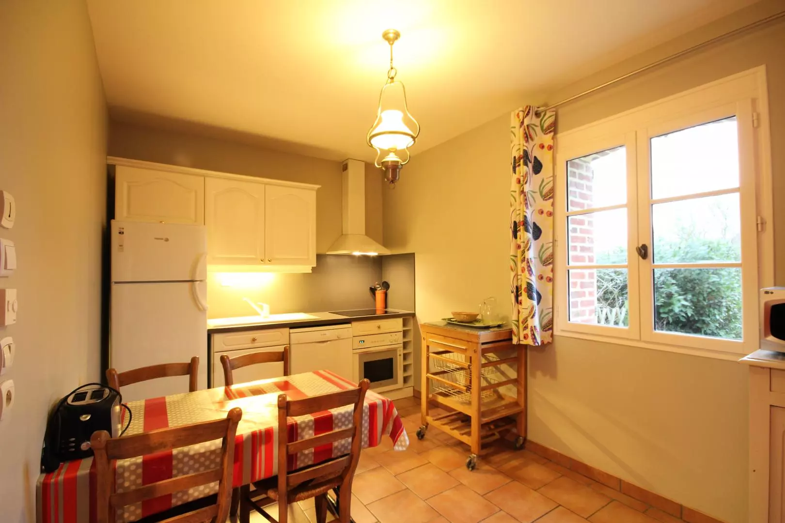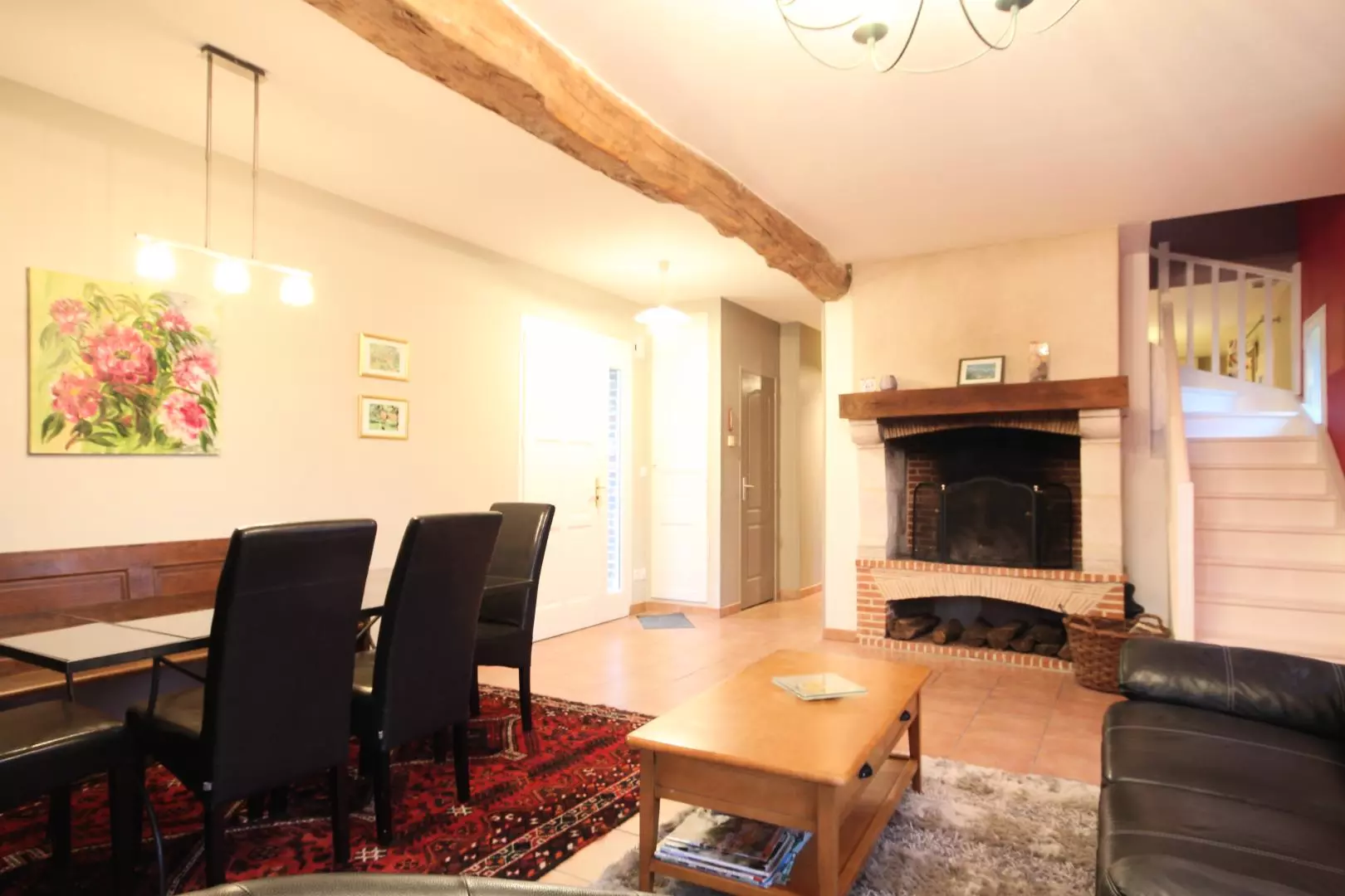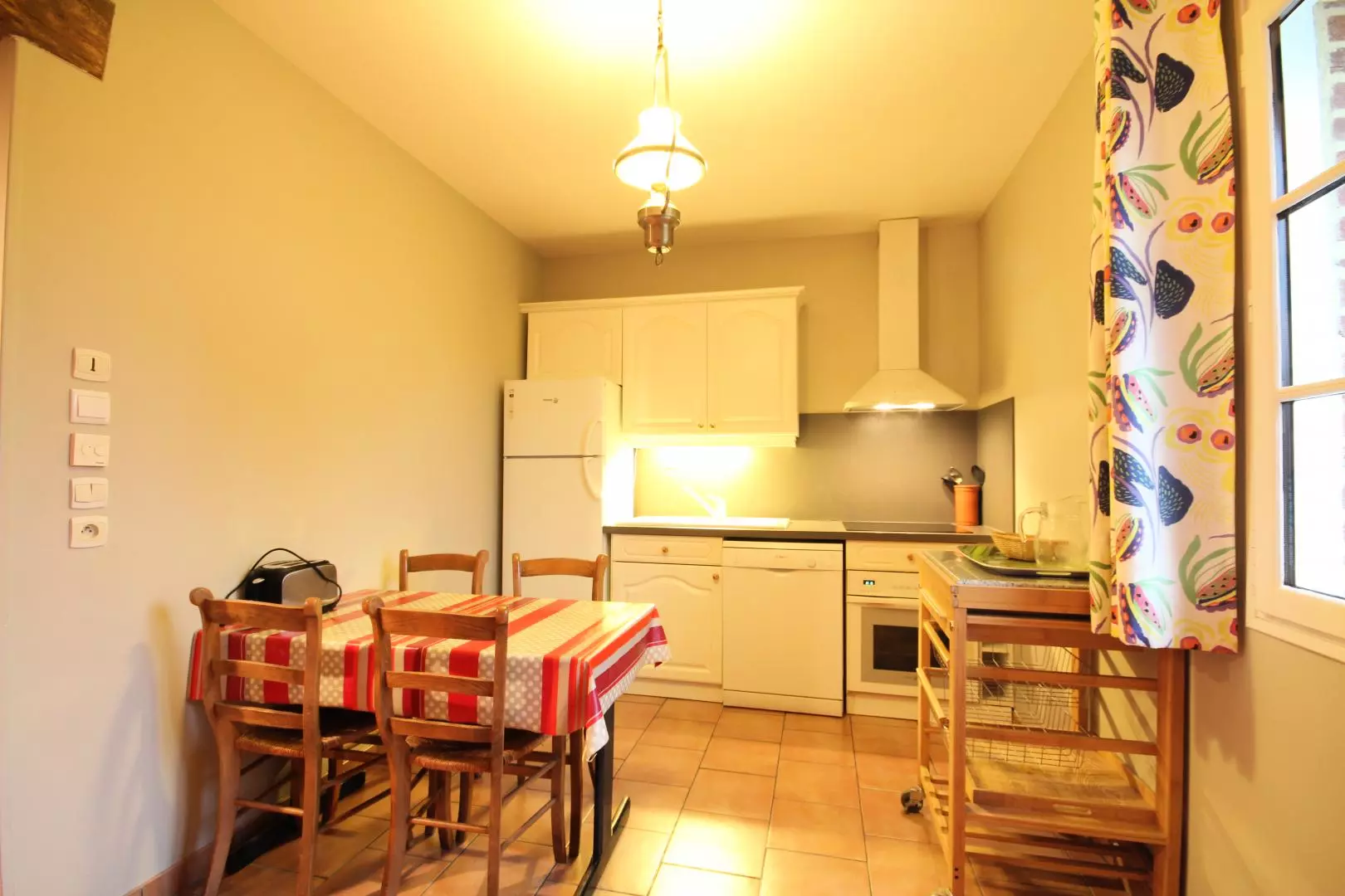 Rez-de-chaussée : - cuisine aménagée (lave-vaisselle + lave-linge séchant) donnant sur - grand séjour avec cheminée, TV, lecteur DVD, - salle d'eau avec douche à l'italienne, - wc séparé. Etage : - 1 chambre (1 lit 2 personnes), - 1 chambre (2 lits 2 personnes),