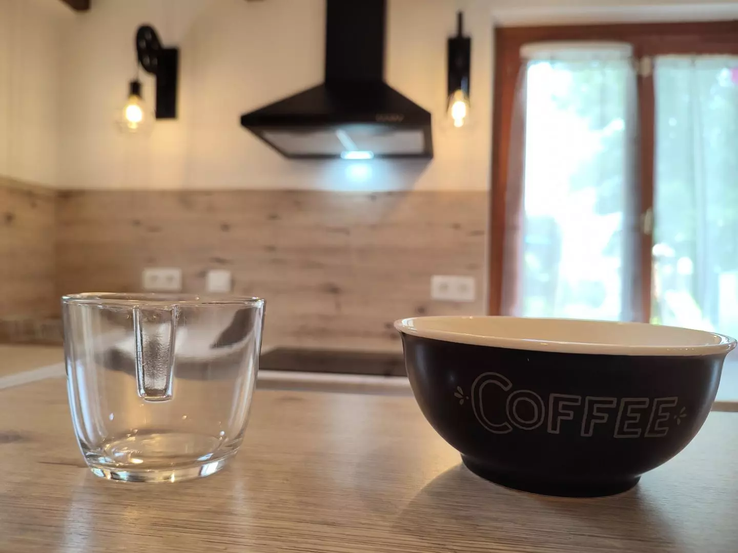 -Cuisine ( four, micro-onde, bouilloire, cafetière, grille-pain) ouverte sur séjour/salon,