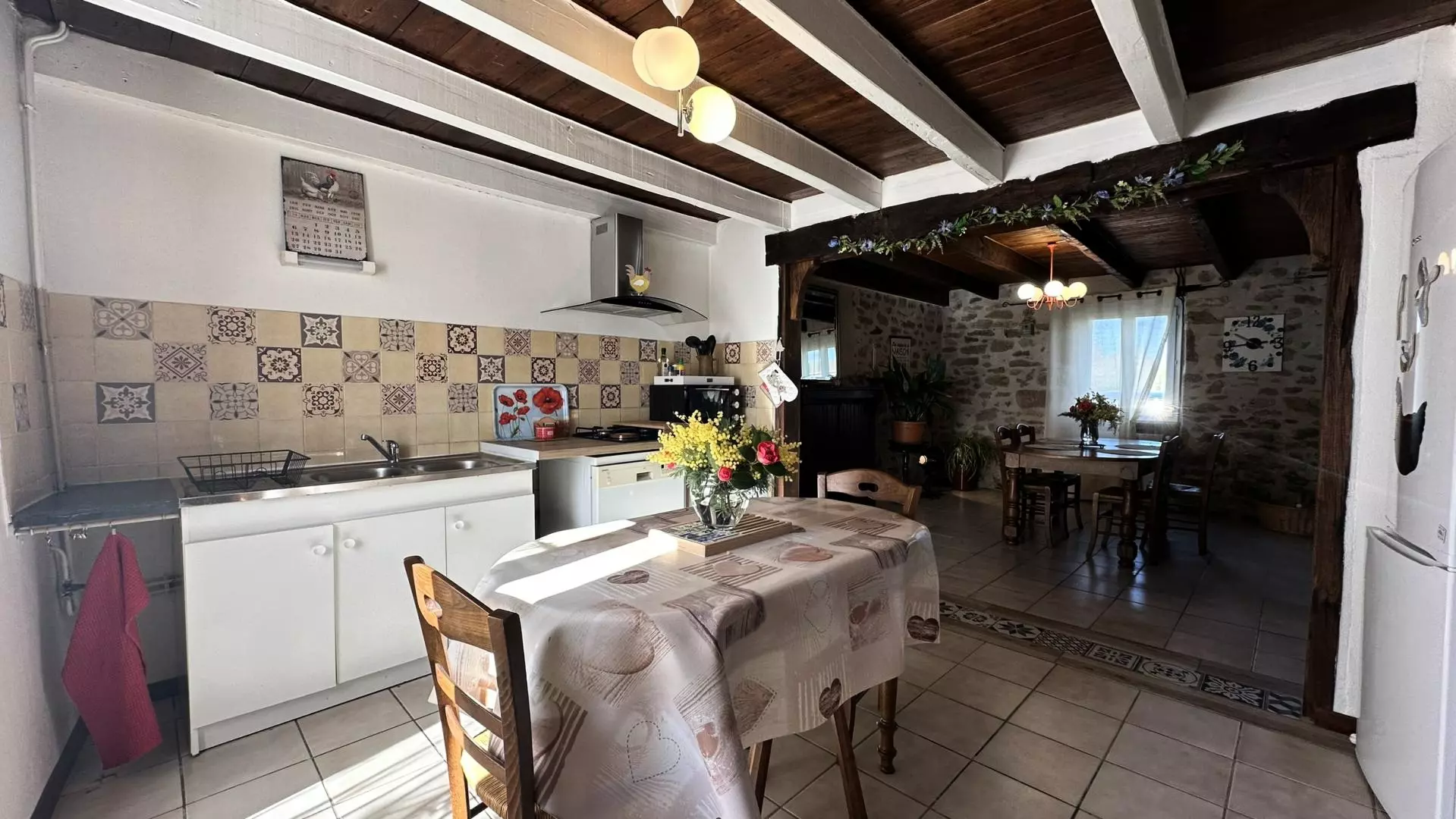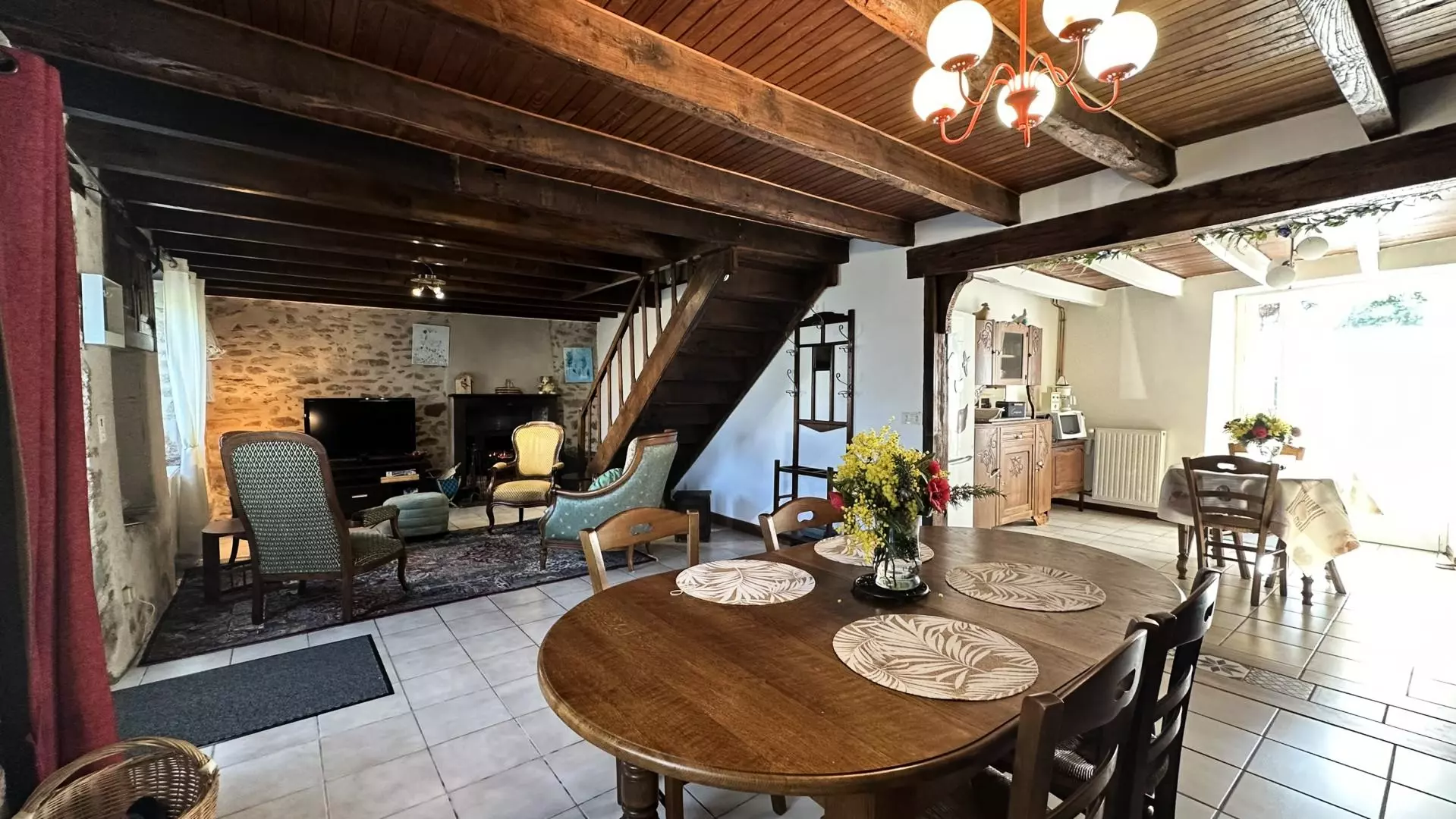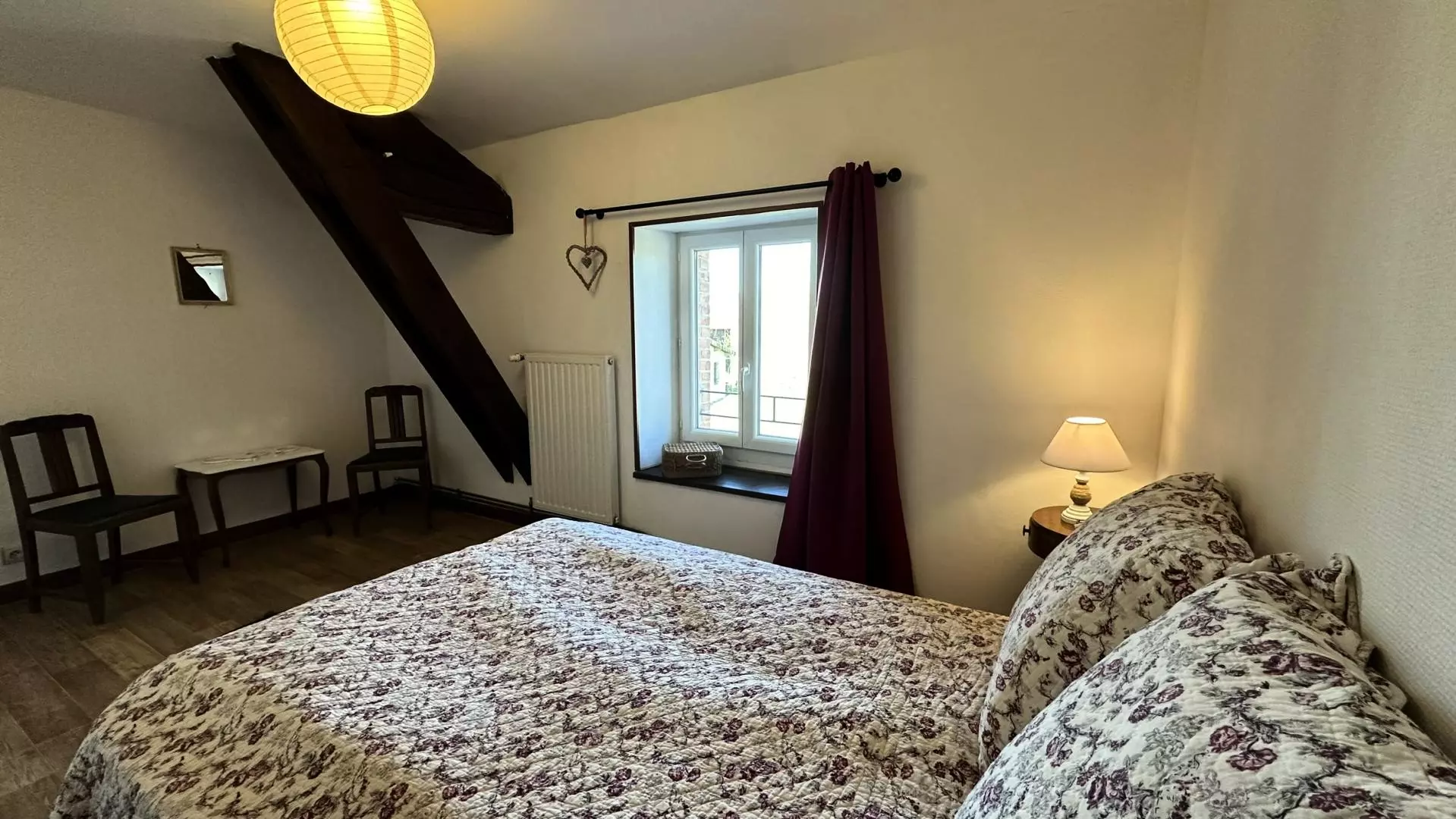 Surface 88 m². rez-de-chaussée : séjour avec coin salon (cheminée-insert) et cuisine qui ouvre sur la terrasse et le jardin. Étage : 2 chambres (1 lit 2 places, 2 lits 1 place), salle d'eau, wc. Chauffage central. Balançoire. Nathalie et Thierry sont natifs de ce petit hameau aux portes de Saint-Junien. Très attachés à ce lieu, ils accueillent avec beaucoup de gentillesse. Le gîte, mitoyen, est l'ancienne maison du grand-père de Nathalie. A l'arrière il possède un joli jardin où il est bien agréable de se reposer à l'ombre du grand pin. Si vous avez l'œil, vous aurez certainement la chance d'apercevoir la tortue Caroline qui réside dans le jardin voisin. N'hésitez pas à lui préparer un morceau de salade, c'est son mets favori !