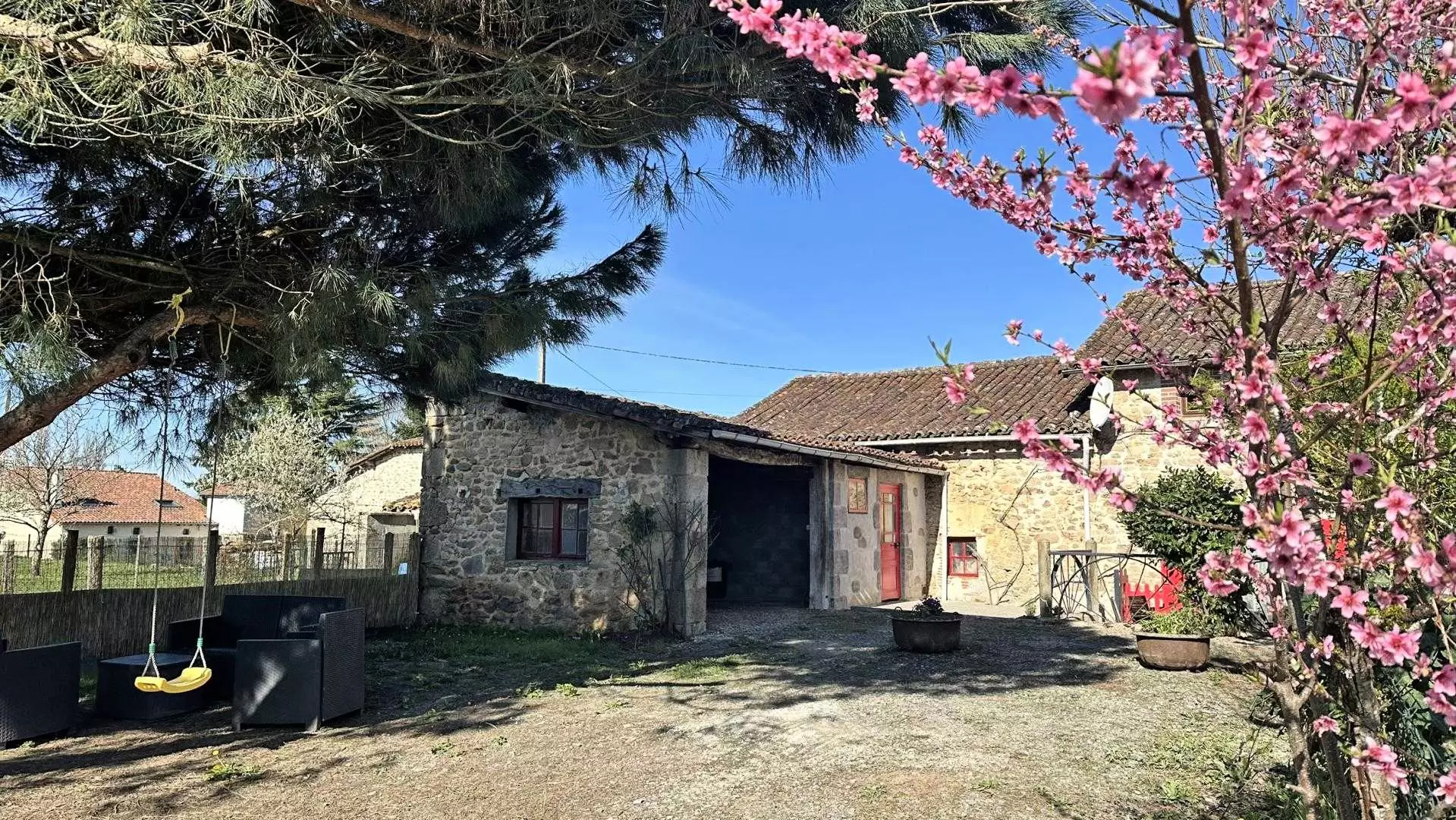 Nathalie et Thierry sont natifs de ce petit hameau aux portes de Saint-Junien. Très attachés à ce lieu, ils accueillent avec beaucoup de gentillesse. Le gîte, mitoyen, est l'ancienne maison du grand-père de Nathalie. A l'arrière il possède un joli jardin où il est bien agréable de se reposer à l'ombre du grand pin. Si vous avez l'œil, vous aurez certainement la chance d'apercevoir la tortue Caroline qui réside dans le jardin voisin. N'hésitez pas à lui préparer un morceau de salade, c'est son mets favori !