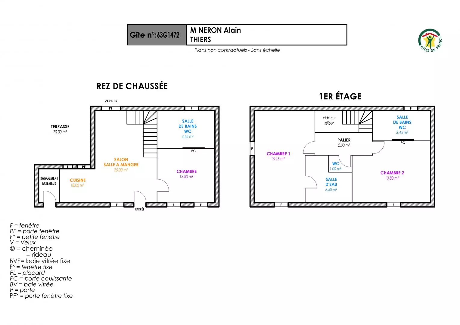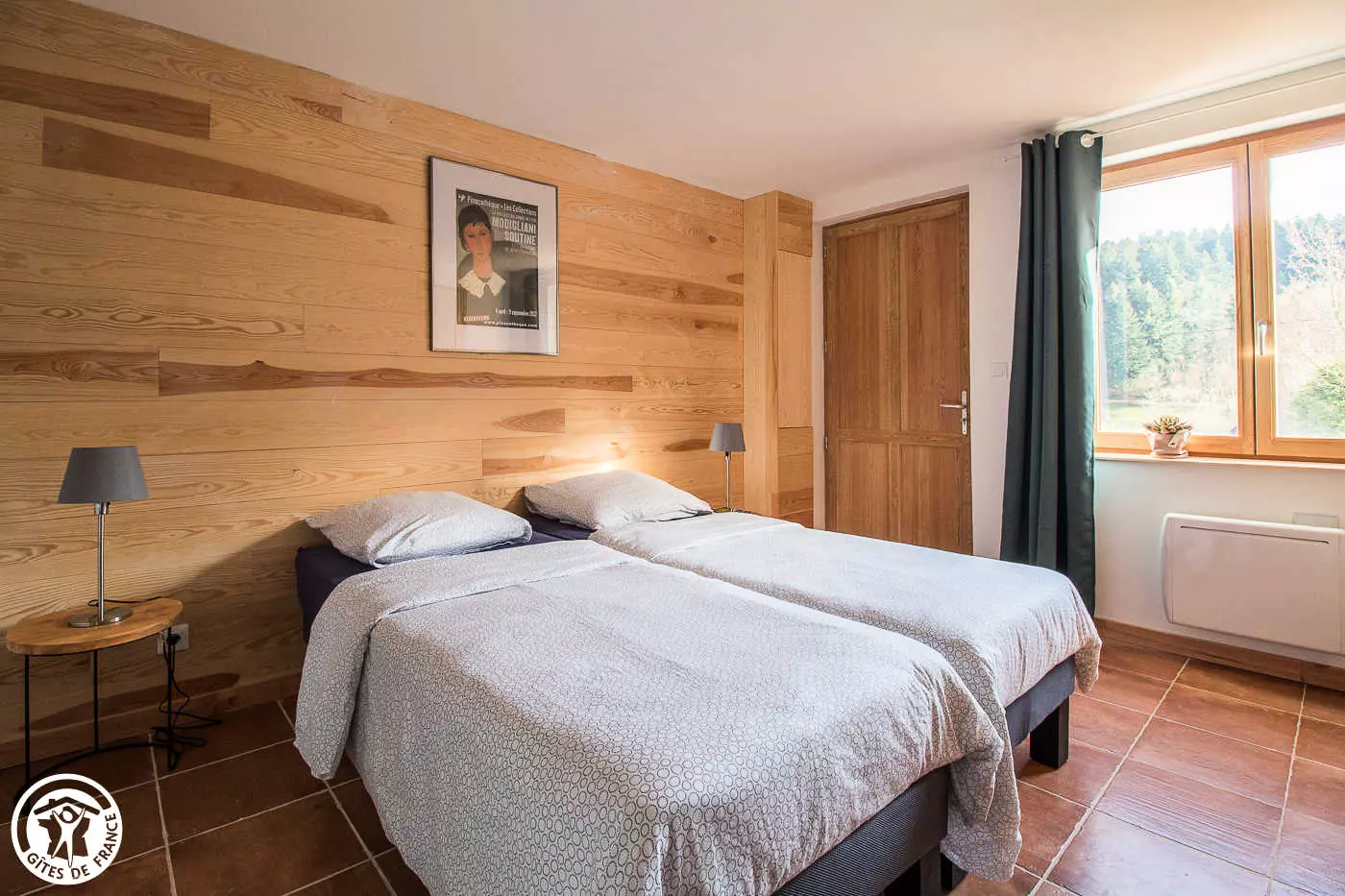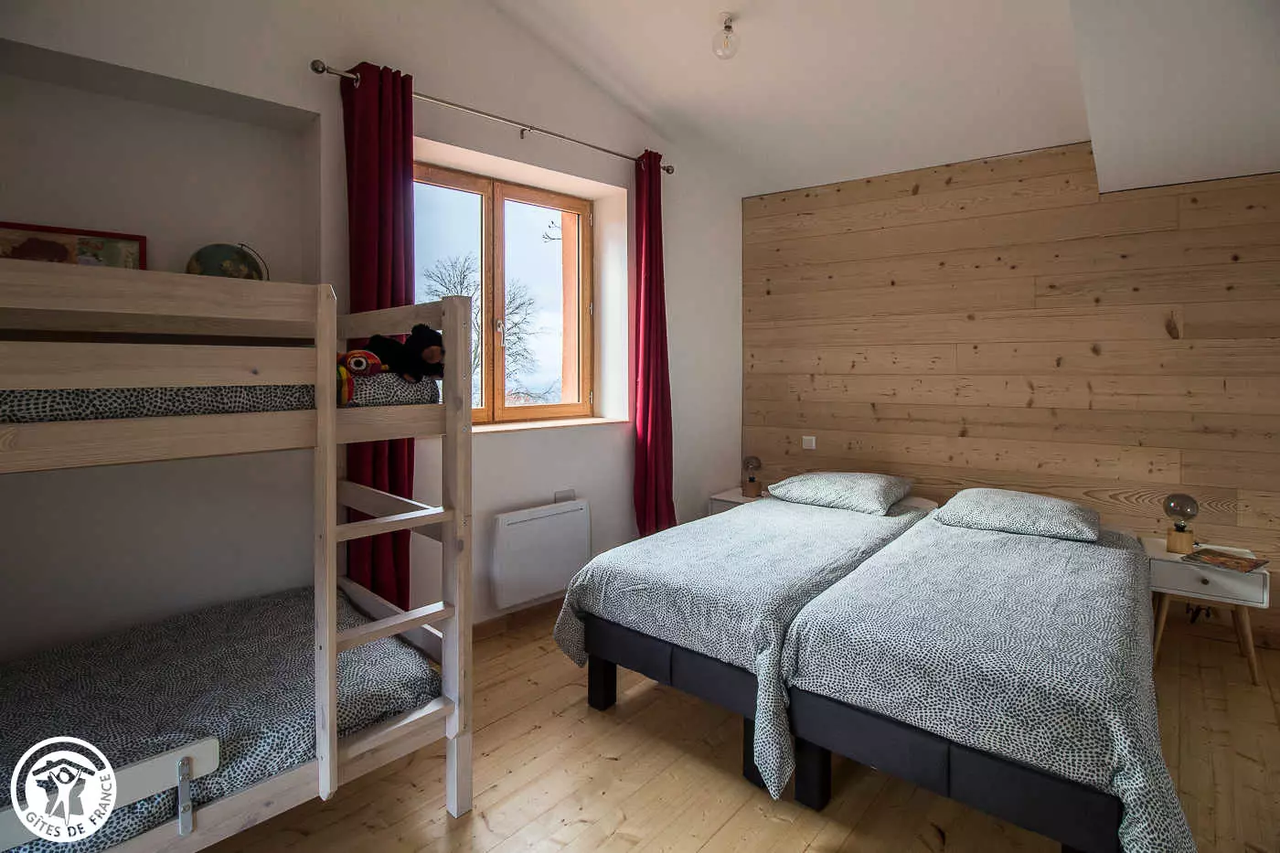 80 (pouvant être accolés) et salle d'eau/wc privative, une chambre avec deux lits 80 (pouvant être accolés), deux lits 90 superposés (le lit du haut est interdit aux enfants de moins de 6 ans) et une salle d'eau privative, un wc indépendant. Chauffage électrique selon consommation. A l'extérieur, vous profiterez d'un véritable havre de paix d'environ 2000m² à la vue sublime (est notamment refuge LPO), du superbe verger ainsi que d'une terrasse avec salon de jardin et barbecue. Le gîte se situe à proximité du gîte 63G1199 pour 5 pers. et du gîte 63G1254 pour 4 pers. De nombreuses activités à proximité : baignade et bases de loisirs, musées, châteaux … Randonnées pédestres et VTT au départ du gite. A 5 km, tous commerces et animations à Thiers (Festival du couteau d'art Coutelia, festival Pamparina, visite de la cité médiévale, de la vallée des usines et du musée de la coutellerie. Accès facile par l' A89. Vichy et Clermont-Ferrand , Vulcania et le Puy de dôme sont à moins d'une heure.