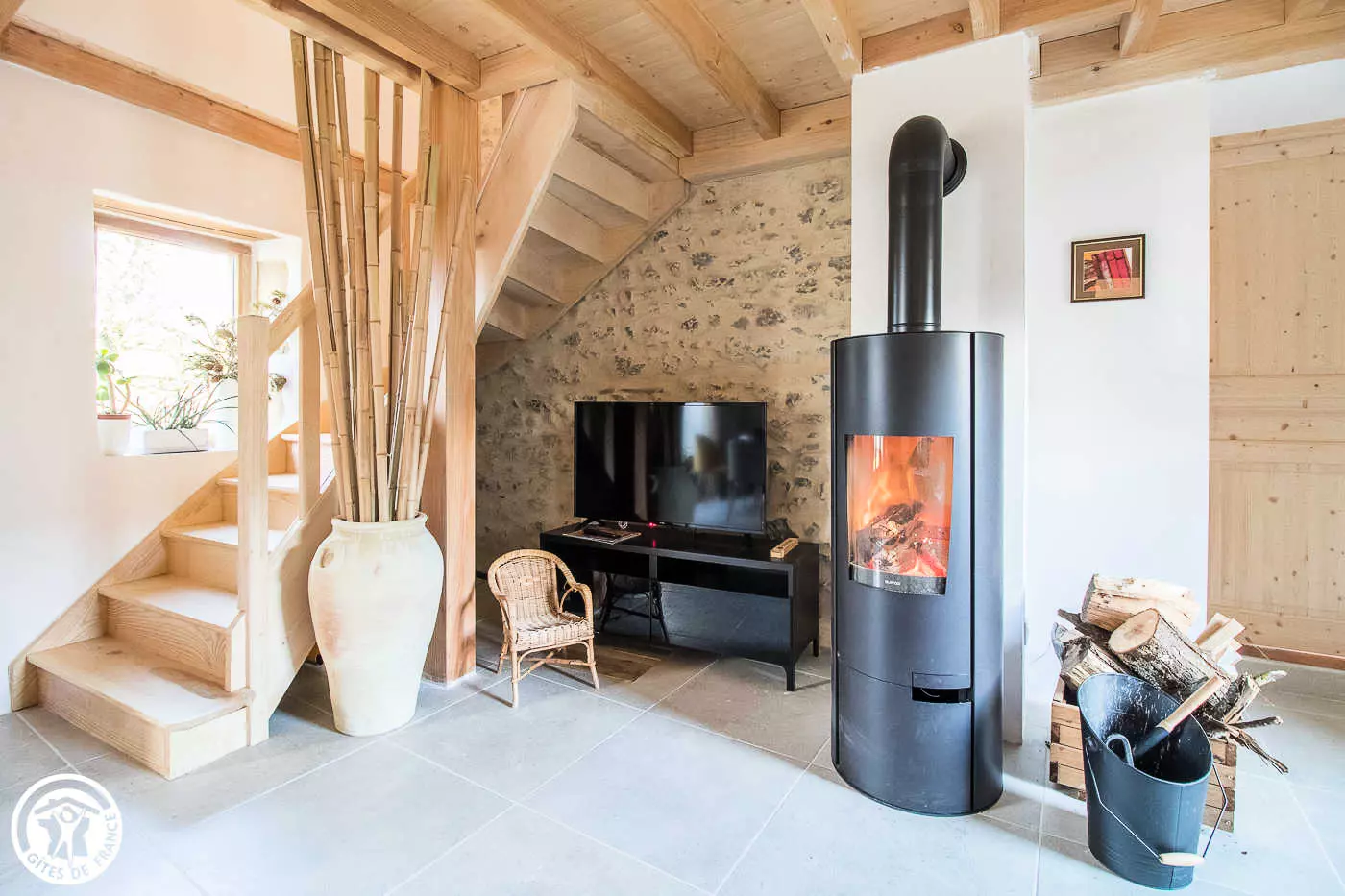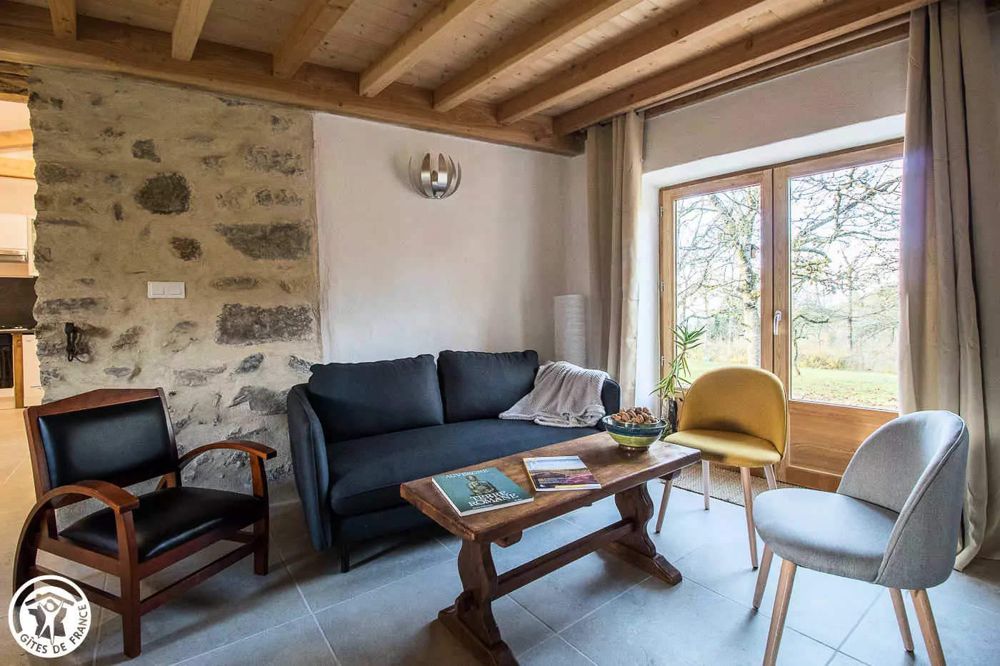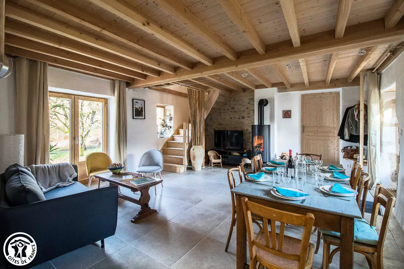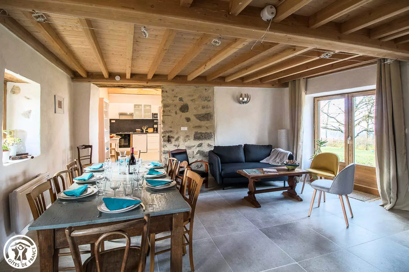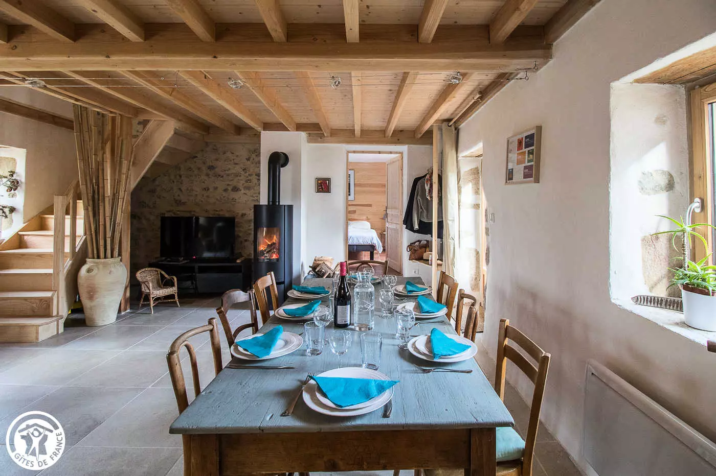 Séjournez au gîte des Trois Cousins en tribu pour un séjour grand confort au cœur du Parc Naturel du Livradois Forez ! Le gîte a été totalement réaménagé en 2020 par des artisans locaux en utilisant des matériaux naturels (enduits chaux/chanvre…) et d'origine régionale ! Le résultat : un hébergement d'exception où il fait bon vivre, bénéficiant d'un cadre naturel exceptionnel et d'une vue sur la chaine des Puys et la faille de Limagne à couper le souffle ! Le gîte se situe au Faux Martel, hameau perché au-dessus de la fascinante ville de Thiers, au cœur d'une nature totalement préservée ! Il se compose au rez-de-chaussée d'un chaleureux et lumineux séjour-cuisine ouverte avec un poêle à bois (une caisse de bois offerte), pièce de vie idéale pour de beaux moments de partage ! Une chambre avec deux lits 80 (pouvant être accolés) et salle d'eau/wc privative (accessible aux personnes à mobilité réduite) se trouve également au rez-de-chaussée. A l'étage, une spacieuse chambre avec deux lits 80 (pouvant être accolés) et salle d'eau/wc privative, une chambre avec deux lits 80 (pouvant être accolés), deux lits 90 superposés (le lit du haut est interdit aux enfants de moins de 6 ans) et une salle d'eau privative, un wc indépendant. Chauffage électrique selon consommation. A l'extérieur, vous profiterez d'un véritable havre de paix d'environ 2000m² à la vue sublime (est notamment refuge LPO), du superbe verger ainsi que d'une terrasse avec salon de jardin et barbecue. Le gîte se situe à proximité du gîte 63G1199 pour 5 pers. et du gîte 63G1254 pour 4 pers. De nombreuses activités à proximité : baignade et bases de loisirs, musées, châteaux … Randonnées pédestres et VTT au départ du gite. A 5 km, tous commerces et animations à Thiers (Festival du couteau d'art Coutelia, festival Pamparina, visite de la cité médiévale, de la vallée des usines et du musée de la coutellerie. Accès facile par l' A89. Vichy et Clermont-Ferrand , Vulcania et le Puy de dôme sont à moins d'une heure.