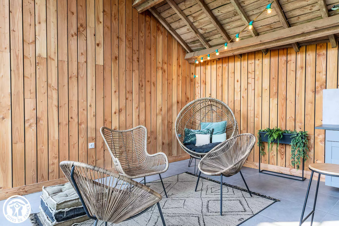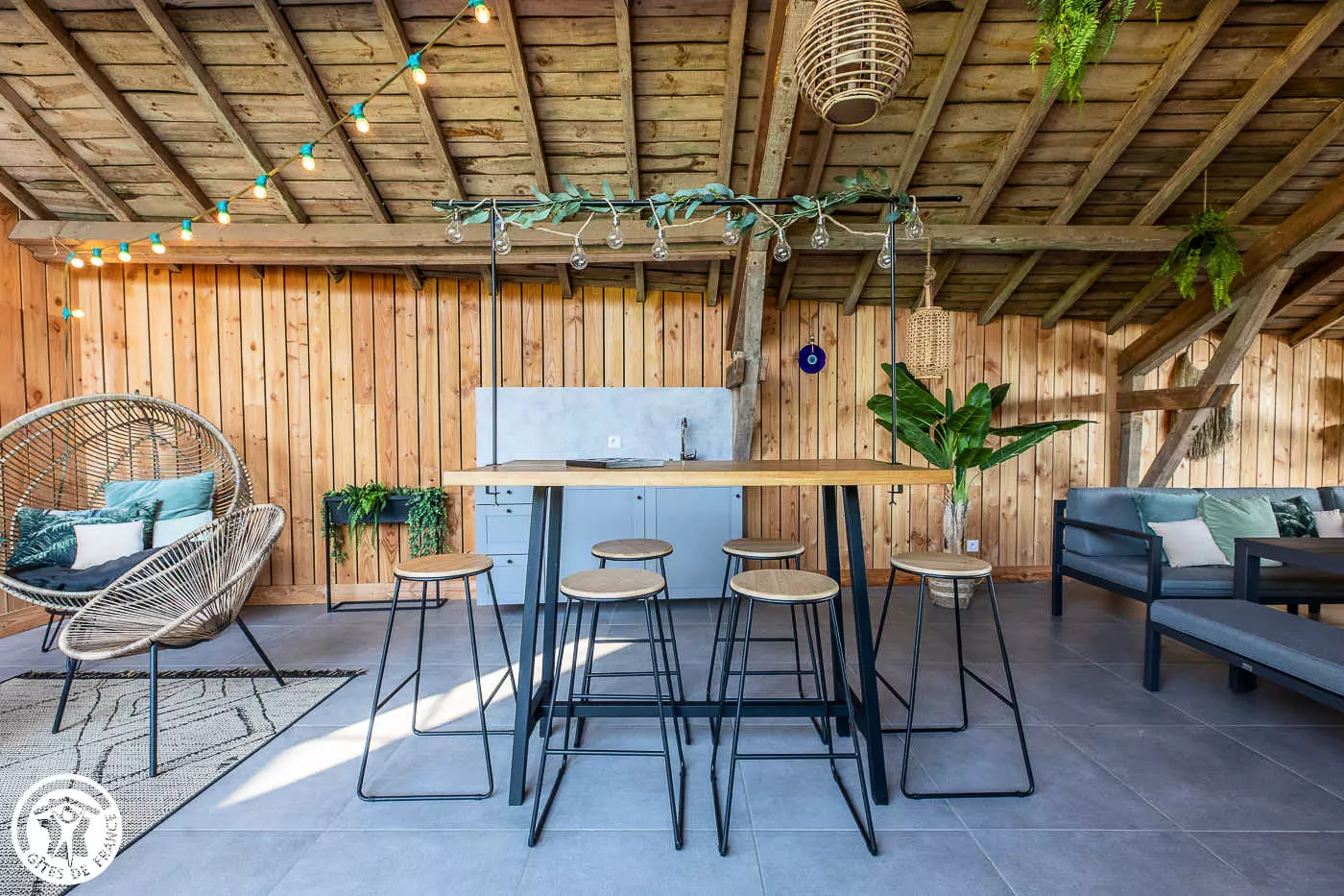 TOUT INCLUS !! En rénovant cette maison indépendante, les propriétaires ont pensé au bien-être et au confort de leurs clients. Dès votre arrivée vous serez totalement sous le charme de ce gîte avec ses prestations de très grande qualité, bienvenue « chez vous » pour des vacances inoubliables. Situé dans un lieu-dit calme, vous pourrez également profiter de l'espace extérieur et surtout de la très grande terrasse couverte « type lounge » avec ses différents espaces détente, spa, bar et borne arcade. La vue sur la Chaîne des Puys finira de vous convaincre. Pour votre confort, tout est inclus : les lits seront faits à votre arrivée, le linge de toilette est fourni, le chauffage et le ménage sont inclus. Les petits et grands seront ravis de s'adonner au tennis de table avec la table de tennis de table indoor et le jeux de fléchettes.